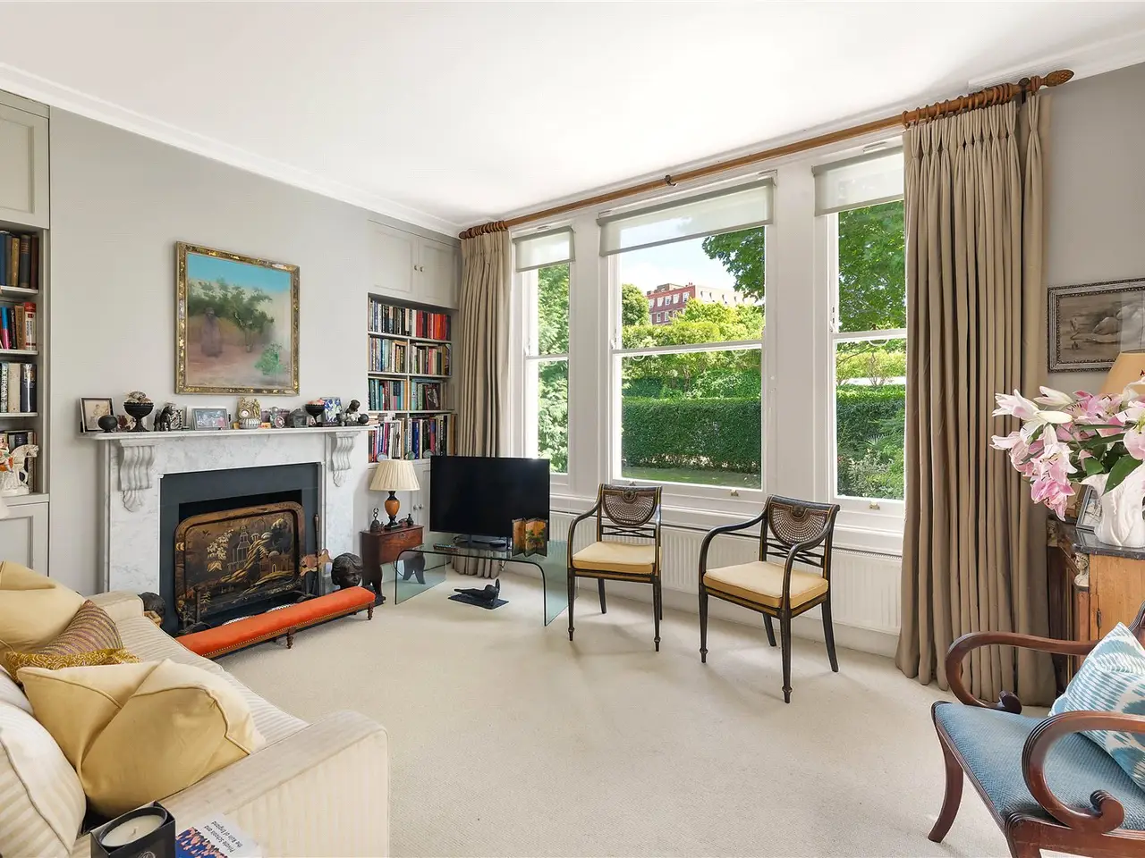 A charming two bedroom, two bathroom maisonnette situated on the raised ground and first floors of this handsome stucco fronted period building. It has the feeling and privacy of a small house with its own private entrance. It further benefits from beautiful views over the mature communal garden to the rear.