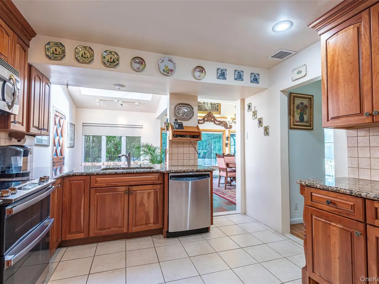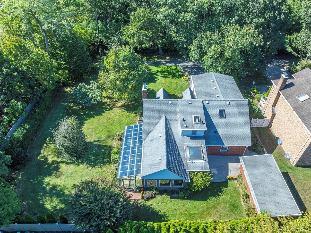 Welcome to this exceptional and spacious single-family home located in the heart of Douglaston, Queens, offering rare country-style living on a quiet, tree-lined private road. Beautifully maintained and set on an large 126 x 95 landscaped lot with a serene waterfall, this unique corner property overlooks the protected Alley Pond, ensuring permanent privacy and unobstructed views. Fence all around. The open-concept first floor features a generous living room with a fireplace, a large kitchen with granite countertop and stainless steel appliances. Kitchen has a skylight and breakfast area, a formal dining room ideal for entertaining, a family room with cathedral ceilings, a full bathroom, and a bedroom, along with a legal sun-filled four-season Florida room. Upstairs boasts an oversized primary bedroom, two additional bedrooms, walk-in closet and a full bathroom. The full basement includes a laundry room, boiler room, storage, and a partially finished area. An additional legal brick outbuilding offers versatile use as a shed, workshop, summer kitchen, or BBQ area. It has two car garage with a garage opening and additional 5 cars parking. Conveniently located near public transportation including local and express buses and the LIRR (just 20 minutes to Manhattan). You are also just minutes from major highways (LIE and Cross Island Pkway) and it's making this location ideal for those on the go. It is close to schools, parks, shopping, and houses of worship—this rare gem truly must be seen to be appreciated.