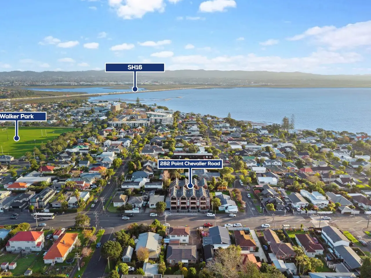 Titles have been issued, and this premium home is ready for immediate possession. Welcome to Pt Chev On Point—an exclusive gated enclave in one of Point Chevalier’s most sought-after positions, north of Meola Road and just minutes from the city. Residence 8/282 Point Chevalier Road is brand new, architecturally designed, and one of only eight. Spanning three levels and over 220m², it offers generous, high-stud living enhanced by sea views through full-height double-glazed windows. Here are just some of the features • Stamford Ten-Year Build Warranty • Prime location north of Meola Road • Expansive 220m²+ high-stud layout • North/West corner for sun-filled living • Elite kitchen with Bosch Black appliances + scullery • Double garage with internal access • Smart home technology throughout • Freehold Title (no BC fees) • Ducted air conditioning, gas cooking & water heating • Secure gated community The ground floor features a sun-soaked lawn, a guest suite or rumpus, a bathroom, and an internal access garage. The mid-level showcases open-plan living with a sleek kitchen, stone benches, and balcony entertaining. Upstairs, three double bedrooms include a master with an ensuite, walk-in robe, private balcony, and cathedral-ceiling bathroom. Finished to an exceptional standard with timber flooring, Feltex carpet, tiled underfloor-heated bathrooms, and integrated smart tech, this is a home that truly delivers. Zoned for top schools and within walking distance to Pt Chev Beach, cafés, and parks—this is prime lifestyle living.