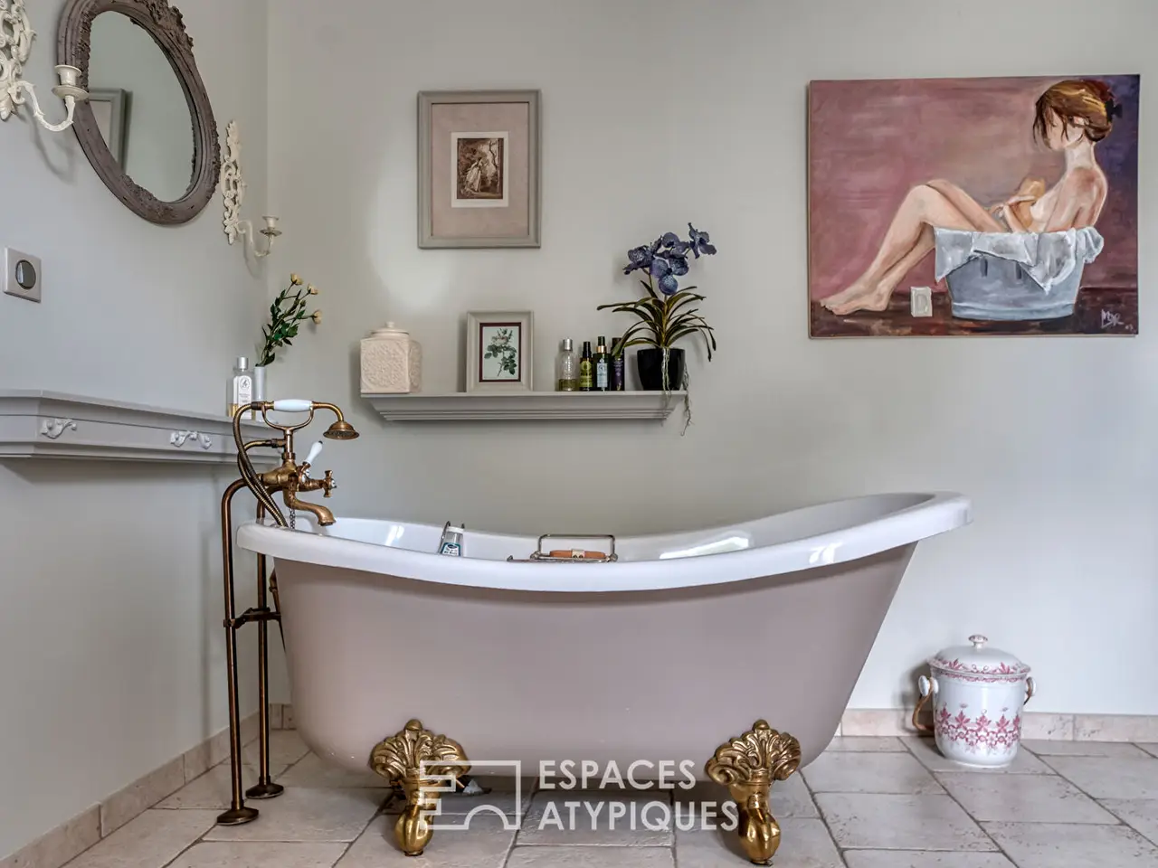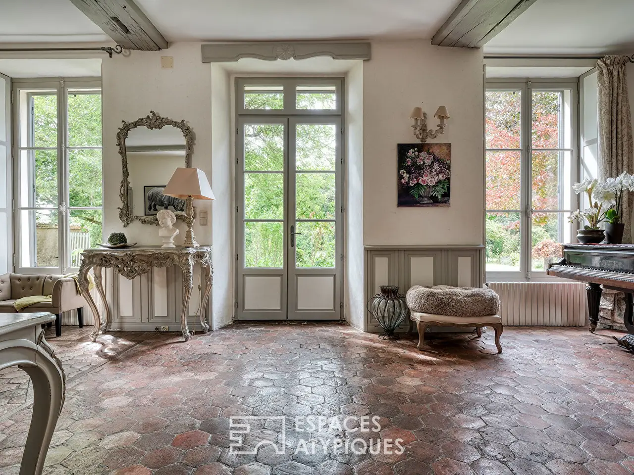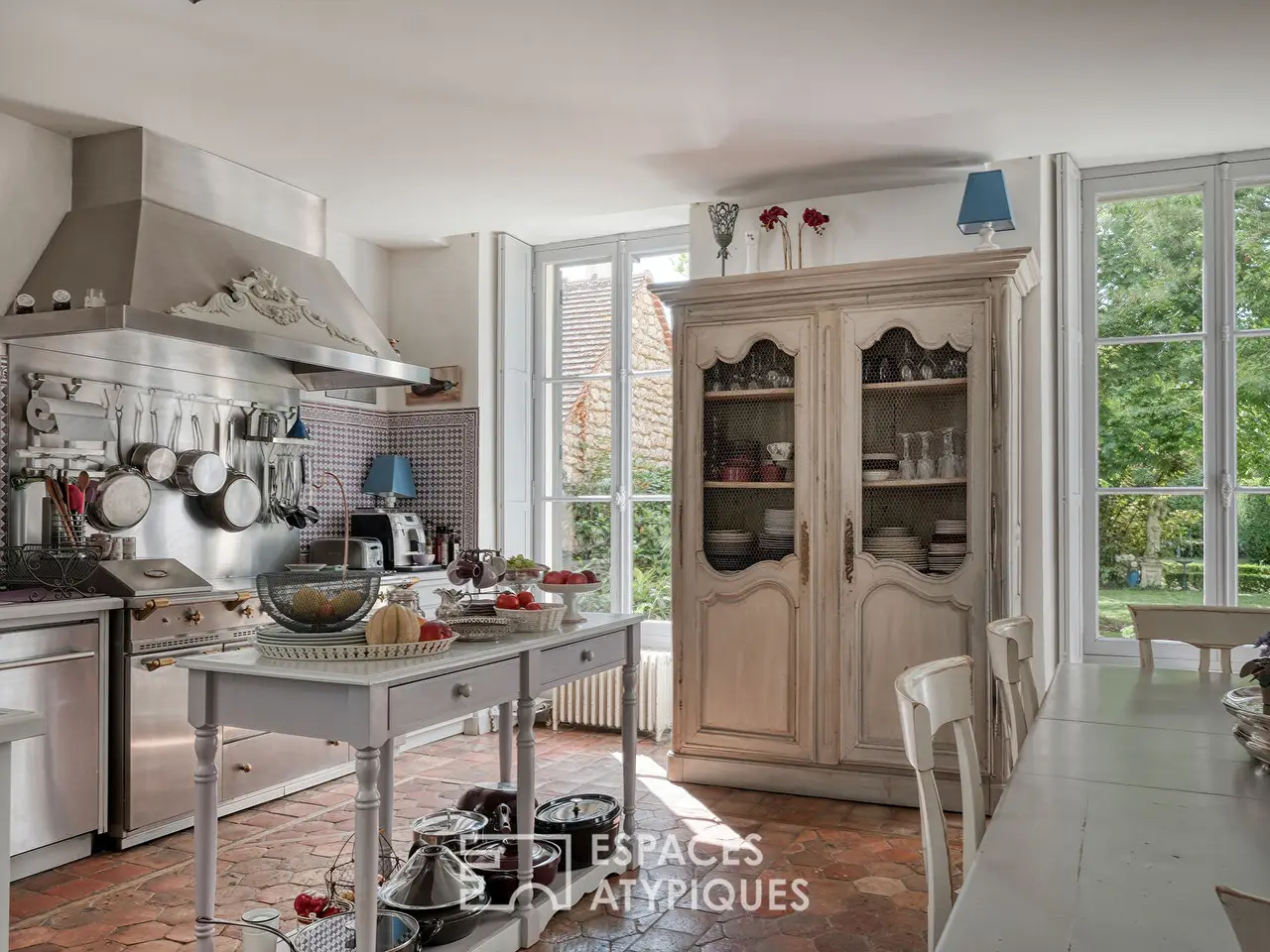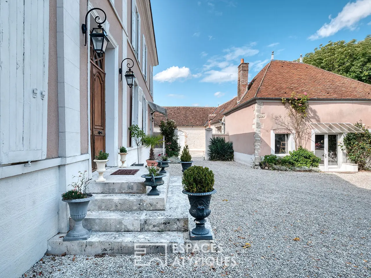 Only 100km from Paris, on the border of the Seine et Marne, in a small village in the Loiret, in the heart of a park of more than 3 hectares, this Directoire castle develops 465sqm of living space (520sqm on the ground), supplemented by a caretaker's house with 70sqm of living space (80sqm on the ground). Take a long avenue of lime trees, discover the front of the park and begin to see this historic facade, adorned with a Louis XIII gate. The main courtyard allows you to discover the different buildings that will make up this property. The visitor's eye is already sparkling and is impatient to climb the steps to push open the majestic double main door. The cabochon paving of the entrance will then give way to the terracotta tiles, the true common thread of this building. A breathtaking living space is then revealed. The living room seems to be one with the English-style garden which gives this reception space an incomparable elegance. The remarkable stone fireplace and bases add to the warm atmosphere. The adjoining dining room, sharing the same codes, perfectly completes the reception on this level. The kitchen, the real bustling heart of the house, is spacious, bright and equipped with high-end appliances. Thus, the emblematic piano of the Lacanche house will delight the taste buds of gourmets. A scullery with laundry room follows. An office, a small boudoir-style relaxation room and a service entrance complete this level. The two upper levels are dedicated to the sleeping area. On the first floor, elegance is also present in every room. The master bedroom, with generous volumes, is decorated with a custom dressing room, a gym and a double modular bathroom, with a resolutely chic spirit where everyone will find their own space. There proudly sits a rooster's claw bathtub. Three other spacious bedrooms, with their own style as well as an additional bathroom make up this level. The second and top floor comfortably accommodates guests. A first large bedroom under exposed framework has a private open bathroom. A bathroom, three other bedrooms with a water point for some as well as an attic complete this floor. Because this residence is exceptional, it had to have an equally exceptional cellar. Vaulted, made of stone and brick, it is worthy of hosting the greatest wines. A second cellar, more technical but large, partly houses the boiler room. The exteriors are truly an ode to relaxation, an invitation to slow down and enjoy. Enjoy around the swimming pool and its pool house, in the shade of the olive trees. Enjoy under the covered terrace with summer kitchen. Enjoy strolling through the different gardens, with different inspirations. The outbuildings are as large as the castle. First, a Louis XIII pavilion of 80sqm includes a first room on the ground floor and a second room upstairs. Today he has an office and an artistic workshop there, but the range of possibilities is vast. Then, the caretaker's house is today a habitat in its own right. It can accommodate family, friends or a live-in caretaker with living room, kitchen, laundry room and upstairs two bedrooms and bathroom. Finally, to complete the discovery of this property, several garages, shelter, old stables, old greenhouses and like a cherry on the cake a barn of more than 300sqm on two levels. This historic property combines authenticity, elegance and old-world charm while having benefited from a high-quality restoration, without austerity or ostentation and enhanced by an artistic touch. Paris via A6 Quick access to the A19 to join either the A10 or the A77 Train stations (Nemours, Montargis, Souppes) less than 30 minutes Amenities in neighboring towns a few minutes by car ENERGY CLASS: E CLIMATE CLASS: E Estimated average amount of annual energy expenditure for standard use, established from average energy prices indexed to the years 2021, 2022, 2023: between EUR11,690 and EUR15,870.