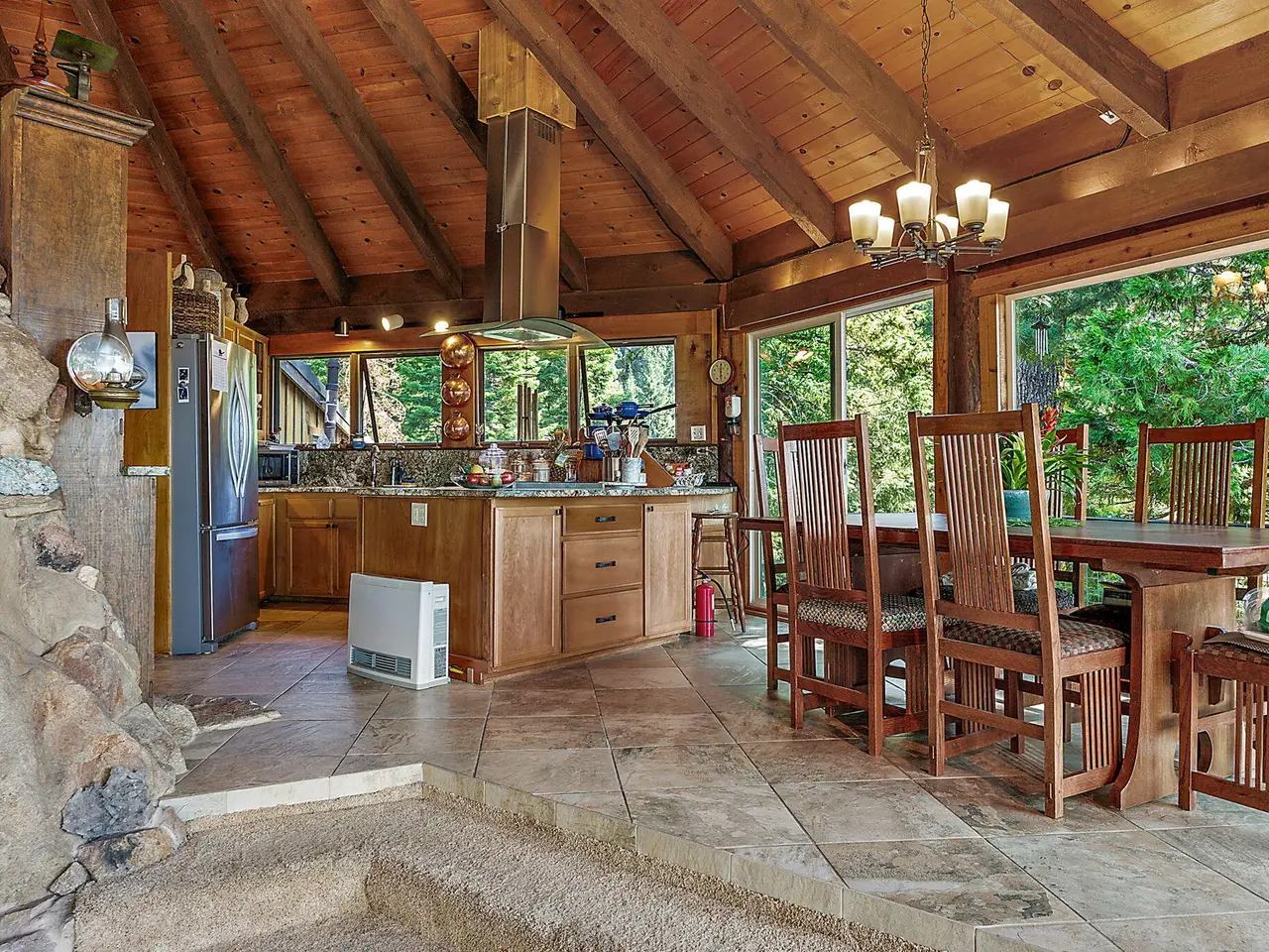 Tranquil & pristine Mountain oasis on over 121 acres with a campground, marketable timber, green house, stream w/waterfall, springs and amazing scenic views of Mt Shasta & Pilot Rock. Amazing main home w/tile entry & stained-glass w/3 bedrooms, 2.5 baths, 2145 SQ FT with open beam vaulted ceilings in the great rm w/ huge stone staircase. Kitchen w/granite counters, tile floors opens to dining & great rm loft area. 2 primary suites overlooking the deck & creek. The other primary suite has a door to lg covered deck. Detached 2 car garage. Off grid secluded unpermitted cabin by waterfall and campground. Woodshed w/Japanese architectural elements, on-site fire suppression. Next to Forest Lands w/private hiking trails; Pacific Trail, wildlife, berries and mushroom hunting. Enjoy unobstructed star gazing, snow shoeing, sledding and more just 20 minutes from downtown Ashland. Owner will carry with 25% Down, 5% interest for 5 years w/Sellers approval of Buyer. Last house before the Lodge.