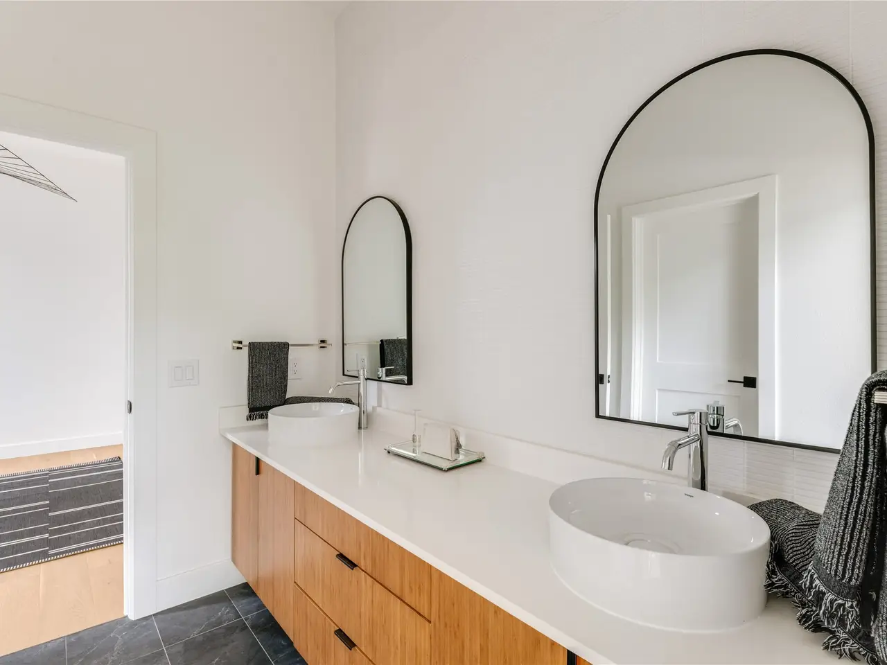 Spa-like bath with dual vanities