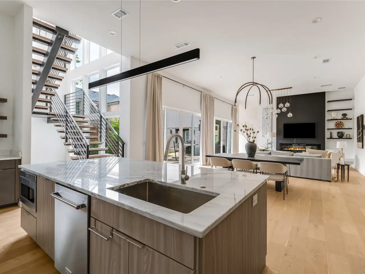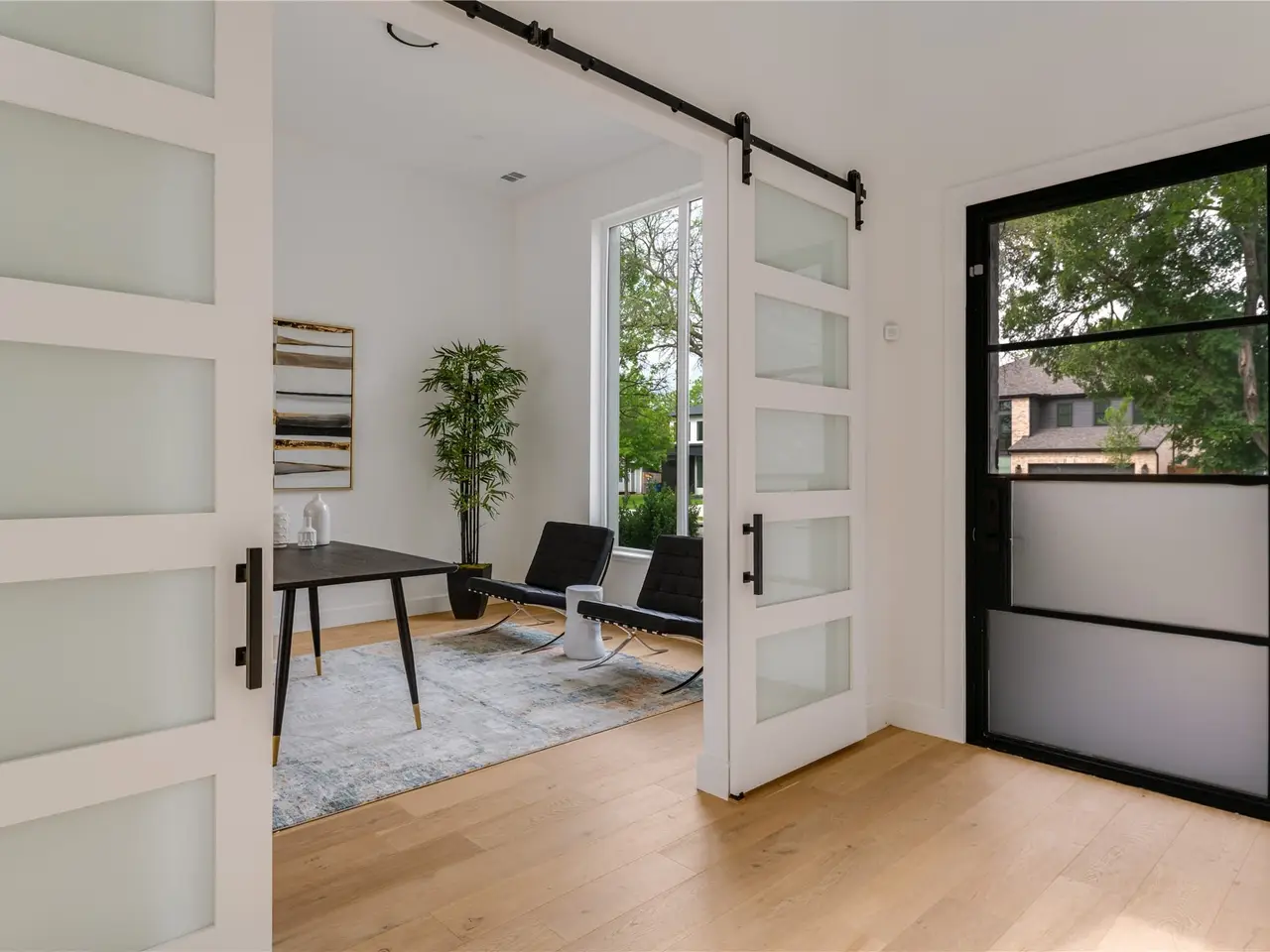 Contemporary Elegance in Glenridge Estates. Welcome to this light-filled, west-facing custom-built 2022 home in the sought-after Glenridge Estates neighborhood of Midway Hollowmove-in ready and designed for modern living, with three bedroom suites and a downstairs office. The open-concept main floor features 12' ceilings throughout, a seamless flow between the living, dining, and kitchen areas, highlighted by expansive sliding doors that open to a private patio and lush green yardperfect for entertaining or quiet relaxation. A striking stone wall anchors the living room, showcasing a sleek gas fireplace and built-in TV niche. The designer kitchen is both beautiful and functional, boasting beautiful cabinetry, stunning Brazilian marble countertops, built-in refrigerator, double ovens, and a clean, minimalist aesthetic. The kitchen also features a large pantry plus walk in butler's pantry with ice maker, microwave, extra storage and catering space. A private study at the front of the home offers the ideal space for a home office, along with a stylish powder room, mud room, and additional storage or exercise. Upstairs, you'll find three spacious bedroom suites. The primary suite is a serene retreat, complete with a vaulted ceiling, sitting area, spa-like bath with dual vanities, separate soaking tub and shower, and an oversized walk-in closet that conveniently connects to the laundry room. The two guest suites each feature private baths and generous closet space. A vaulted game room completes the upper levelideal as a media lounge, playroom, or flexible living area. Situated on a quiet loop created by Lively Lane and Beechwood Lane, this home offers a rare sense of tranquility and privacy with no cut-through trafficyour peaceful haven in the heart of the city.