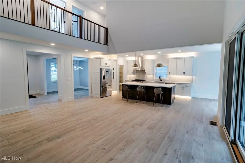 Built by EFG Custom Homes - This grand colonial modern farmhouse-style home in Westlake has something for everyone. The open concept floor plan has a spectacular vaulted Great Room, the perfect venue for entertaining and large family gatherings. This 5,380 square foot home including the finished basement with wet bar, comes with 4/5 bedrooms, 3.5 baths, and also features a formal dining space, a gourmet kitchen, stone counter tops, covered terrace for additional outdoor living space, and a three-car garage. The first floor owners suite is highlighted by a gorgeous en-suite and enormous walk-in closet. There is a flex space on the second level for a game room, plus 3 additional bedrooms. Smart home technology wired for data. Park-like lot backs up to the golf course.