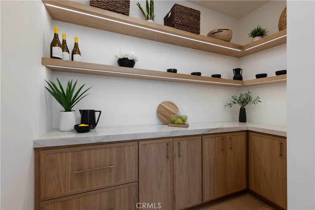 Experience the pinnacle of Newport Beach living in this brand-new, single-story masterpiece spanning 4,677 square feet of refined design and modern luxury. Set on one of Dover Shores' most desirable streets, this architectural gem blends sophisticated style with effortless indoor-outdoor living. Step inside to soaring ceilings and a dramatic 33-foot motorized sliding glass wall that opens seamlessly to your private backyard retreat complete with a sparkling pool, BBQ island, firepit, and elevated deck for entertaining under the sun or stars. The heart of the home is the chef-inspired kitchen, featuring Thermador appliances, Le Blanc quartzite countertops, and a walk-in pantry, all framed by custom cabinetry and natural stone finishes found throughout the residence. The 1,000 sqft primary suite is a sanctuary, boasting a coffee bar, his-and-hers layout, makeup vanity, freestanding tub, and an oversized shower wrapped in breathtaking Michelangelo Dolomite quartzite slabs. Three additional ensuite bedrooms, a glass-enclosed office, and a den provide versatility for family and guests alike. Upstairs, the expansive rooftop deck delivers panoramic, "forever" Back Bay views, complete with a firepit, BBQ, and bathroom, creating the ultimate space for sunset gatherings. Additional highlights include a 3-car garage and a fully integrated Savant home automation system, ensuring every modern convenience is at your fingertips. This is modern coastal living at its finest. 1918 Santiago is a home where every detail is intentional, every finish is natural, and every view is extraordinary.