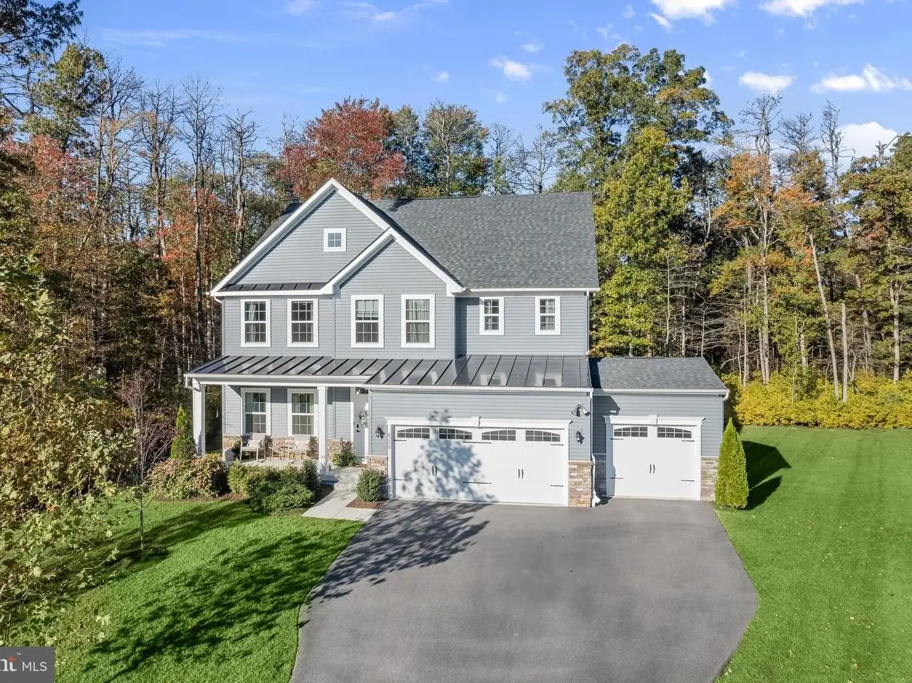 Introducing this exceptional six bedroom, four-and-a-half-bathroom home offering three finished levels of thoughtfully designed living space. Perfectly tucked away on a quiet cul-de-sac in the sought-after Solomons Choice neighborhood, the home backs to lush woods for a peaceful and private setting. A covered front porch extends a warm welcome as you arrive. Step inside the foyer to find a serene neutral color palette, tall ceilings, recessed lighting, and beautiful floors that create an inviting atmosphere. Off the foyer, French doors open to a bright front office that is ideal for working from home or a private study. The open-concept main living areas provide a seamless flow for modern everyday life. The well-appointed kitchen impresses with quartz countertops, a stylish herringbone tile backsplash, 42-inch soft-close cabinets with under-cabinet lighting, a large center island with seating, and a walk-in pantry. Stainless steel appliances include a five-burner gas range and a second wall oven, perfect for entertaining. Sliding glass doors in the dining area lead to a spacious rear deck overlooking the woods, while a floor-to-ceiling stacked stone gas fireplace anchors the living room with warmth and style. A versatile den adds a flexible space for a second office, playroom, or potential guest room. A half bathroom and mudroom area with access to the three-car garage finish the main level. Upstairs, a peaceful primary suite showcases a tray ceiling with crown molding, wooded views, and two walk-in closets. The ensuite bathroom feels like a retreat with a frameless walk-in shower featuring dual shower heads, a dual-sink vanity, and a separate water closet. Down the hall, a second bedroom suite has its own private bathroom. Completing the upper level are three additional bedrooms, a third shared bathroom, and a convenient laundry room. Downstairs, the fully finished lower level expands the living space with a large family room and walk-out stairs to the backyard. A sixth bedroom and fourth full bathroom with a walk-in shower offer privacy for guests, while a spacious utility room provides extra storage or the perfect setup for a home gym or hobby space. Outside, enjoy the tranquil wooded backdrop from the expansive deck that is an ideal spot for entertaining, relaxing, or simply soaking in the serenity of nature.