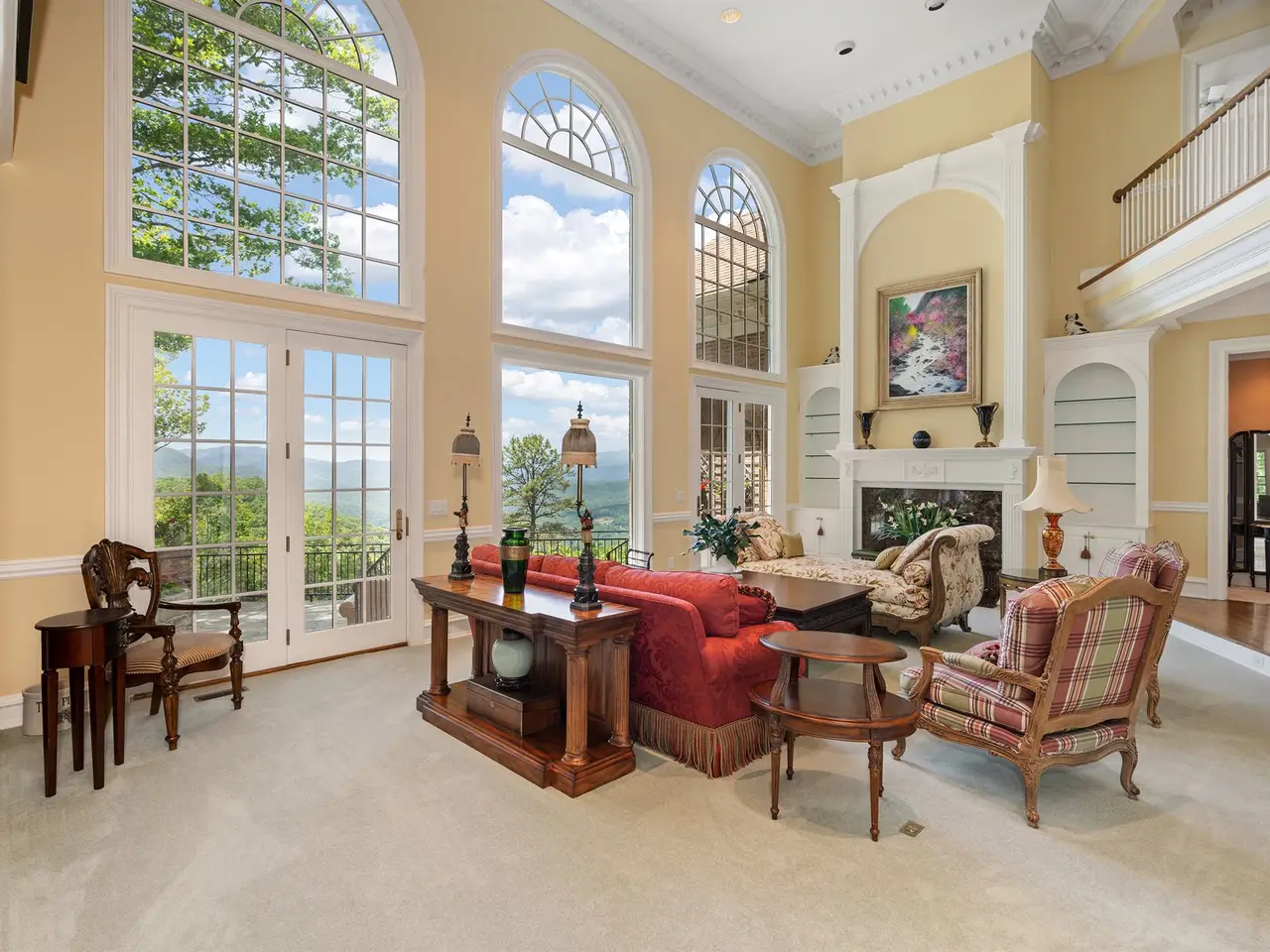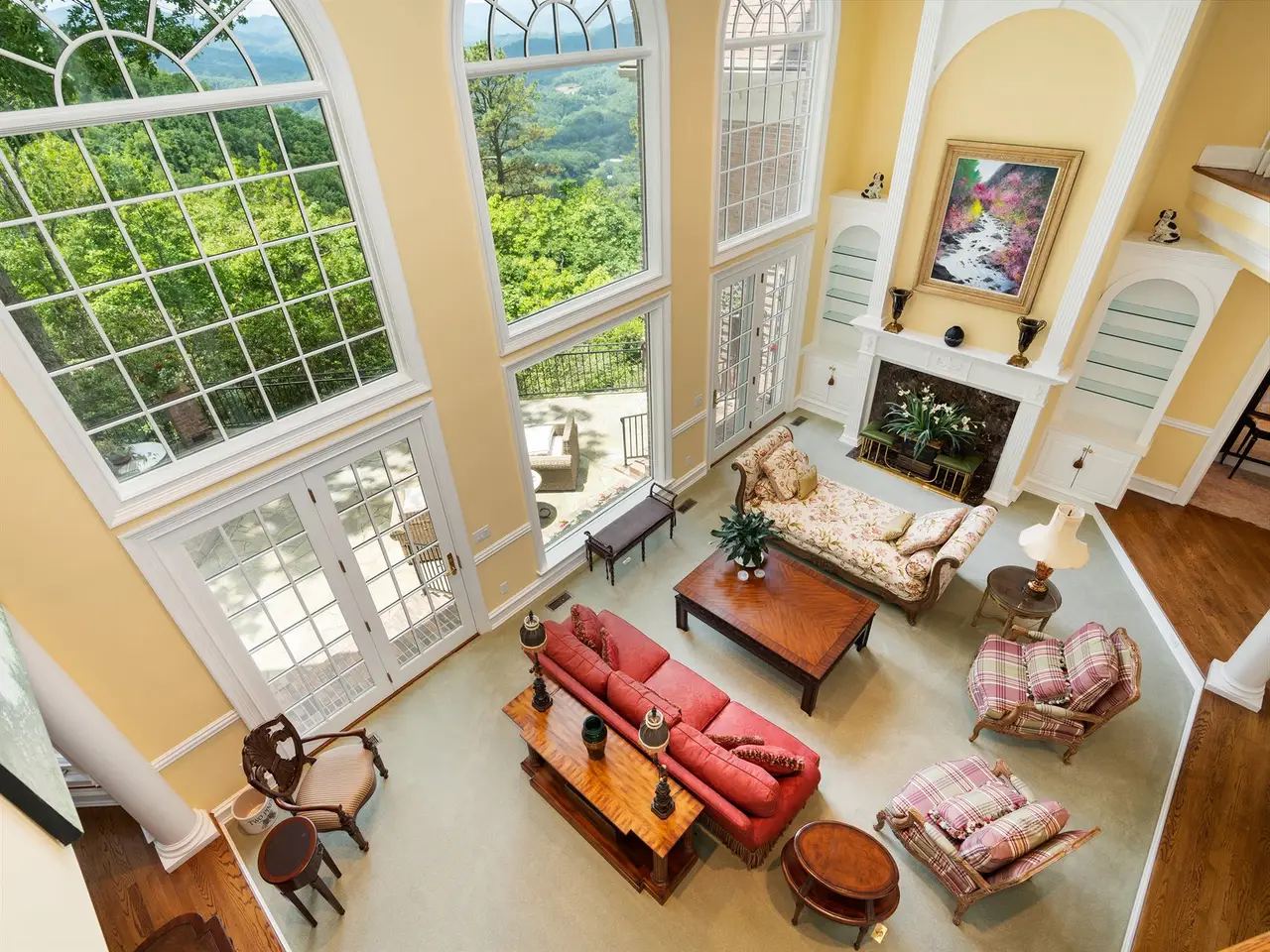 Welcome to "Two Pines," an exquisite, gated, and private mountain retreat minutes from the Great Smoky Mountains and downtown Sylva, North Carolina. This property offers approximately 161 acres of beauty with stunning mountain and city views. A grand foyer leads to a sunken living room and formal dining room with a discreet bar. The chef's kitchen features granite countertops and a breakfast nook. The primary suite boasts a backlit tray ceiling and luxurious amenities, with four additional en suite bedrooms. The 7,400-plus square feet of living space includes a family/game room with a bar and a four-level elevator for easy access. Outside, enjoy the private pond with a gazebo and fire pit. The home, built with 12-inch soundproof walls, ensures peace. A wine room caters to connoisseurs, and a three-car garage offers ample space for parking and storage. This retreat combines luxury living with natural beauty as it is perfectly positioned atop the ridge, yet easily accessible by the gated paved driveway.