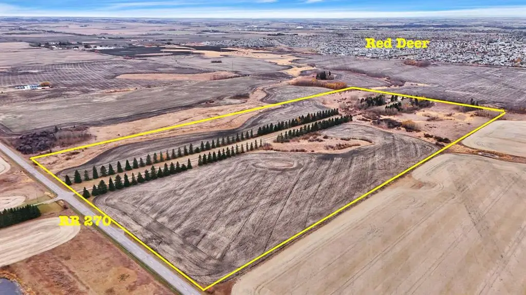 Fabulous opportunity with recent renovation upgrades! Invest in your future and enjoy complete privacy on this 80-acre parcel, located within Red Deer’s intermunicipal district along its eastern boundary. This property offers a wonderful rural lifestyle, a solid investment hold, dual-residence living, and multiple streams of farming income, including livestock, equestrian, solar, tree farming, market gardening, and grain. With its proximity to the city, this is a unique opportunity where your living investment is sure to appreciate over time. The property features a 2-storey main house (built in 1974), a mobile home (1991), a 24'x24' detached garage (1976), a 40'x26' insulated shop with cement flooring, a 50'x24' cold storage pole-style shop (1998), and numerous other outbuildings. The land is level, with approximately 32 acres of arable farmland featuring excellent soil quality, expansive pastures, low-lying areas, treed and brush sections, and a beautiful tree-lined driveway that leads from paved Range Road 270 to the yard site. The main home offers a functional layout with a main floor master bedroom, two living areas (one with a wood-burning fireplace), a kitchen complete with an indoor barbecue, and a renovated 2-piece bath. The expansive bonus room addition features a gas fireplace, patio doors to the south-facing deck, and a bar area perfect for entertaining. Upstairs, you'll find a roomy bedroom with a Juliette balcony, a 4-piece bathroom, and an adjoining space with two additional sleeping areas. The lower level is wide open and offers ample storage, a utility area, and Laundry. The well-maintained mobile home includes 2 bedrooms, 1 bathroom, upgraded vinyl windows (2007), a south-facing covered deck, and a parking shelter. Renovation highlights include new windows for both the house and mobile home (2007), a fully renovated main floor 2-piece bath, and a complete second floor renovation with new doors, trim, shower, flooring, and paint. Additional upgrades include shingles and siding on the house (2011) and a replacement of the septic tank (1992). Zoned A1 Future Urban Development District, this property allows for agricultural and related uses until the land is needed for urban development. This property is a rare combination of lifestyle, investment, income potential, and privacy—an opportunity that rarely comes along!