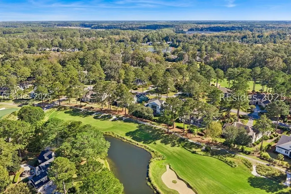 Enjoy panoramic golf and lagoon views overlooking the par 3, 2nd hole of Belfair's East Course from this beautifully crafted 4BD, 4.5BA custom residence. Designed for Lowcountry living, the open floor plan features a formal living and dining room, a great room with gas fireplace, a spacious kitchen with wine cooler, and a study with built-ins and a vaulted ceiling. Additional highlights include hardwood flooring throughout, a generous primary suite with luxurious bath, and guest bedrooms each with en-suite baths. Outdoor living is enhanced by a screened porch and open patio surrounded by lush landscaping with irrigation well. Quality details abound, Rinnai tankless water heaters, foam insulation, and a new roof installed in 2021.