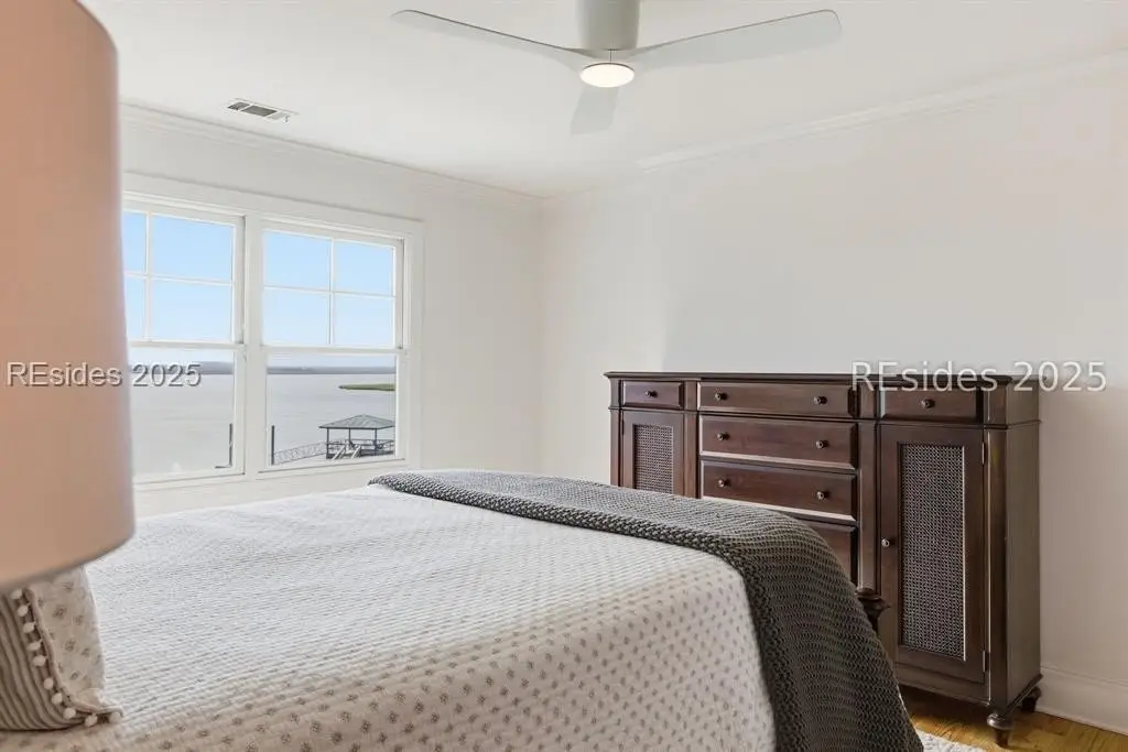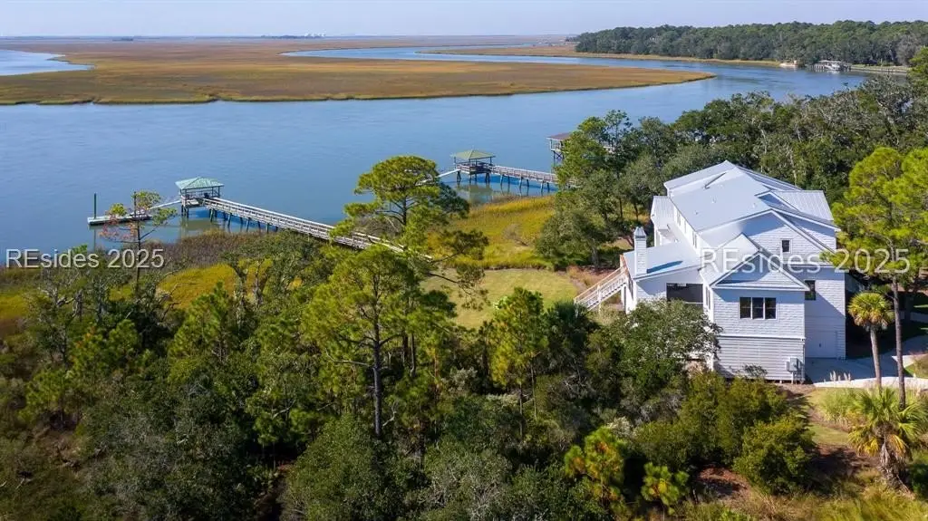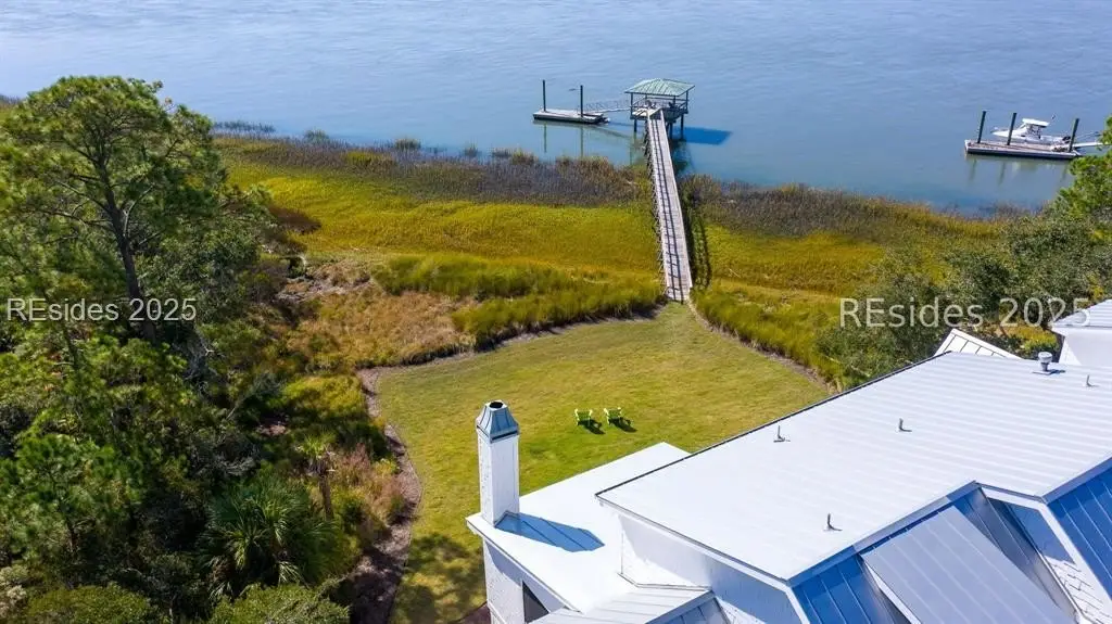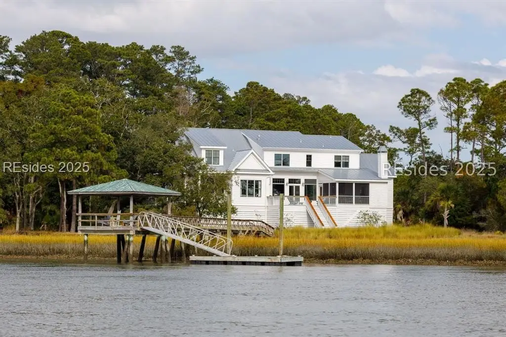 Experience the ultimate in Lowcountry luxury and privacy at this exceptional waterfront home on Daufuskie Island, located in the exclusive community of Bloody Point. Commanding sweeping, unobstructed water views across the Cooper River to Savannah and Tybee Island, this remarkable residence is one of the rare few on the island to enjoy year-round sunsets from both the home and the private deep-water dock. A builder's personal home, this house was beautifully remodeled in 2024 and features 5 bedrooms, 4 full bathrooms, and 2 half bathrooms, all showcasing high-end designer finishes and curated lighting throughout. The chef's kitchen is a true centerpiece, boasting premium appliances, custom cabinetry, and a generous island perfect for both culinary creations and relaxed gatherings. Every detail, from the refined fixtures to the hand-selected furnishings, has been thoughtfully chosen to elevate the home's modern coastal aesthetic. The open-concept living and dining areas seamlessly flow to a large screened-in porch complete with a fireplace--ideal for enjoying cool evenings and expansive river views. Outdoors, a serene patio offers the perfect spot for alfresco dining or morning coffee. The property is further enhanced by its rare private, deep-water dock on the Cooper River, offering direct water access and the potential to install a boat lift for carefree days on the water. A short golf cart ride brings you to one of the most secluded and pristine beaches in South Carolina, where miles of untouched sand await. Optional Haig Point membership extends the lifestyle experience even further, offering world-class amenities including the Rees Jones Signature Golf Course, tennis and pickleball courts, waterfront dining, an equestrian center, fitness facilities, and 24/7 ferry and water taxi service to Hilton Head and Harbour Town. Perfect as a primary residence or serene second home, this is an unparalleled opportunity to own a true sanctuary on a bridgeless island--where nature's beauty, refined luxury, and authentic island living effortlessly converge.