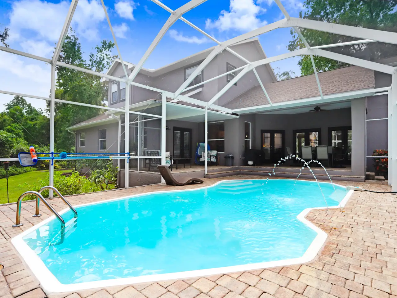 Spacious POOL home, surrounded by trees with over 2 acres to call your own. Tastefully updated and impeccably maintained, this home is ready for you to move right in. Bring your toys!! This property has NO Deed restrictions and NO HOA, includes an RV/Boat Carport with 30 Amp hookup AND detached FINISHED 4 car garage (25x50ft and 10' ceilings) with 3 – 8 ft garage doors and a built-in work area. AND did I mention currently zoned Strawberry Crest High School district! *2024 - Both Main floor A/C units replaced, Kitchen remodel, Septic pumped, 1/2 bath updated. *2023 - Home completely painted inside and out, all exterior door hardware replaced, Pool Salt Cell replaced. *2022 - Upstairs A/C replaced, Pool rescreened, Stairs and entire 2nd floor carpet replaced, Pool pump replaced. *2021 - New Roof on home and garage complete with gutters (transferable warranty), Front porch ceiling vinyl soffit updated. *2020 - Primary Bath remodel, Bedroom 2 tiled *2017 – RV/Boat Carport 15x40 with 12ft walls and 30 Amp hookup, New 10x12 Shed. *2016 – New Pool pavers installed with thin-set rather than sand which means no weeds! *2015 – New tile in majority of 1st floor (new carpet in office). Dreamed of that front porch living? Enjoy the peace and quiet. Entering the front door, you'll immediately be welcomed with tons of natural lighting filtered by the mature landscaping. On the 1st floor you'll find the expansive Primary bedroom with luxurious ensuite bathroom and large walk-in closet. Bedroom 2 complete with access to outdoor deck and another full bathroom down the hallway. Upstairs you'll find 3 well apportioned bedrooms and a flex space/office/den/nursery/storage. Tons of storage closets throughout the home too! You will absolutely fall in love with the living space downstairs. Large kitchen is every cook’s dream with Italian Quartz and all new lighting. PLUS connected to the charming family room with updated fireplace and custom built in features is the perfect place for everyone to gather. French doors and large windows will bring the peaceful surroundings into view and just past the family room is the living room with extra flex space to use as you need. LOCATION LOCATION LOCATION! In the country but just on the outskirts of EVERYWHERE! Minutes to interstate to conveniently get you to Downtown Tampa and easy access to Lakeland and Orlando. Within an hour drive of many attractions, less than 30 minutes to Hard Rock Casino, Ford Amphitheatre, Florida State Fairgrounds, AND world-famous Strawberry Festival Grounds! Tampa International Airport is less than 30 miles for added travel convenience and close by to explore our world-renowned Gulf