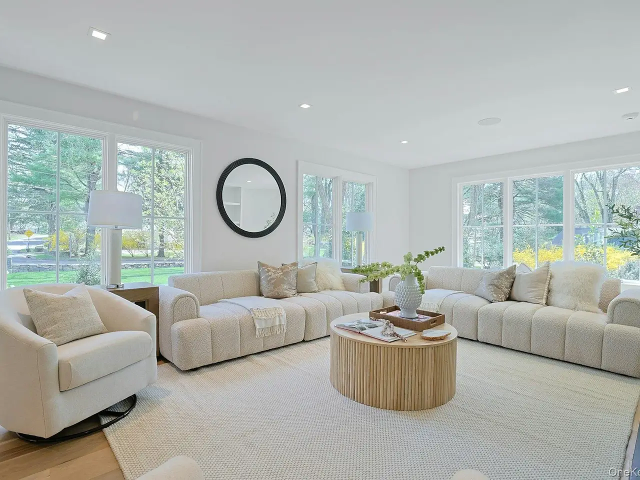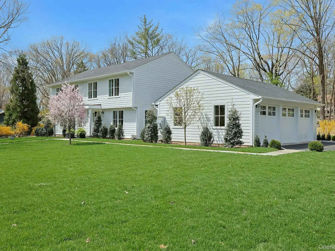 Elegant Colonial with Pool on Cul-de-Sac in Armonk (Byram Hills Schools) Located on a quiet cul-de-sac, this expanded and updated Colonial sits on a level, landscaped acre with a heated in-ground pool, stone patio, and fenced yard. Oversized windows fill the home with light, showcasing wide-plank wood floors and high-end finishes. The chef's kitchen features marble counters, custom cabinetry, and top appliances. The spacious primary suite includes a luxurious bath with radiant heat, soaking tub, and oversized shower. Lives like a 4-bedroom with a flexible first-floor guest room/office. Finished walk-out lower level (~950 sf) opens to the pool area. Approx. 3,800 sf above grade. Oversized 3-car garage, outfitted closets, and full-house Generac generator complete the package.