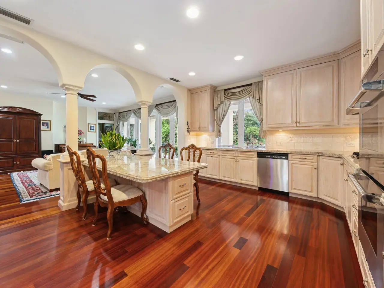 Experience unparalleled waterfront living on Hypoluxo Island! This sprawling 31,000+ square foot lot on North Atlantic Drive embodies the essence of peace, privacy, and the pinnacle of coastal living. This exceptional waterfront home offers direct ocean access with no fixed bridges and is just a short walk from the prestigious 5-star Eau Hotel and Spa, pristine beaches, and world class shopping and dining. With 100-feet of prime intracoastal frontage, this custom-built Mediterranean estate designed by acclaimed architect Roger Janssen features 100% CBS construction with stem-wall foundation and is equipped with whole house high-impact windows and doors. Additionally, the home features 5 total bedrooms, 4 and a half baths, library, a heated saltwater pool, dockage with water and electric