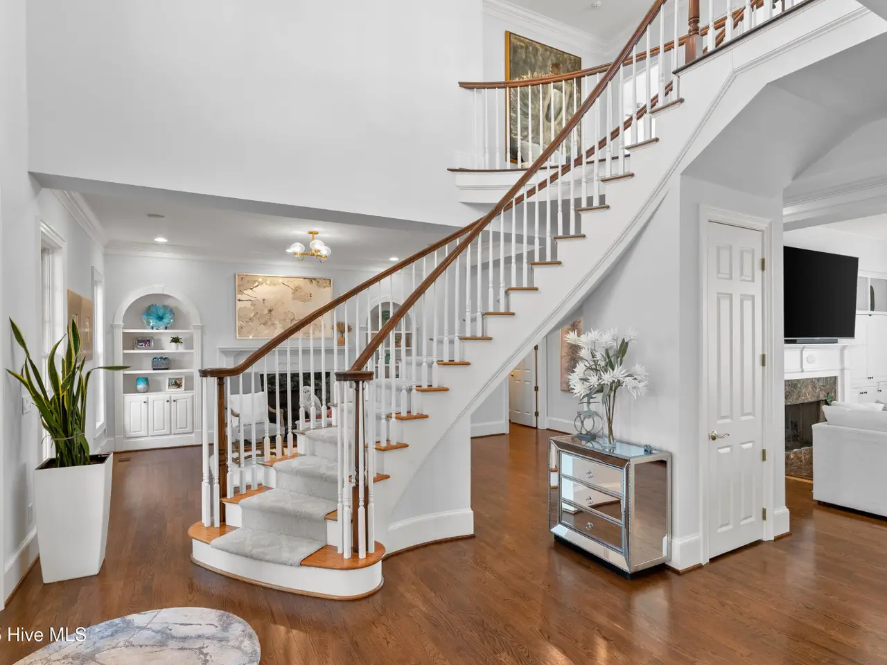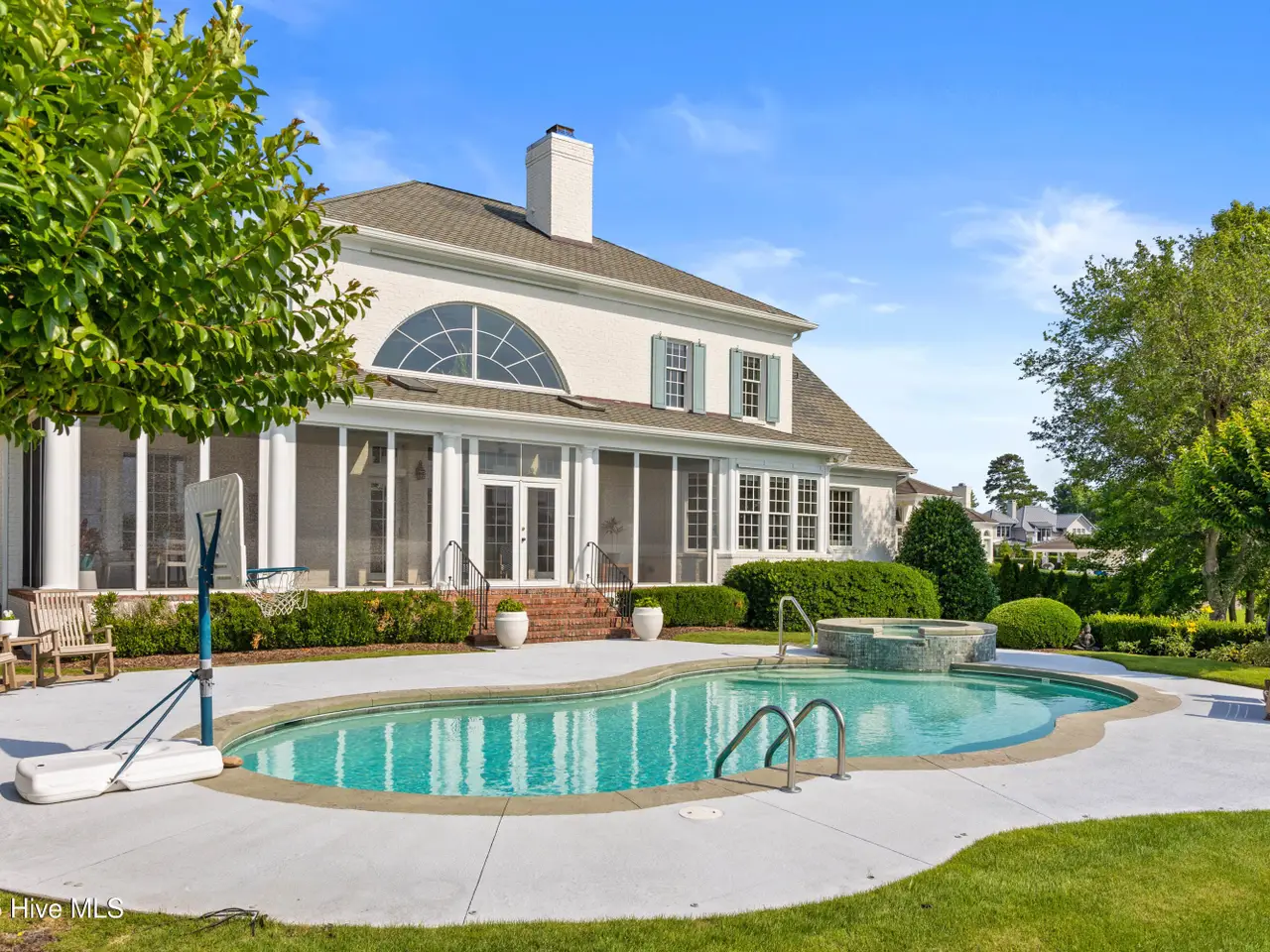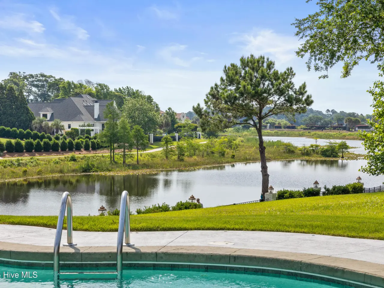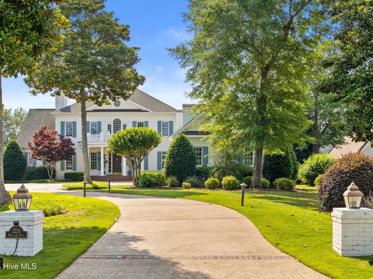 Welcome to 2220 Moreland Drive on the stunning Landfall Lake with breathtaking views. As you pull up to this stately home you will notice the great curb appeal, large driveway, and 3 car garage. As you step inside, your eyes will be drawn straight to the gorgeous view of the lake and even views of the Intracoastal waterway. The open foyer has a formal dining room to the right and a living room to the left complete with a gas fireplace. The family room is center in the house with a wet bar, gas fireplace, and leads to a lovely screened-in porch. The updated kitchen is light and bright with quartz countertops, ceiling-height cabinets, and a Wolfe range. There are two powder rooms downstairs plus a spacious laundry room. The master bedroom is also on the first floor positioned perfectly to wake up to heavenly views. Over the garage is a large bonus room that would be make a great fifth bedroom as it has a huge ensuite bathroom, the bonus room is currently being used as a home gym. There are 3 additional bedrooms upstairs plus a loft/flex space which would make a great playroom, media room, or office. One of the best features of this property is the high elevation of this almost one acre lot complete with a pool, spa, patio, and built-in grilling area just off the kitchen. You can start or end your day with a walk around the idyllic Landfall Lake which is right in your backyard. Whether you want to relax or entertain, this house checks all the boxes.