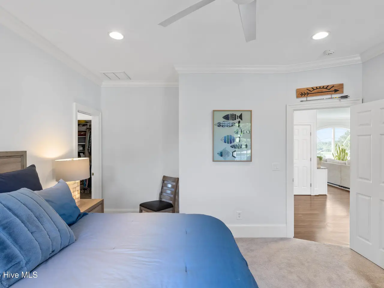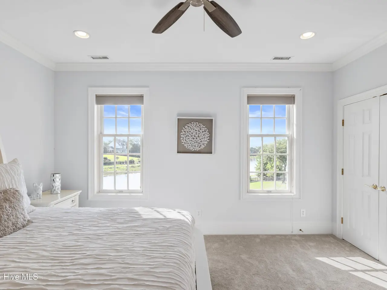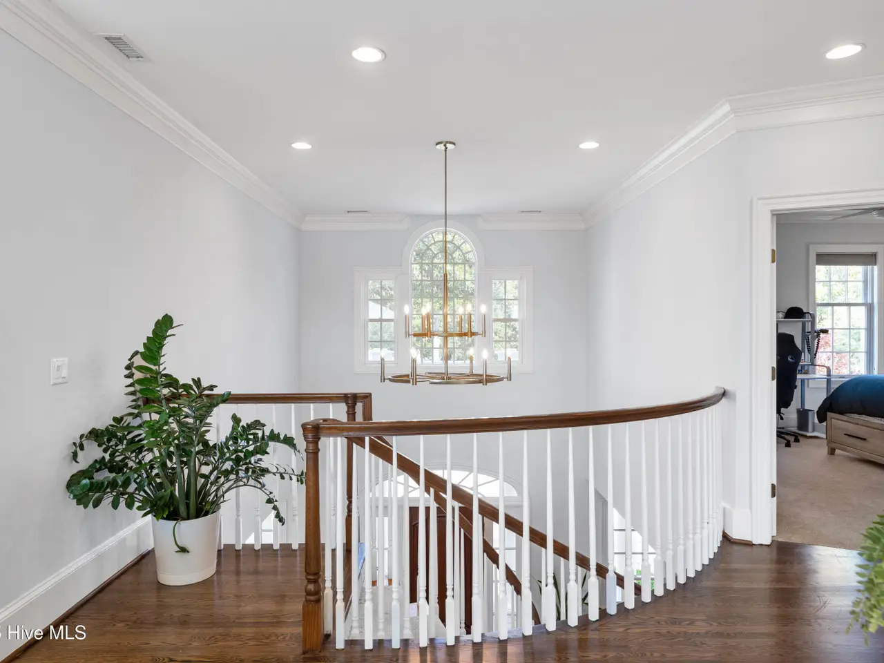 Welcome to 2220 Moreland Drive on the stunning Landfall Lake with breathtaking views. As you pull up to this stately home you will notice the great curb appeal, large driveway, and 3 car garage. As you step inside, your eyes will be drawn straight to the gorgeous view of the lake and even views of the Intracoastal waterway. The open foyer has a formal dining room to the right and a living room to the left complete with a gas fireplace. The family room is center in the house with a wet bar, gas fireplace, and leads to a lovely screened-in porch. The updated kitchen is light and bright with quartz countertops, ceiling-height cabinets, and a Wolfe range. There are two powder rooms downstairs plus a spacious laundry room. The master bedroom is also on the first floor positioned perfectly to wake up to heavenly views. Over the garage is a large bonus room that would be make a great fifth bedroom as it has a huge ensuite bathroom, the bonus room is currently being used as a home gym. There are 3 additional bedrooms upstairs plus a loft/flex space which would make a great playroom, media room, or office. One of the best features of this property is the high elevation of this almost one acre lot complete with a pool, spa, patio, and built-in grilling area just off the kitchen. You can start or end your day with a walk around the idyllic Landfall Lake which is right in your backyard. Whether you want to relax or entertain, this house checks all the boxes.