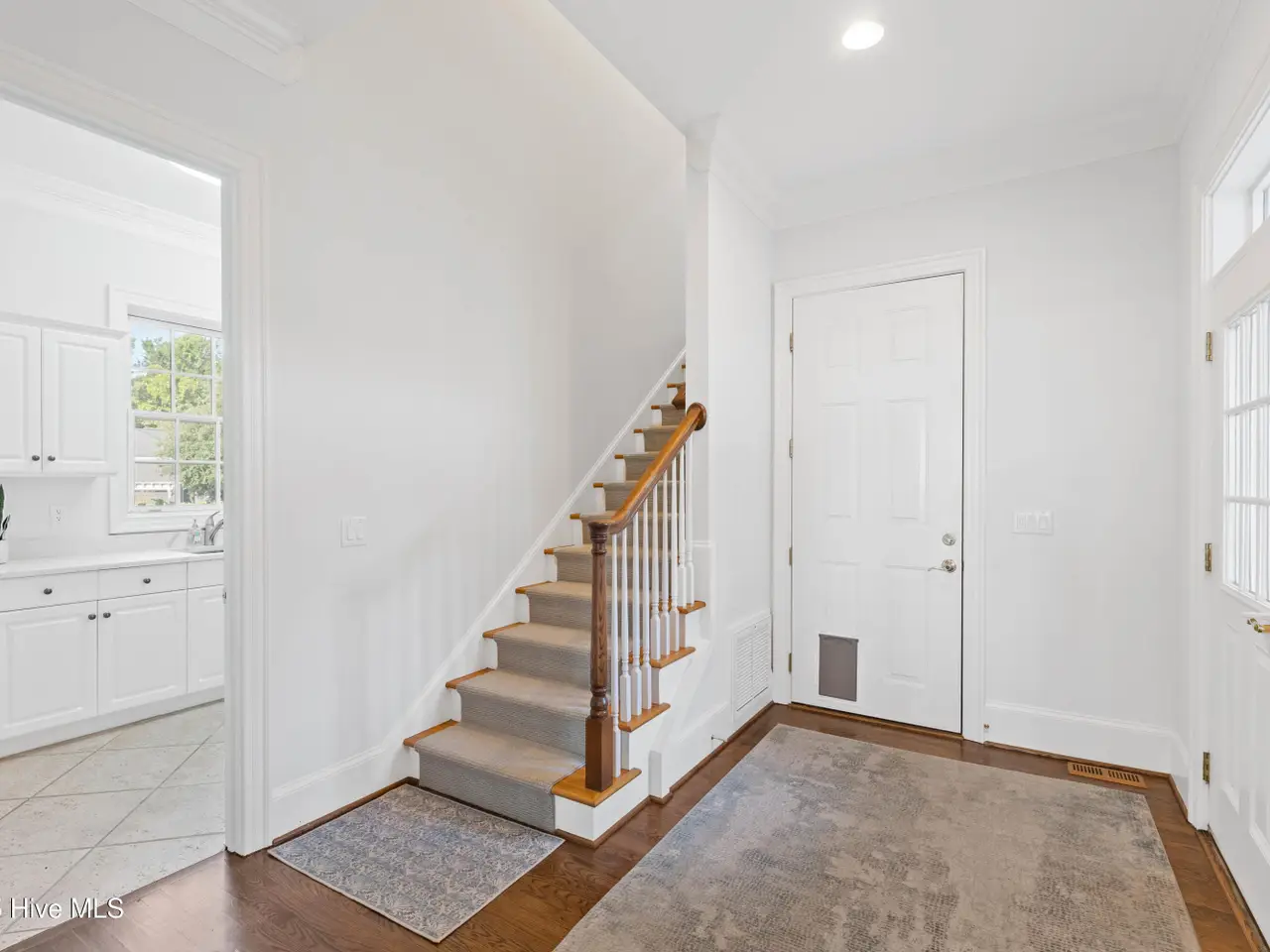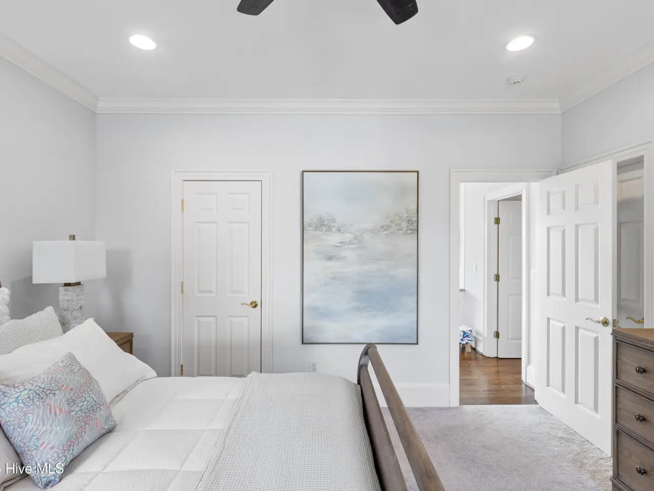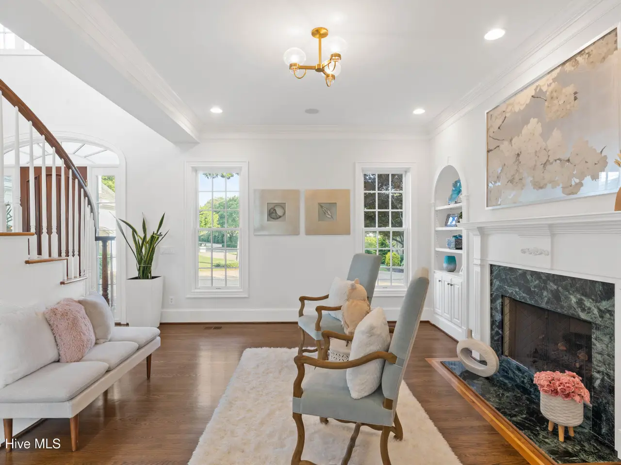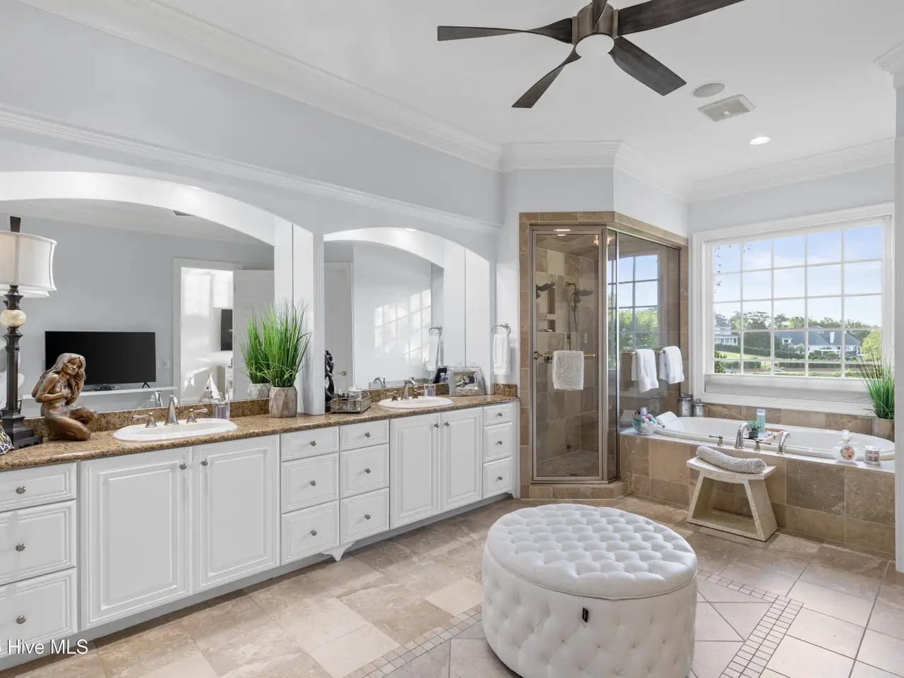 Welcome to 2220 Moreland Drive on the stunning Landfall Lake with breathtaking views. As you pull up to this stately home you will notice the great curb appeal, large driveway, and 3 car garage. As you step inside, your eyes will be drawn straight to the gorgeous view of the lake and even views of the Intracoastal waterway. The open foyer has a formal dining room to the right and a living room to the left complete with a gas fireplace. The family room is center in the house with a wet bar, gas fireplace, and leads to a lovely screened-in porch. The updated kitchen is light and bright with quartz countertops, ceiling-height cabinets, and a Wolfe range. There are two powder rooms downstairs plus a spacious laundry room. The master bedroom is also on the first floor positioned perfectly to wake up to heavenly views. Over the garage is a large bonus room that would be make a great fifth bedroom as it has a huge ensuite bathroom, the bonus room is currently being used as a home gym. There are 3 additional bedrooms upstairs plus a loft/flex space which would make a great playroom, media room, or office. One of the best features of this property is the high elevation of this almost one acre lot complete with a pool, spa, patio, and built-in grilling area just off the kitchen. You can start or end your day with a walk around the idyllic Landfall Lake which is right in your backyard. Whether you want to relax or entertain, this house checks all the boxes.