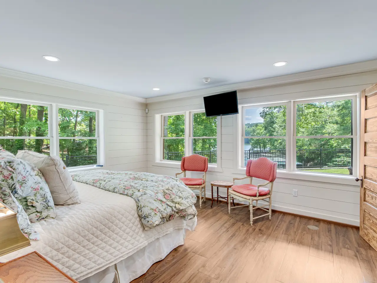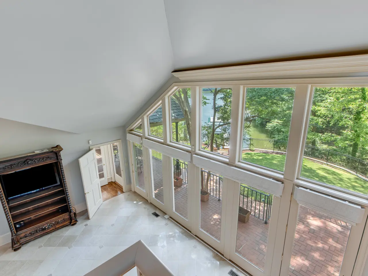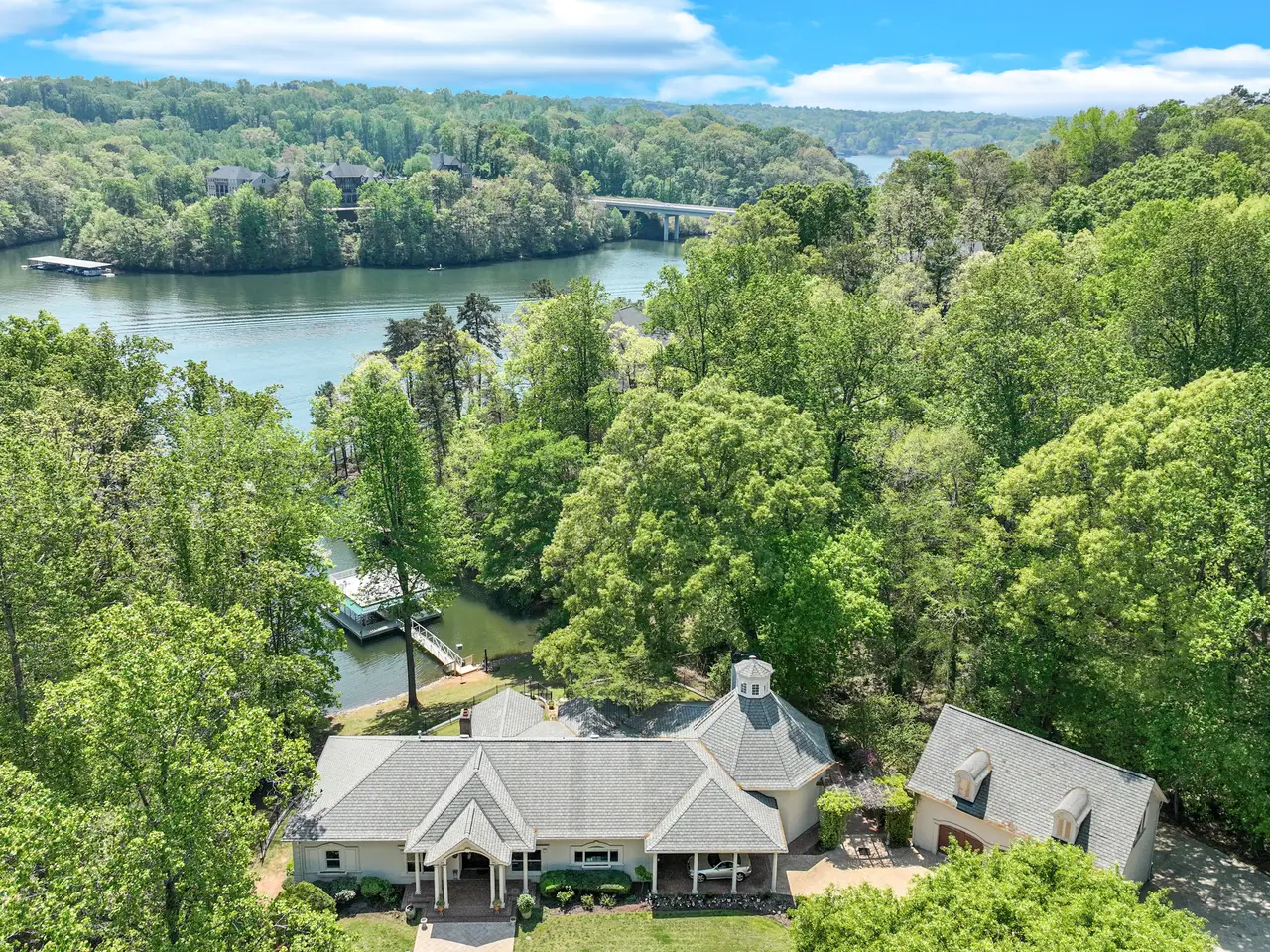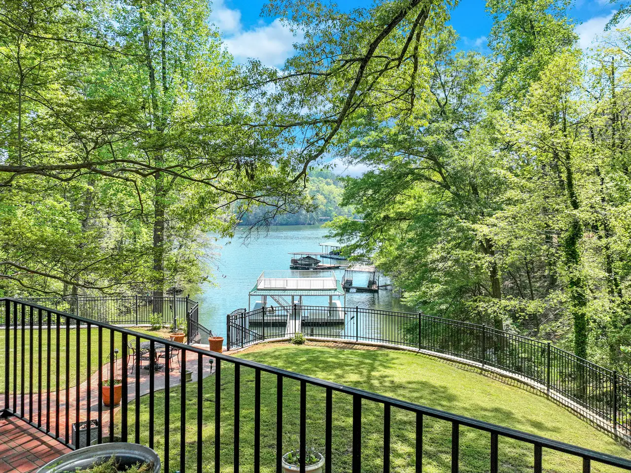 This stunning Lake Lanier estate is the ultimate retreat for entertaining family and friends-offering privacy, space, and an unbeatable lakefront lifestyle. Custom-built with timeless European elegance, the home is perfectly positioned at the water's edge, with plenty of room for a future pool and over 300 feet of shoreline. Enjoy year-round lake views from expansive covered porches and patios, all set on more than 2 beautifully landscaped acres across three lots. One lot is an extra buildable lot. A grand circular driveway leads to a five-car garage and a 32'x32' twin-slip party dock-providing ample space for guests, boats, and vehicles. Inside, the main level showcases an impressive open layout ideal for hosting, featuring a formal dining room, a private study, and a spacious vaulted great room with a cozy fireplace. The chef's kitchen is the heart of the home, designed to gather around-with a large island, gas range, and generous prep space. The luxurious owner's suite is a serene escape, complete with a spa-like bath featuring a fireside soaking tub, abundant closet space, and a private loft that makes a perfect reading nook or office getaway. Also on the main level: two additional bedrooms, a full bath, and a flexible bonus room or office. The finished terrace level offers even more living space-complete with a second kitchen, game room, family room, half bath, and two spacious guest bedrooms that share a full bath and private sitting area. Ideal for multigenerational living! Car enthusiasts will love the separate five-car detached garage, with front entry three-car garage, which includes a drive-around two-car garage plus workshop, and a finished second floor offering 1,000 square feet of heated/cooled space-perfect for an office, in-law suite, or future bunk room. All this just 5 minutes from downtown Gainesville, I-985, Northeast Georgia Medical Center, and the shopping and dining of Limestone Parkway. Zoned for top-rated North Hall schools and close to Lakeview Academy.