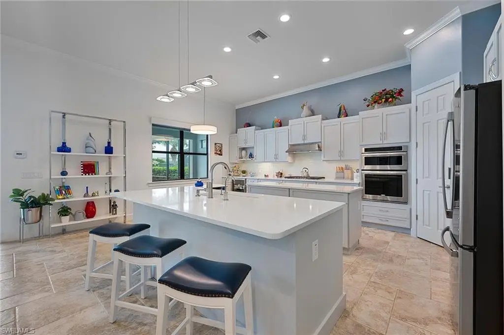 Have it all in this totally updated and complete with all the bells & whistles Cameron floorplan set on wide lake views. Spanning just under 2,400 sq ft under air, this spacious re-imagined and renovated home offers 3 full bedrooms, a den, 3 full baths, a large great room, formal dining room, huge island kitchen with attached 2nd eating area. 3 CAR Garage has new AC and new additional insulation! Current owners have done endless updates during ownership totaling over $200k in updates. New Generac whole home generator, impact glass throughout when built, all tile and wood floors throughout, new AC, new pool lanai large pavers, new paint interior and exterior, whole house water filtration, new closet built-ins, new higher end kitchen appliances and wine cooler, cabinets, backsplash and quartz counter tops, new custom shower doors, garage built-ins, new screen entire lanai cage, new washer & dryer. Ambiance galore with a full low voltage yard night lighting package as well. This home is a must see if you want move in ready, quality and new finishes, lots of light bright high ceiling space, with the indulgence of a 3 car garage and spacious lanai featuring a heated pool & spa all set in one of the most desired gated communities nestled near our A rated schools and west of I-75 with quick proximity to all the white sand beaches and amenities Collier County has to offer.