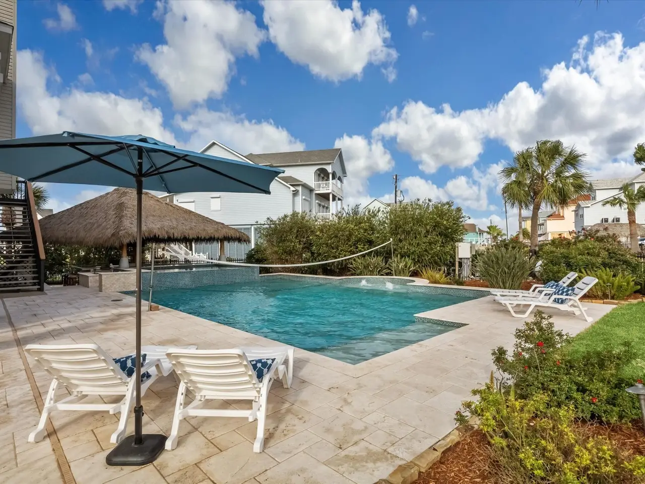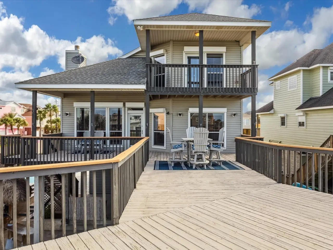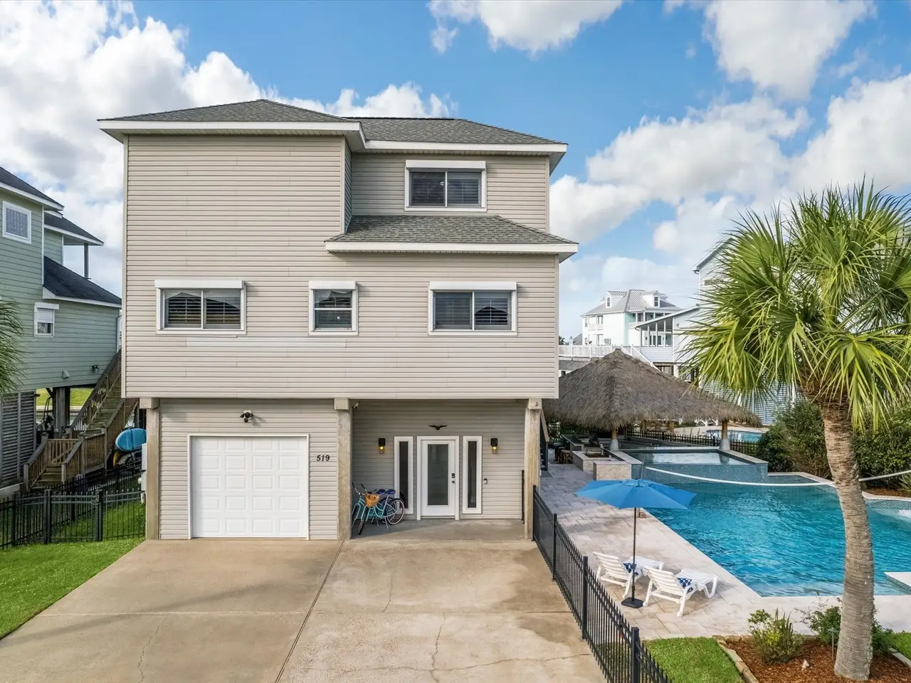 Experience waterfront living at its finest in this stunning Tiki Island home with breathtaking bay views and direct water access. Set on a spacious canal lot, this property is a dream for boating and fishing enthusiasts, with deep-water canal access to West Galveston Bay. The outdoor space features a heated pool with a swim-up bar, a recently updated synthetic Coastal Shade palapa (2023), and a fully equipped summer kitchen, perfect for entertaining. Inside, the home boasts high ceilings, wood floors, and a spacious kitchen. The oversized primary suite offers a private retreat with an ensuite bath and large walk-in closet, while three guest bedrooms ensure ample space for visitors. Thoughtful updates make this home move-in ready. Located in the exclusive Tiki Island community, this home is ideal for both vacation and full-time coastal living, just minutes from Galveston. Enjoy boating, fishing, swimming, and creating lasting memories in this one-of-a-kind home. All per Seller.