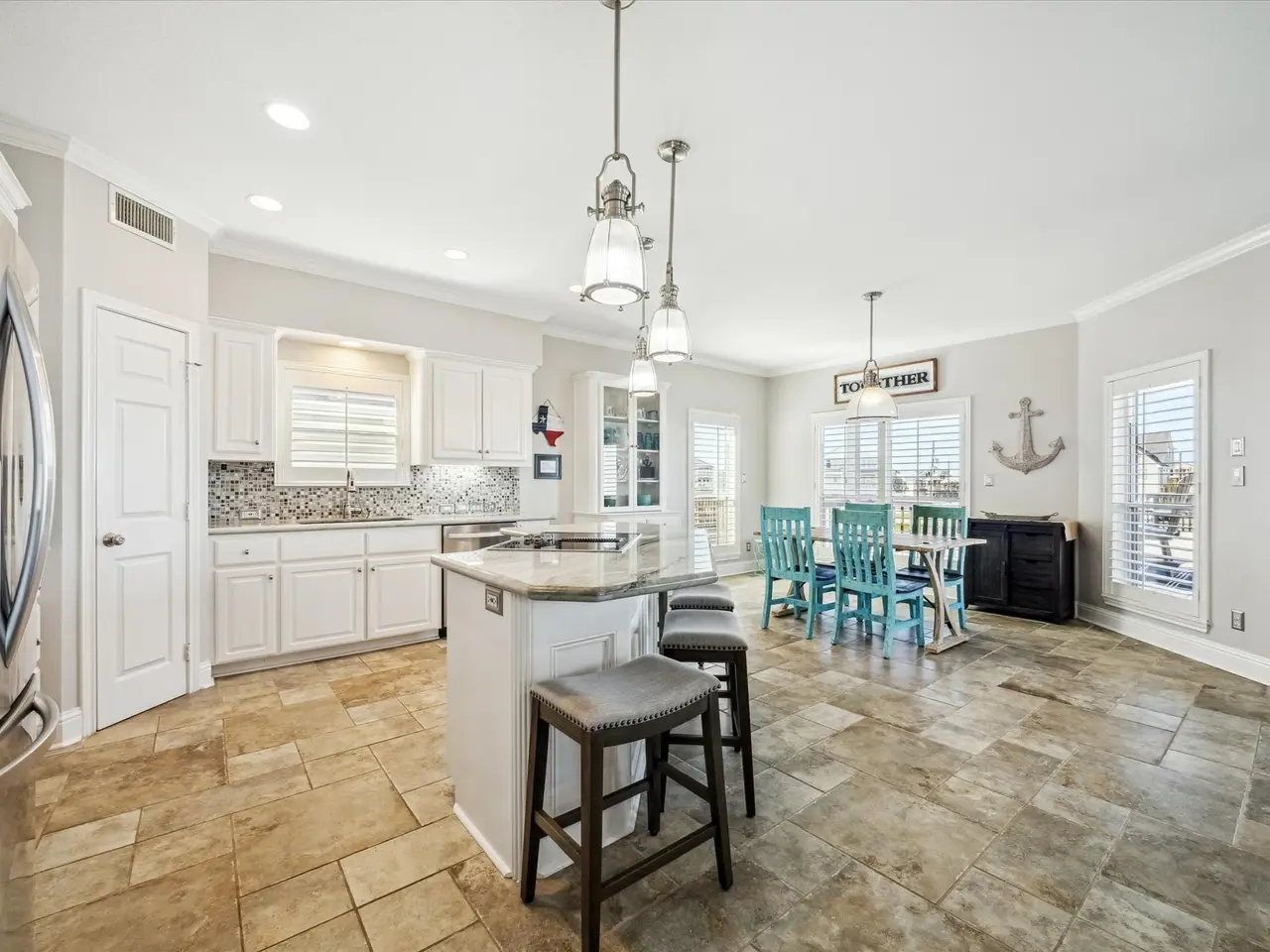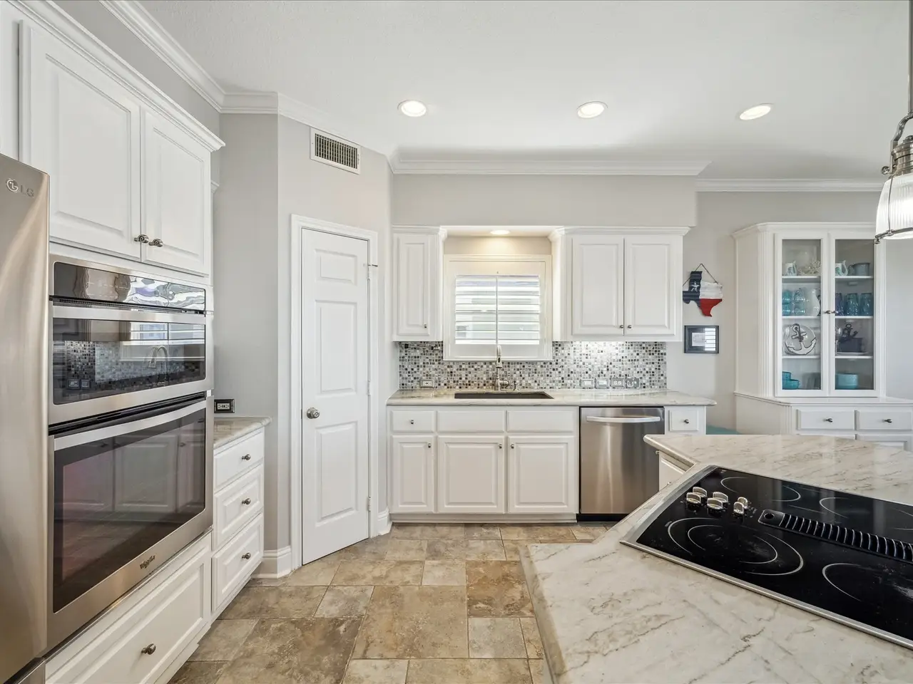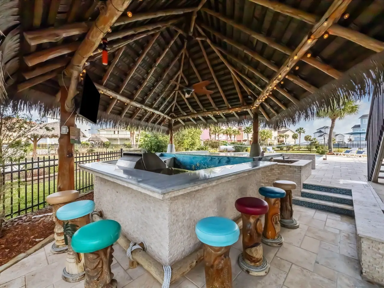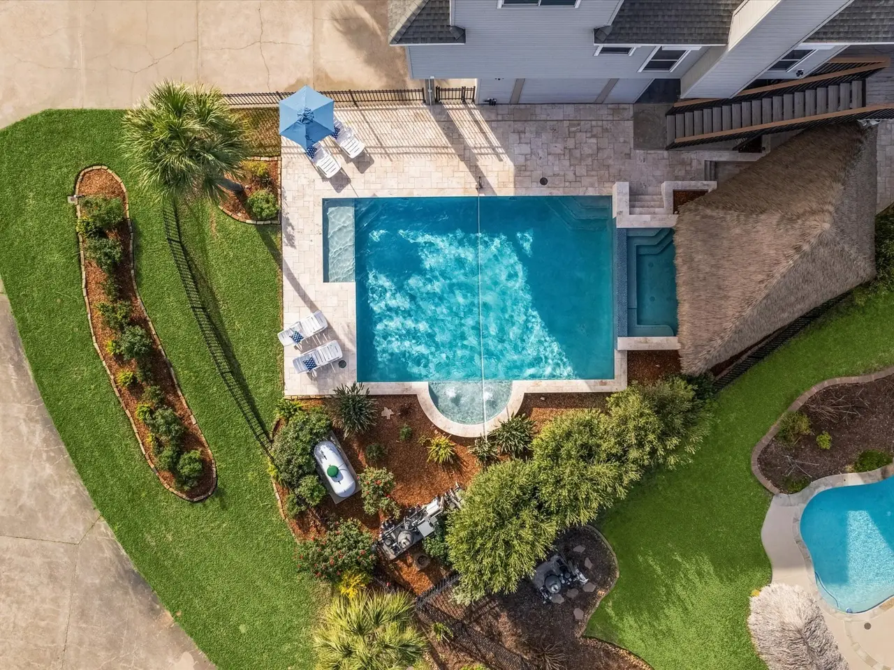 Experience waterfront living at its finest in this stunning Tiki Island home with breathtaking bay views and direct water access. Set on a spacious canal lot, this property is a dream for boating and fishing enthusiasts, with deep-water canal access to West Galveston Bay. The outdoor space features a heated pool with a swim-up bar, a recently updated synthetic Coastal Shade palapa (2023), and a fully equipped summer kitchen, perfect for entertaining. Inside, the home boasts high ceilings, wood floors, and a spacious kitchen. The oversized primary suite offers a private retreat with an ensuite bath and large walk-in closet, while three guest bedrooms ensure ample space for visitors. Thoughtful updates make this home move-in ready. Located in the exclusive Tiki Island community, this home is ideal for both vacation and full-time coastal living, just minutes from Galveston. Enjoy boating, fishing, swimming, and creating lasting memories in this one-of-a-kind home. All per Seller.