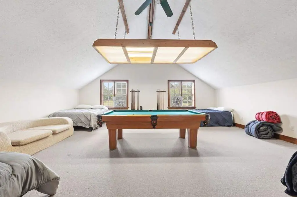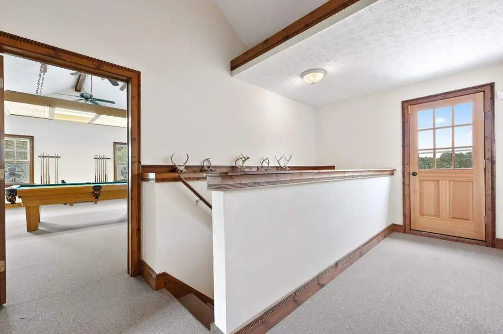 An idyllic lodge with over 82.59 heavily wooded acres of abundant deer hunting and timbering opportunities. Enter the gated property onto a well-maintained grassy lawn with ample parking space among mature, leafy trees. Take a few steps up to the home's wrap-around back porch where an outdoor grill and porch swing have been the popular spaces for overlooking family fun, country weddings, and after-the-hunt dinners on the giant lawn. From the porch, enter the great room with gleaming hardwood floors, high-beamed, two-story ceilings, a huge brick fireplace, a dining area, a wet bar, and game table area. Take one step up to the nearby kitchen which overlooks the great room and has a breakfast counter, stained cabinets, highly-shellacked wooden countertops, and open shelving. Additional rooms on the main level are three spacious bedrooms and one full bath located off a long hall directed toward the property's front door on one end and the kitchen and great room on the other. There is an additional half bath and laundry room off the kitchen and in close proximity to the great room. Upstairs is the billiard room with an open space large enough to accommodate at least four double beds and a few sleeping bags. Perfect for gathering a casual crowd of hunters on the night before the outing. A full bath and two doors leading to two separate outdoor balconies complete the casual camp-style ambiance. The property is the perfect hunting lodge, as the current owners have used it. Or, take advantage of the wide-open outdoor camping spaces for making many childhood family memories. There is even a stand of pecan trees left from the original homeplace for anyone interested in pecan harvesting. Located near the beautiful and historic downtown Madison, it's a great place for all to enjoy.
