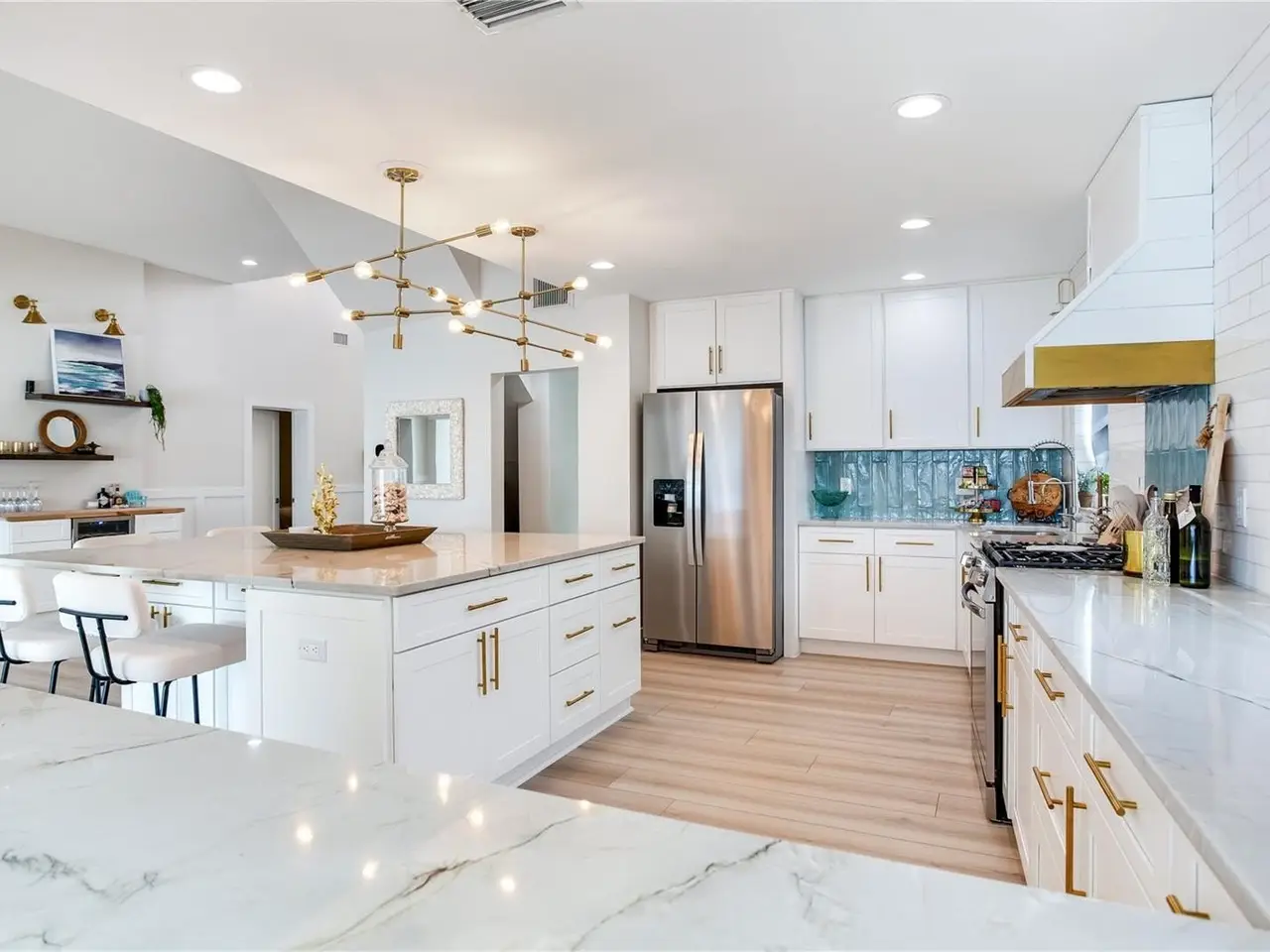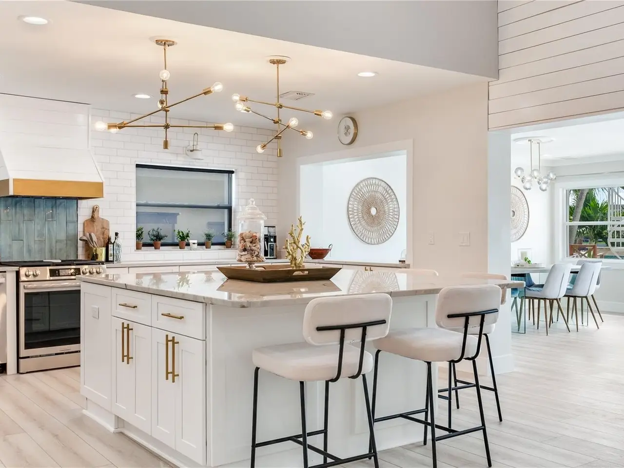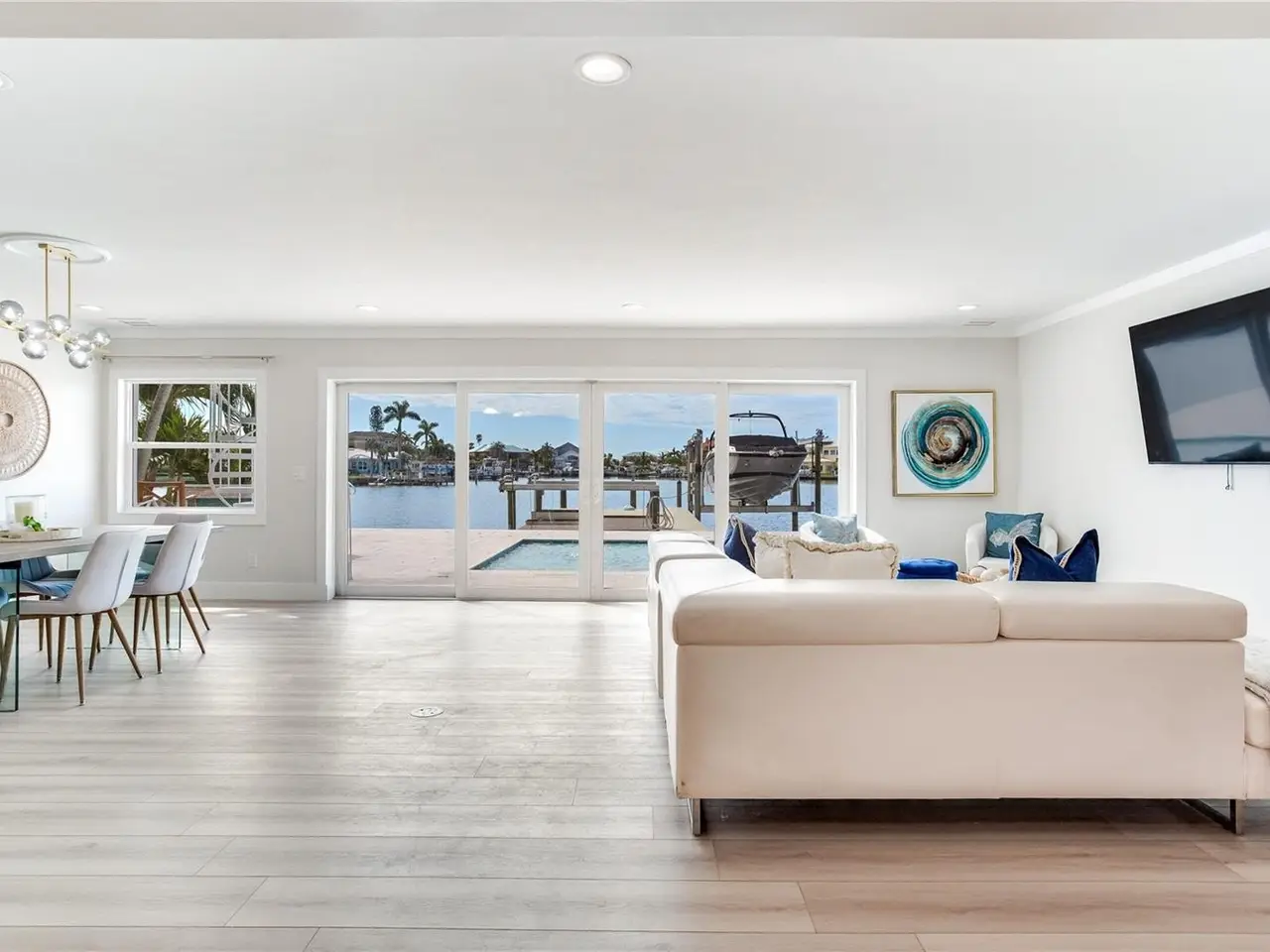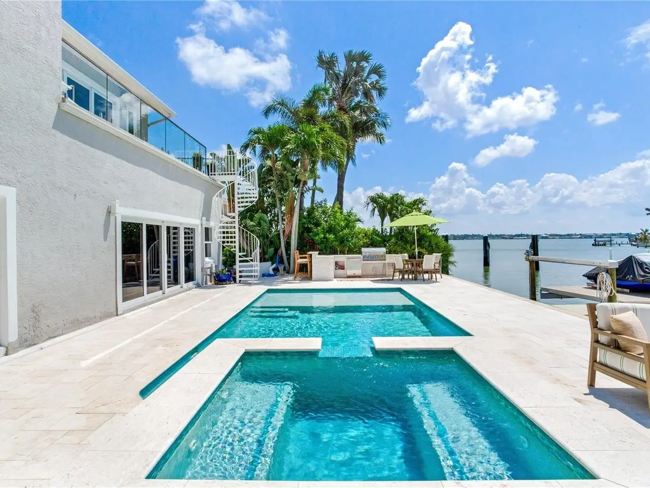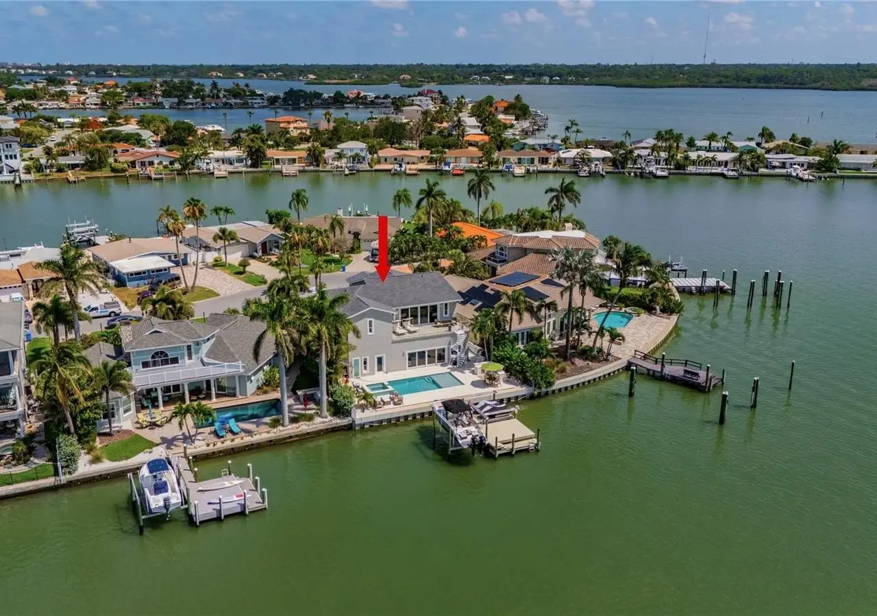 ELEGANT WATERFRONT ESTATE | 5 BEDROOMS • 5 BATHS • 3,767 SQ FT Experience the wow factor from the moment you enter this fully renovated North Redington Beach estate. This 5-bedroom, 5-bath tropical oasis offers an open, airy floor plan with soaring ceilings and stunning water views. The chef’s kitchen is a dream, featuring granite countertops, stainless steel appliances, a spacious island with abundant storage, and a pass-through breakfast bar—perfect for family gatherings or entertaining on a grand scale. The main level offers two bedrooms with ensuite baths, plus a third guest room with access to a full bath. Upstairs, a second living space takes in panoramic Boca Ciega Bay views from a frameless glass balcony. The luxurious primary suite is an oversized retreat with a spa-inspired ensuite featuring a soaking tub, walk-in glass shower, and dual vanities. An additional guest suite and full bath complete the upper level. Step outside to your private resort-style paradise. Enjoy a brand-new pool with sun shelf and spa, an outdoor kitchen, and lush tropical landscaping. A new seawall and dock include a 12,000 lb lift plus a flat lift for jet skis or other water toys. Every detail of this home reflects craftsmanship, beauty, and the ultimate Florida lifestyle. Don’t miss this opportunity to own one of the area’s premier waterfront residences.