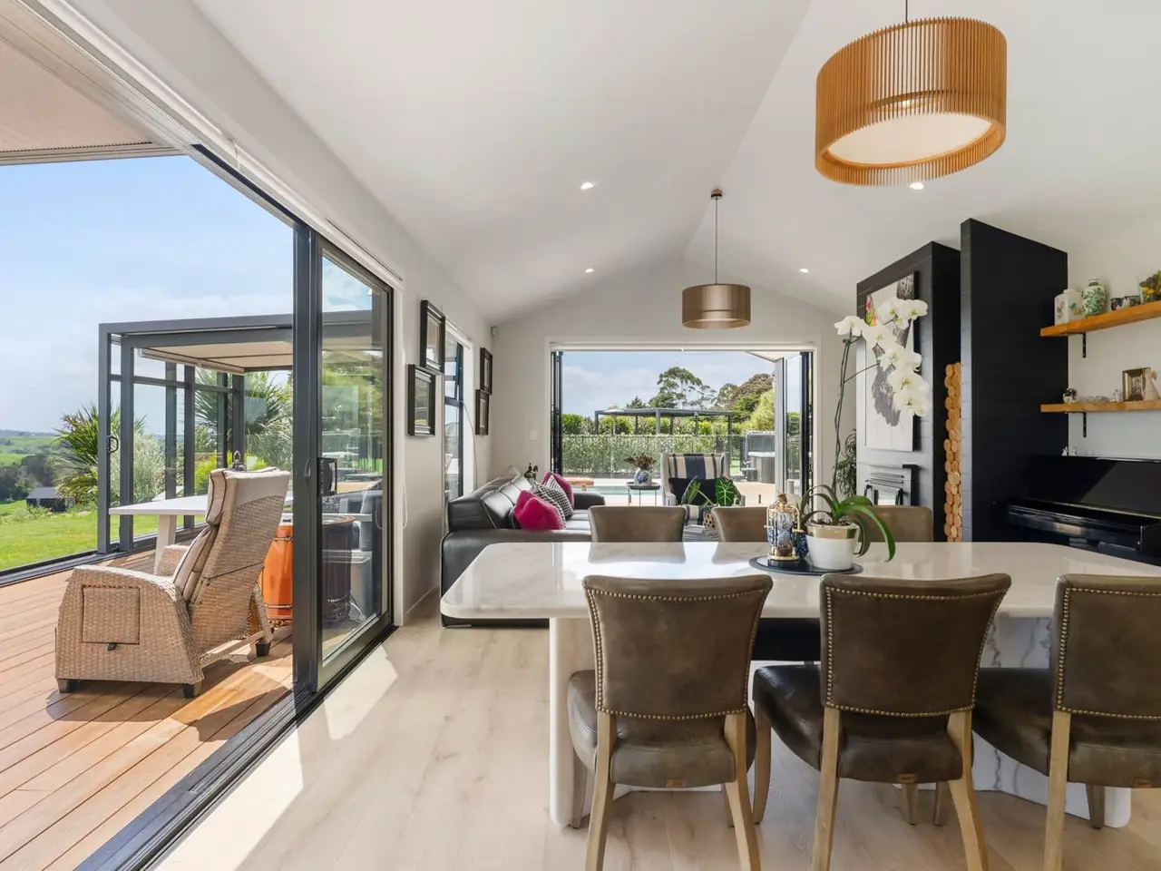HIGHLY MOTIVATED SELLERS - READY TO RELOCATEQuality built by Build with Titus less than four years ago, this 240 square metre (approx) Axon Panel and Cedar constructed home is located on 3,124 square metres with a flat to contoured gradient. Recently installed electric gates open to a concrete driveway leading to a spectacular architectural home. Its sleek lines and refined form create a refreshingly unique residence where effortless sophistication flows from room to room, spilling outdoors to resort-style entertaining. Covered decks and open air patios wrap around the family living areas and master suite, connecting seamlessly with the heated, north facing mineral pool and its expansive alfresco surrounds.The extras are all here, feature LED lighting, Low-E double glazing, pitched and 2.55m ceilings, data cabling, under-floor heating in the bathrooms. Attractive light-toned timber floors grace the high traffic areas including the exemplary open plan kitchen, an entertainer's delight with engineered stone benchtops, glass splash-backs, waterfall bench and breakfast bar, abundant soft close cupboards and drawers, a 900mm Smeg stove and an excellently out-fitted walk-in pantry. To one side an inviting bar stands ready to serve while behind the kitchen a luxurious media room with a hidden door is the perfect place to relax.Picture windows, sliding doors, and bi-folds flood the adjoining dining and family living areas with natural light. A sun-filled glass conservatory off the living area provides an inviting space to relax and enjoy the glorious countryside views, while also opening out to picturesque dining and supreme entertaining. Making its own artistic statement, the wood storage alongside the full-height built-in fire is both attractive and functional.Four bedrooms include the sun-drenched master with a window wall opening out to one of the numerous decks and those tranquil views. This incorporates an ensuite with wall-hung vanity, under-floor heating, a super-sized shower and an outstanding walk-in robe with make-up station. The further three light-filled bedrooms share a large family bathroom, also with under-floor heating and wall-hung vanity, plus a glass + tile shower and a separate bath. There's a spacious office, a separate powder room with underfloor heating and a laundry with built-ins which shares the large double lock up garage.Outdoors, the pool house includes a bathroom, storage, and a rumpus or studio room, providing versatile additional space. There’s also a wood shed, a pump shed, and a garden shed positioned beside the fully fenced heated mineral pool with its stylish deck and patio recreational surrounds. The perfect relaxation destination! With flair to spare this indoor-outdoor exhibitionist complete with resort amenities has it all!• 4 year old 240m2 (approx) elevated home on 3124m2• Serene views across surrounding rolling countryside• LED lighting, Low-E double glazing. Data cabling• Stunning open plan living. Picture windows, sliding doors & bi-folds• Entertainer's dream kitchen & walk-in pantry. Bar. Media room• Wrap around covered decks & al fresco patios. Glass conservatory • Adjoining poolside recreation, Expansive leisure surrounds• Sparkling heated fully fenced mineral pool• Pool house with bathroom, storage, & rumpus or studio room• Sumptuous master floor under-floor heated ensuite, walk-in robe, patio• + 3 bedrooms with built -in robes. Floor heated family bathroom• Powder room with underfloor heating• Laundry + built-in storage incorporated in garage• Double lock up garage/marine carpet. Extra parking for boat/caravan etc.• Alarm system. 2 x 25000L water tanks• 1.9km to Ararimu School / 21.3km to ACG Strathallan School• 9.3km to motorway access at Ramarama• 37.3km to Auckland Airport / 48.7km to Auckland CBD Auction: 177 King Street, Pukekohe (Branch Office) on Thursday 20 November 2025 at 2:00PM (unless sold prior)