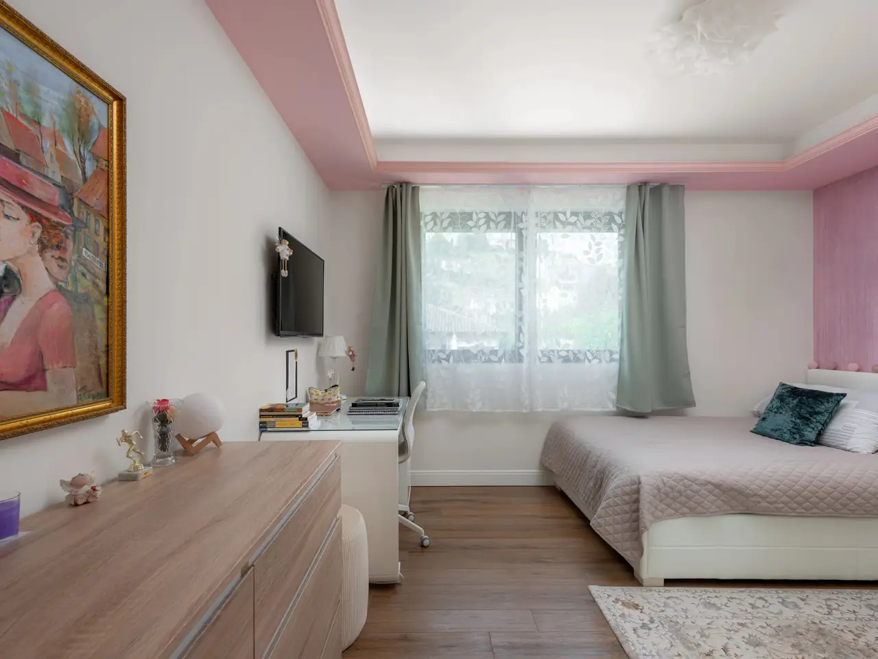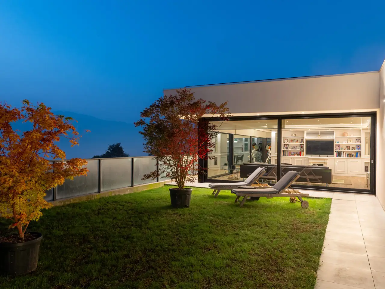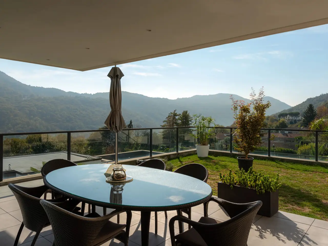 Nestled in the heart of Collina d'Oro, just a short walk from the prestigious TASIS International School, this residence embodies a rare blend of elegance, comfort, and natural light. Every space is designed to offer harmony with the surrounding landscape, combining privacy, wellness, and refined living.On the ground floor, a spacious and elegant entrance hall with a guest bathroom leads to the main living area, where the living and dining rooms open directly into the garden through large windows, bathing the interiors in light and offering a splendid view, the perfect setting for family gatherings or serene evenings with friends.The kitchen, fully equipped and featuring a generous central island, serves as the heart of the home. Ideal for family breakfasts or informal moments, it offers ample space for a dining table of six, leaving the main dining area for special occasions. A convenient dumbwaiter connects the lower level, making it easy to transport groceries and beverages.The same floor hosts two bedrooms, each with its own en-suite bathroom, and a versatile hobby room perfect for use as a playroom, or creative space. The master bedroom, bright and spacious, includes a bathroom with a bathtub and direct access to the garden, while an adjoining study with wardrobe and private bathroom provides an ideal retreat for work or reading.As you move towards the lower level, a stunning original sculpture by Nag Arnoldi, valued at approximately CHF 300,000, graces the stairway landing, adding a unique artistic touch that enhances the property's sophistication and character.The lower floor opens to a true wellness sanctuary. The indoor heated pool with direct garden access and shower area invites relaxation in a bright, serene atmosphere. The fitness room, separated by a long glass wall, allows one to exercise while overlooking the pool, and the SPA area with sauna, steam bath, and whirlpool offers a private haven for body and mind.This level also features a self-contained apartment with living room, kitchen, bedroom, and bathroom, perfect for guests or staff, as well as a private cinema room for exclusive entertainment. Service areas such as a laundry room, technical space with structured cabling, and an internal garage complete the lower floor.Surrounded by the lush landscape of Collina d'Oro, the property offers a lifestyle immersed in nature, culture, and tranquility. Picturesque walking trails, fine dining, and cultural landmarks such as the Hermann Hesse Museum in Montagnola create a setting where leisure, sophistication, and well-being merge seamlessly.Living here means embracing a life where nature, art, and elegance coexist in perfect harmony, with the convenience of TASIS just a few minutes away and the refined quality of life that defines the Ticino region.