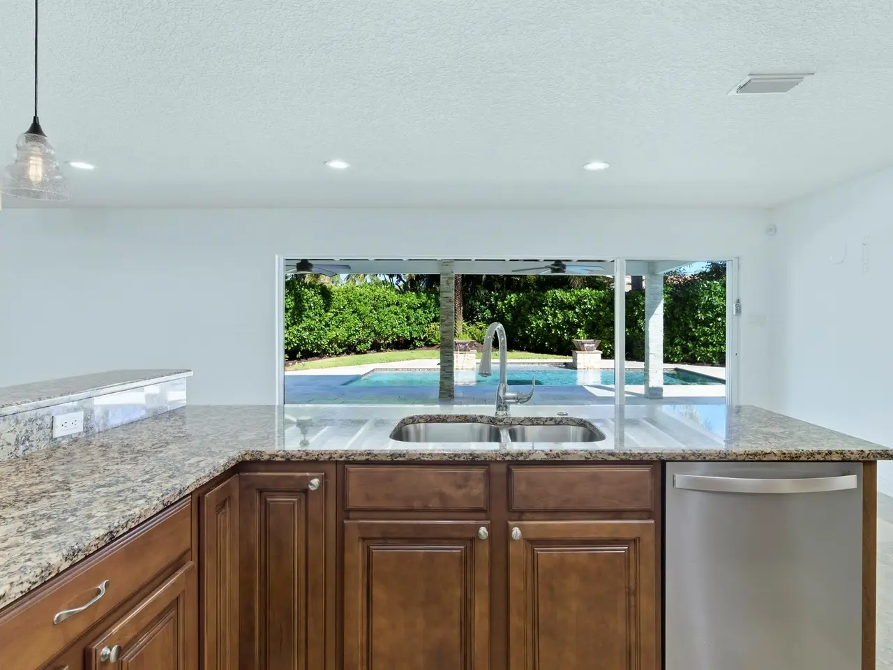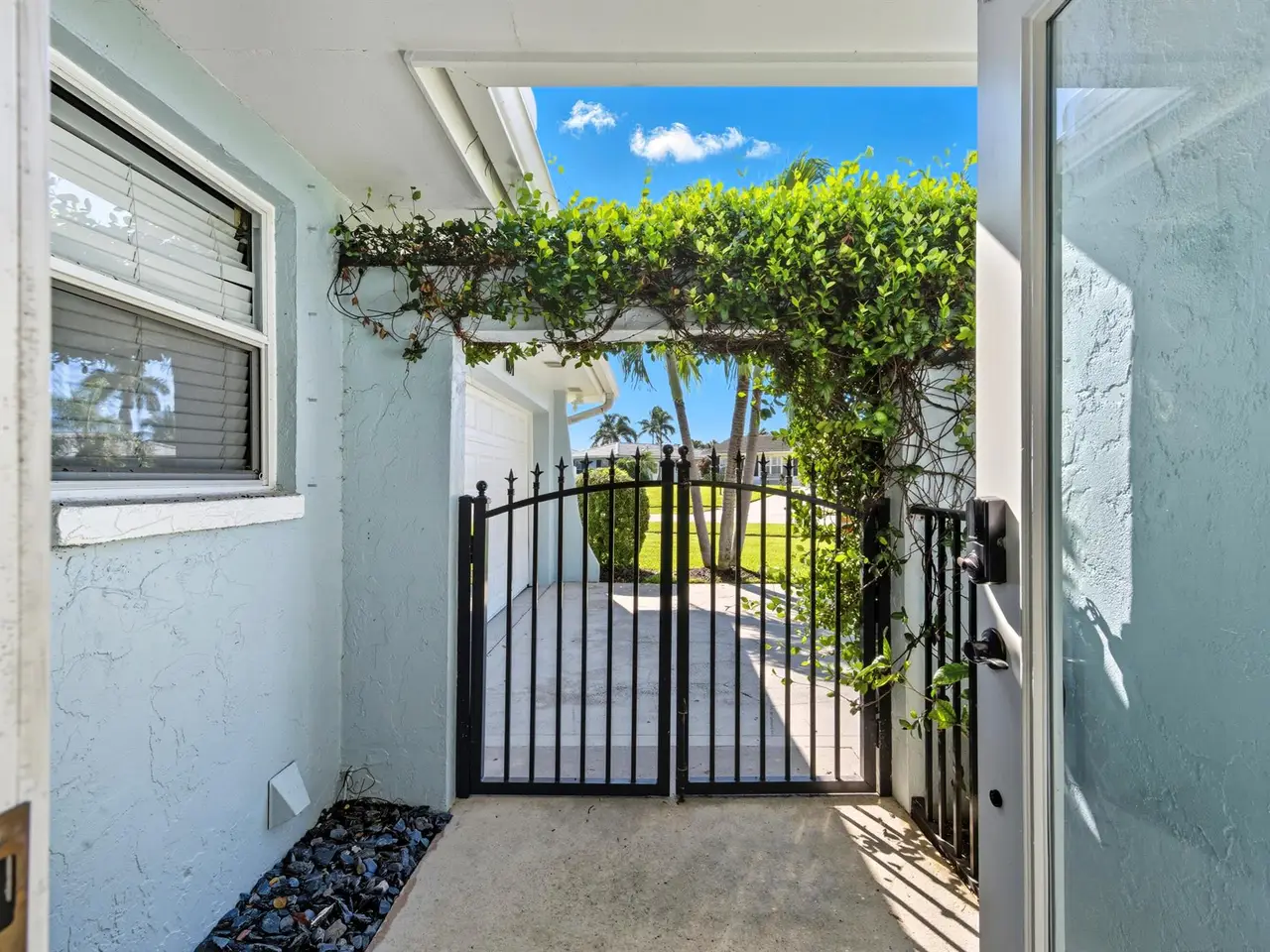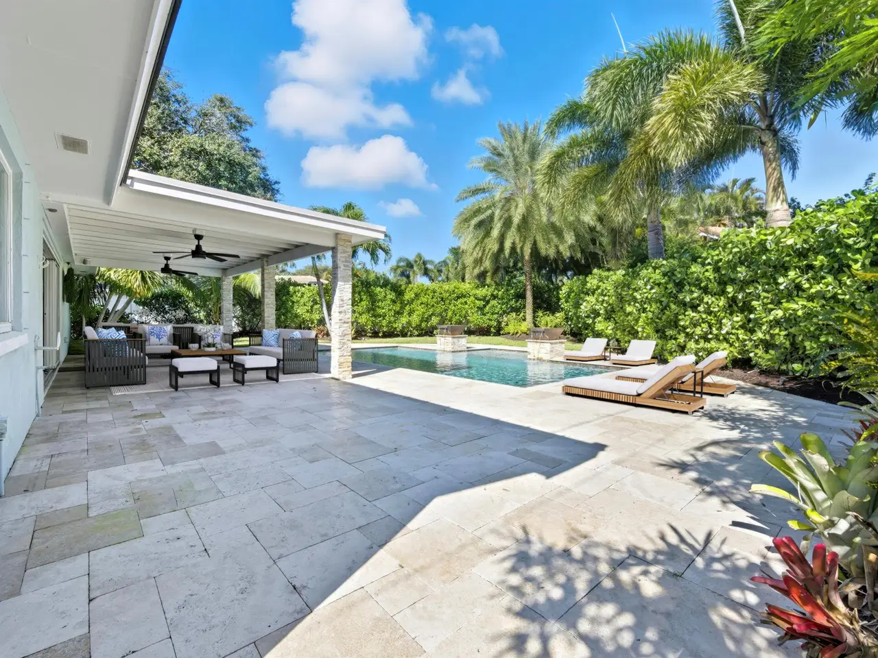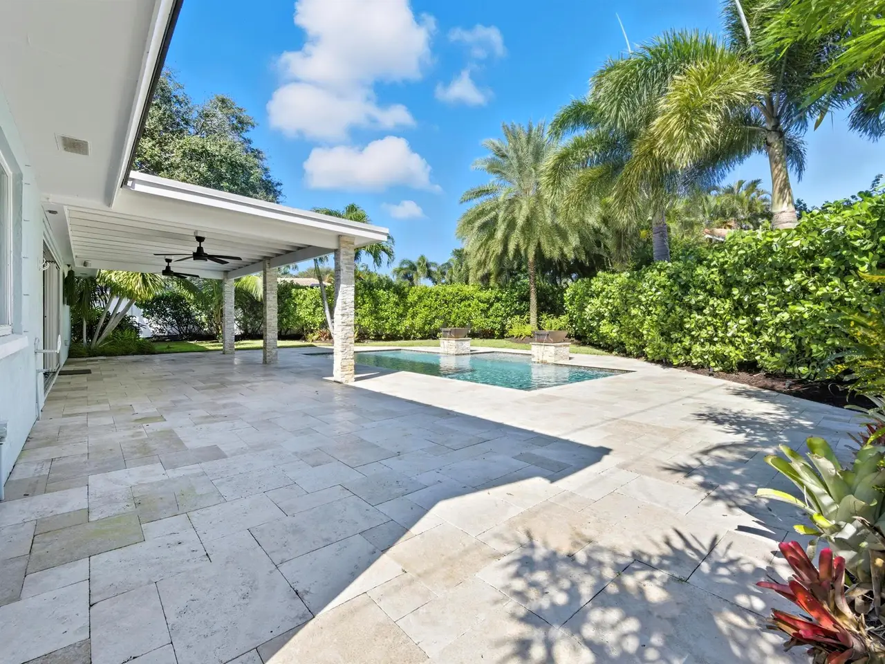 Framed by lush Calusa hedges for privacy