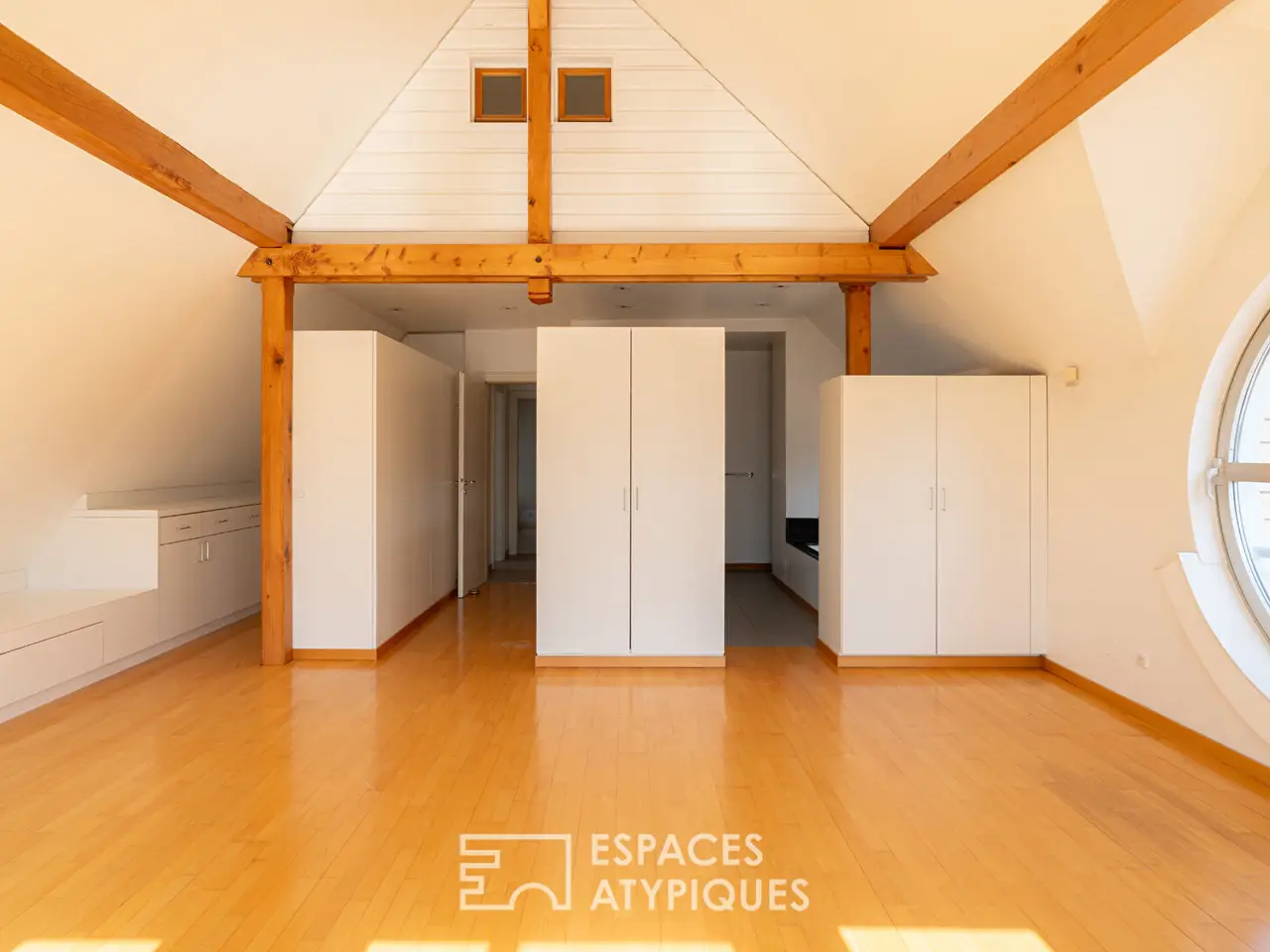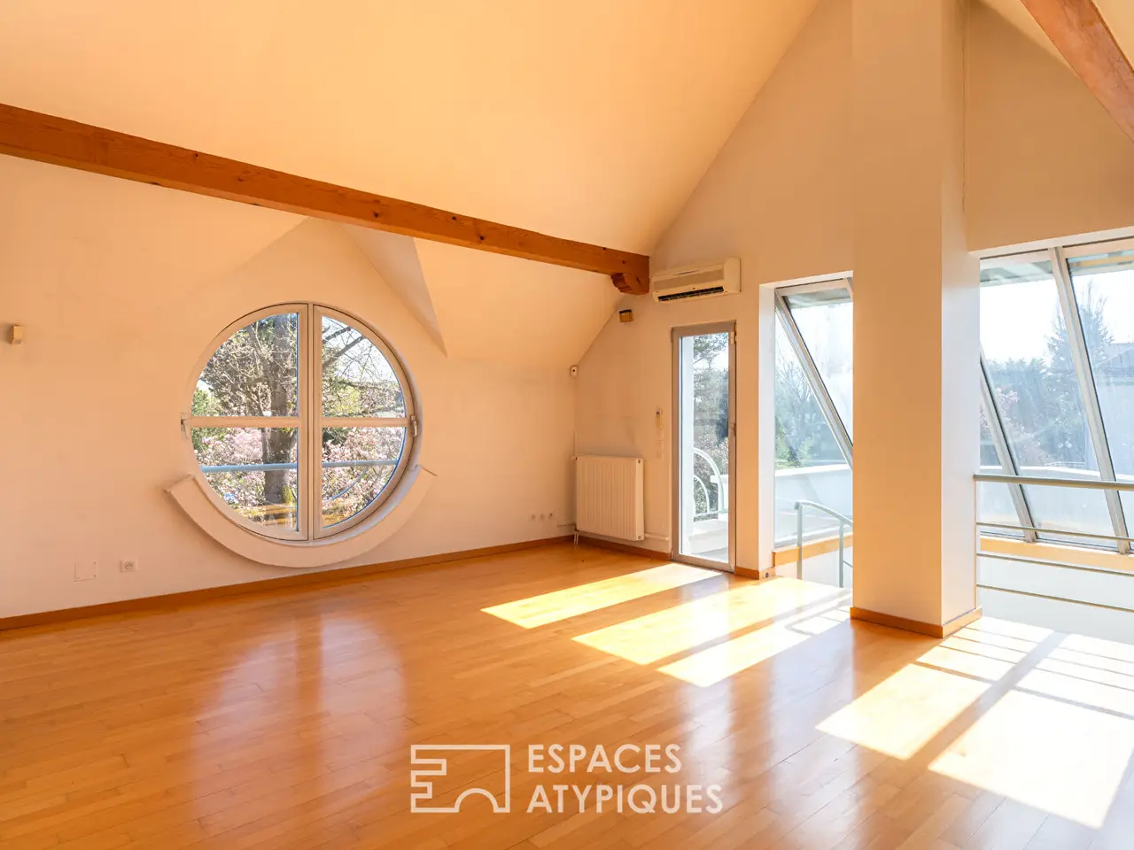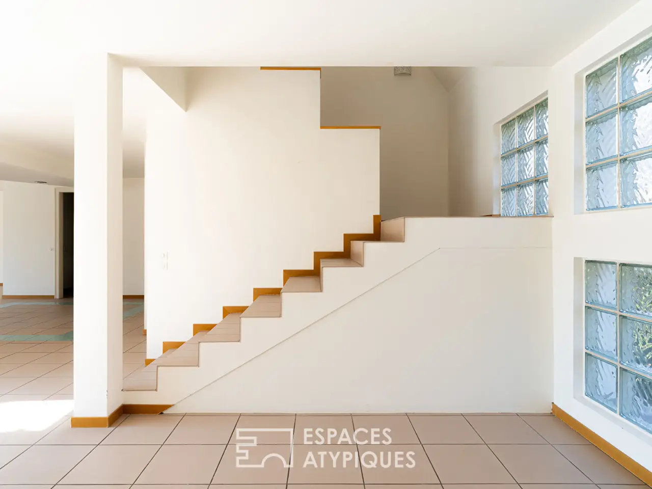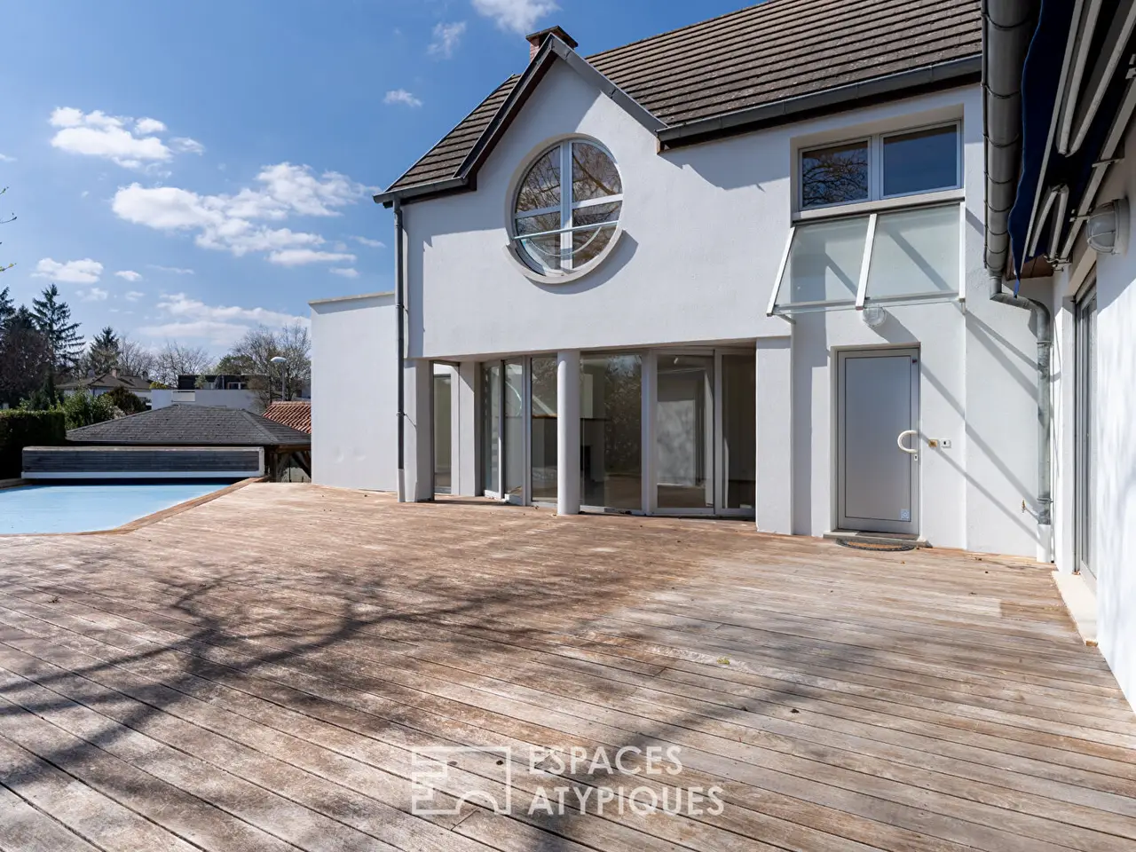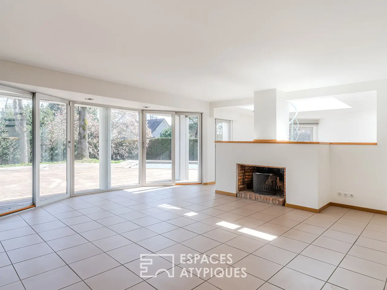 Situated in the heart of a peaceful lane, this 1989 architect-designed house spans 224 m2 on 6.73 acres of land. Its contemporary architecture and generous volumes are enhanced by a lovely terrace, a heated swimming pool and quality features. From the moment you enter, the space unfolds into a vast living room bathed in light, with a fireplace and direct access to the terrace. The semi-open, fully-equipped kitchen combines practicality and conviviality. A first bedroom with storage and a study area with access to the terrace complete this level. The staircase leads to the night space, where a corridor leads to a spacious air-conditioned master suite with custom-made dressing room, en suite bathroom with shower and access to a private terrace. Two further large bedrooms and a bathroom complete this floor. The basement, which is semi-buried and has windows, offers a host of functions: a double garage, a boiler room, a large shower room, a cellar and a vast additional space of over 55 m2, ideal for creating an independent studio or a games room. The carefully landscaped garden, with its swimming pool and lovely terrace, is a haven of peace. The carport and large garage make parking easy and secure. Ideally located, this house is close to shops, schools and public transport, making everyday life easier and offering a peaceful setting. Combining contemporary architecture, generous volumes and quality fixtures and fittings, this property will appeal to lovers of exceptional places in search of a privileged environment. Shops 4 minutes' drive away Schools 4 minutes' drive away Bus 1 minute's walk away REF. 1509 Additional information * 7 rooms * 5 bedrooms * 3 bathrooms * Outdoor space : 673 SQM * Parking : 3 parking spaces * Property tax : 4 322 € Energy Performance Certificate Primary energy consumption d : 164 kWh/m2.year High performance housing