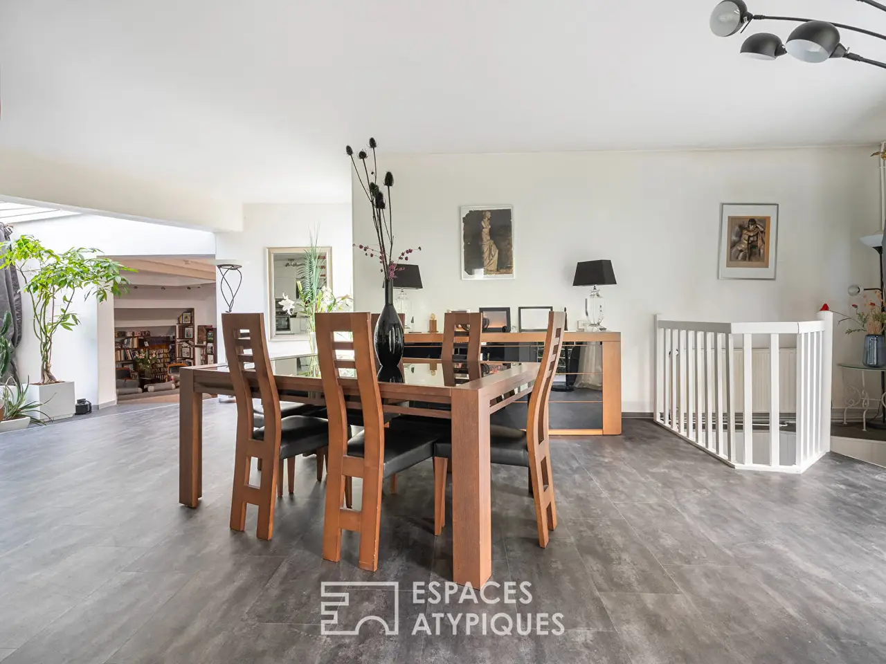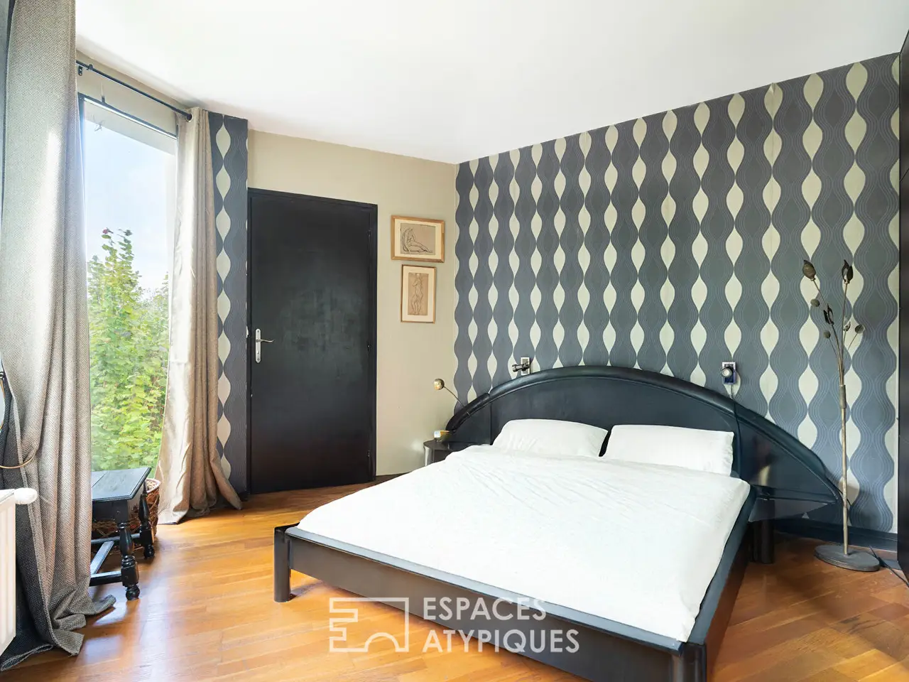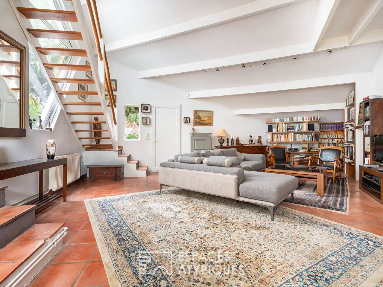 In the peaceful Halage district of Creteil, just minutes from the banks of the Marne, a 155 sqm (202 sqm floor area) architect-designed house nestles in the heart of a wooded plot of over 800 sqm. Its pure lines and constant openness to the outdoors make it a rare and unique property.Upon entering, a vast living room with clean lines extends into a clear view of the garden. The warm and elegant library corner invites you to an intimate and relaxing moment.A few steps lead to the dining room and the open kitchen, functional and convivial. The different spaces, bathed in natural light, blur the boundaries between interior and garden, and highlight the atypical atmosphere of the place.The interior layout holds some nice surprises: a first staircase leads to a separate master suite with a shower room and toilet, while a wooden spiral staircase, a true signature, distributes three bedrooms and a refined shower room.Outside, three terraces, each arranged around the house, allow for a variety of atmospheres. The garden, rich in plant species and punctuated by palm trees, creates an exotic and private setting, a veritable green setting in the heart of the city.The basement houses a laundry room, cellar, and functional storage. A double carport completes the ensemble.The serenity of the neighborhood is combined with the proximity of amenities: shops and schools are a ten-minute walk away, and the RER A from Saint-Maur Creteil is less than ten minutes away.A prestigious address for a unique living environment and a rare property where architecture and nature come together to offer a lifestyle imbued with gentleness and elegance.RER Saint-Maur Creteil: 10 minutes on footShops: 10 minutes on foot (Creteil village 20 minutes on foot)Schools: 10 minutes on footENERGY CLASS: D CLIMATE CLASS: D Estimated average amount of annual energy expenditure for standard use, indexed to the years 2021, 2022, 2023: between EUR3,170 and EUR4,360 (subscription included).REF. 12490Additional information* 6 rooms* 4 bedrooms* 2 shower rooms* Floor : 1* 1 floor in the building* Outdoor space : 811 SQM* Parking : 2 parking spaces* Property tax : 3 245 €Energy Performance CertificatePrimary energy consumptiond : 234 kWh/m2.yearHigh performance housing*A*B*C*234kWh/m2.year48*kg CO2/m2.yearD*E*F*GExtremely poor housing performance* Of which greenhouse gas emissionsd : 48 kg CO2/m2.yearLow CO2 emissions*A*B*C*48kg CO2/m2.yearD*E*F*GVery high CO2 emissionsEstimated average annual energy costs for standard use, indexed to specific years 2021, 2022, 2023 : between 3170 € and 4360 € Subscription IncludedAgency feesThe fees include VAT and are payable by the vendorMediatorMediation Franchise-Consommateurswww.mediation-franchise.com29 Boulevard de Courcelles 75008 ParisInformation on the risks to which this property is exposed is available on the Geohazards website : www.georisques.gouv.fr
