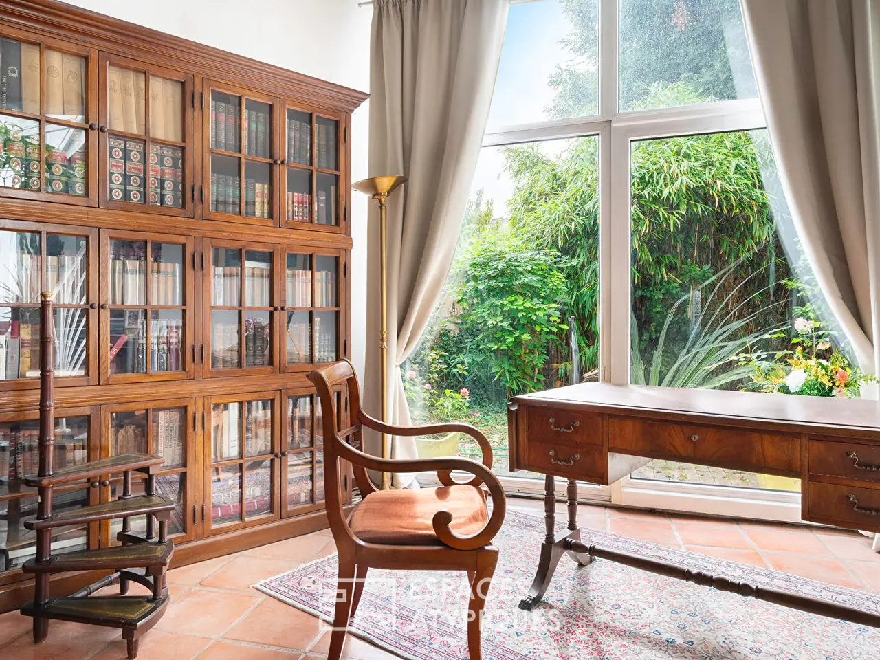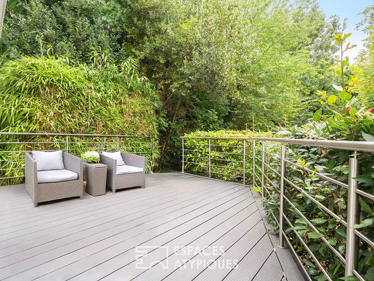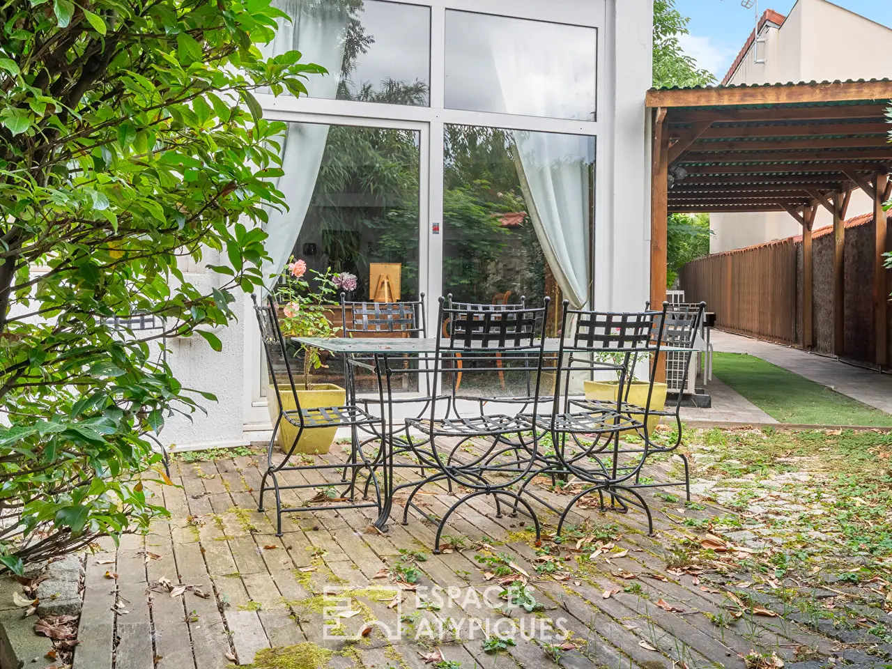 In the peaceful Halage district of Creteil, just minutes from the banks of the Marne, a 155 sqm (202 sqm floor area) architect-designed house nestles in the heart of a wooded plot of over 800 sqm. Its pure lines and constant openness to the outdoors make it a rare and unique property.Upon entering, a vast living room with clean lines extends into a clear view of the garden. The warm and elegant library corner invites you to an intimate and relaxing moment.A few steps lead to the dining room and the open kitchen, functional and convivial. The different spaces, bathed in natural light, blur the boundaries between interior and garden, and highlight the atypical atmosphere of the place.The interior layout holds some nice surprises: a first staircase leads to a separate master suite with a shower room and toilet, while a wooden spiral staircase, a true signature, distributes three bedrooms and a refined shower room.Outside, three terraces, each arranged around the house, allow for a variety of atmospheres. The garden, rich in plant species and punctuated by palm trees, creates an exotic and private setting, a veritable green setting in the heart of the city.The basement houses a laundry room, cellar, and functional storage. A double carport completes the ensemble.The serenity of the neighborhood is combined with the proximity of amenities: shops and schools are a ten-minute walk away, and the RER A from Saint-Maur Creteil is less than ten minutes away.A prestigious address for a unique living environment and a rare property where architecture and nature come together to offer a lifestyle imbued with gentleness and elegance.RER Saint-Maur Creteil: 10 minutes on footShops: 10 minutes on foot (Creteil village 20 minutes on foot)Schools: 10 minutes on footENERGY CLASS: D CLIMATE CLASS: D Estimated average amount of annual energy expenditure for standard use, indexed to the years 2021, 2022, 2023: between EUR3,170 and EUR4,360 (subscription included).REF. 12490Additional information* 6 rooms* 4 bedrooms* 2 shower rooms* Floor : 1* 1 floor in the building* Outdoor space : 811 SQM* Parking : 2 parking spaces* Property tax : 3 245 €Energy Performance CertificatePrimary energy consumptiond : 234 kWh/m2.yearHigh performance housing*A*B*C*234kWh/m2.year48*kg CO2/m2.yearD*E*F*GExtremely poor housing performance* Of which greenhouse gas emissionsd : 48 kg CO2/m2.yearLow CO2 emissions*A*B*C*48kg CO2/m2.yearD*E*F*GVery high CO2 emissionsEstimated average annual energy costs for standard use, indexed to specific years 2021, 2022, 2023 : between 3170 € and 4360 € Subscription IncludedAgency feesThe fees include VAT and are payable by the vendorMediatorMediation Franchise-Consommateurswww.mediation-franchise.com29 Boulevard de Courcelles 75008 ParisInformation on the risks to which this property is exposed is available on the Geohazards website : www.georisques.gouv.fr