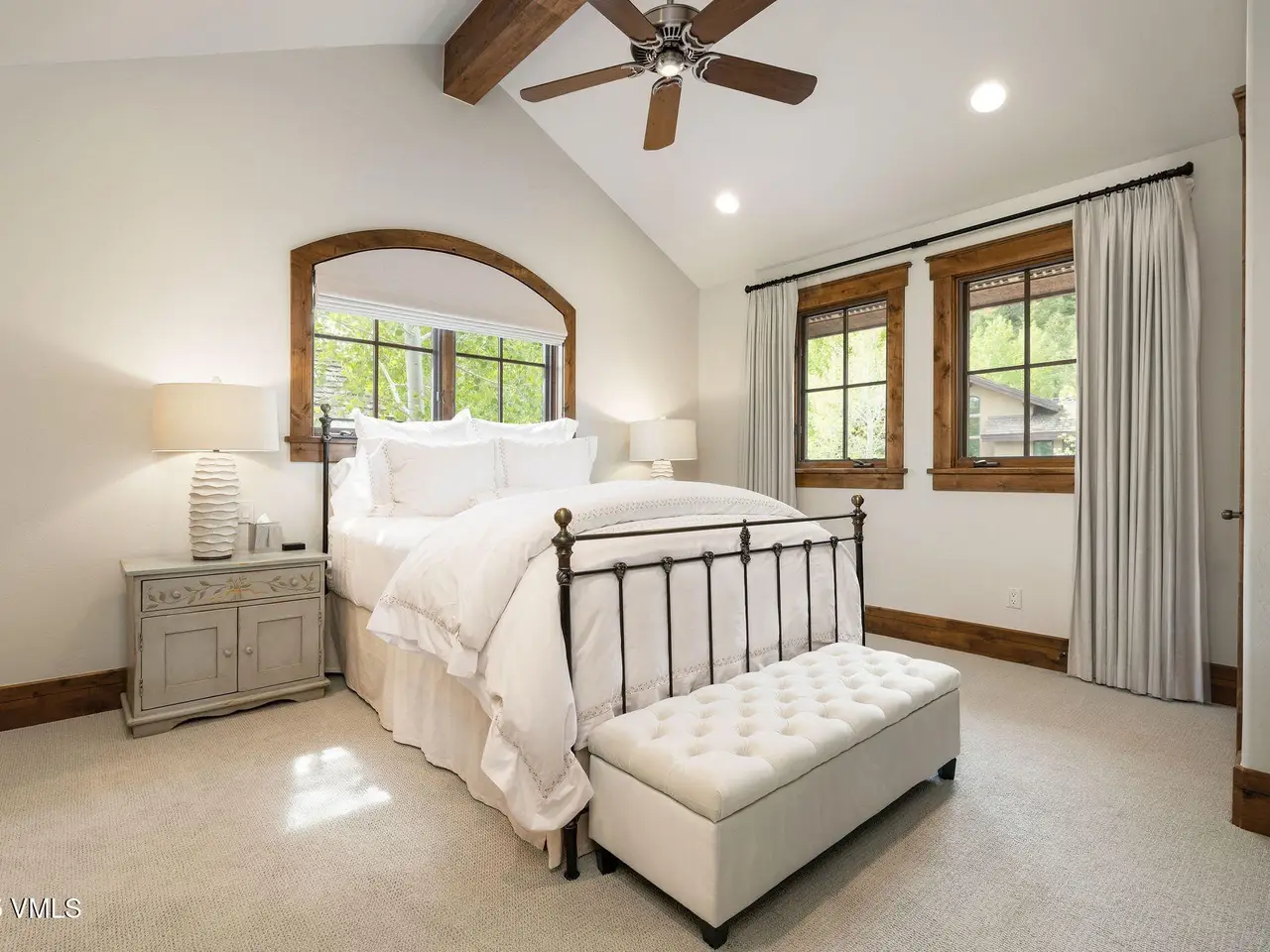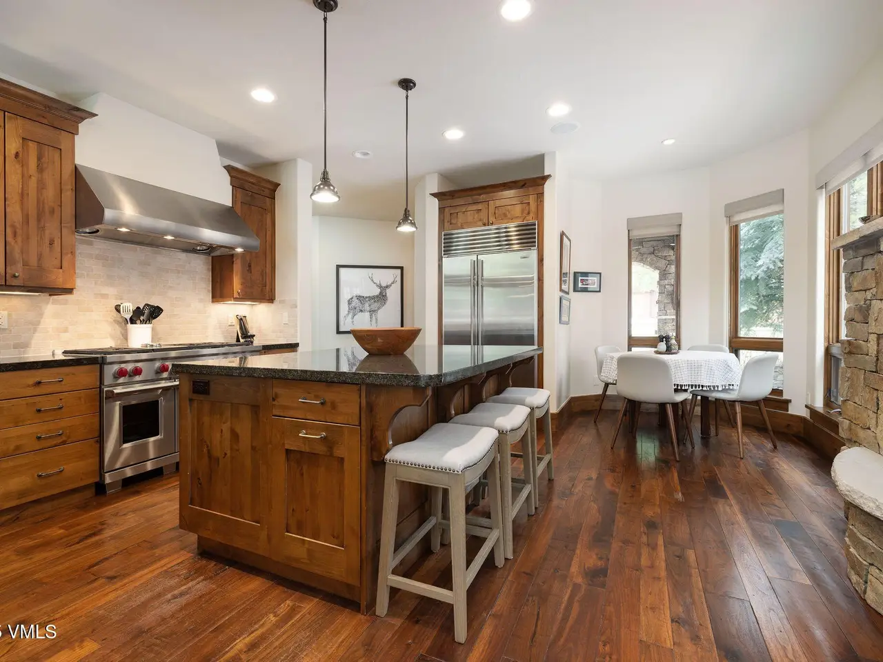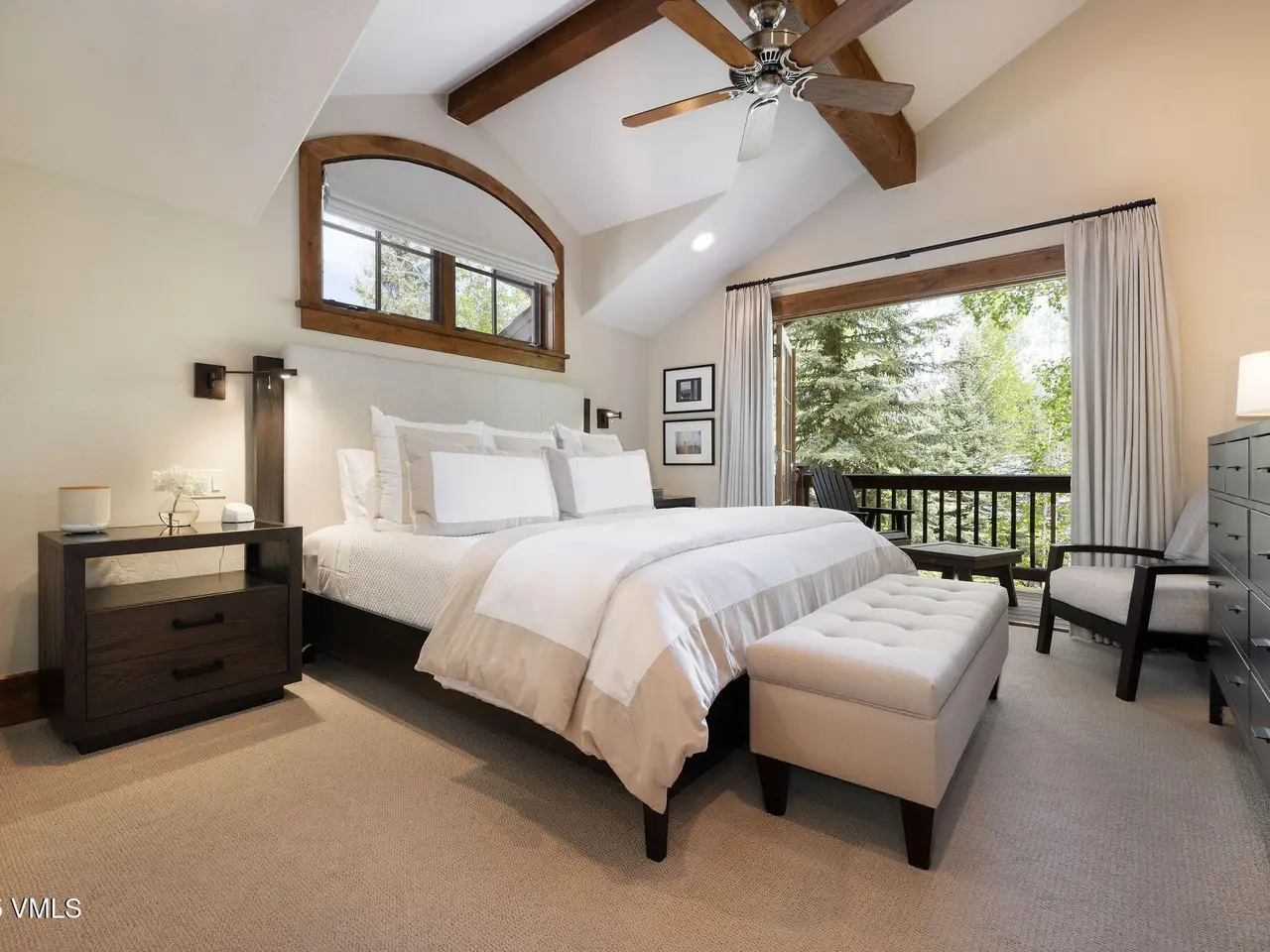 Great opportunity to own a stunning home in the intimate Mountain Retreat enclave in the exclusive gated community of Arrowhead Village. This single-family home is conveniently located just steps away from the Arrowhead Bahn Ski Lift, Country Club of the Rockies and the well-touted Vista Restaurant. The property has been beautifully updated with stylish furniture and furnishings throughout. The main level boasts high vaulted ceilings with grand wood beams, elegant hardwood floors and a dry stack limestone gas fireplace. It also features a private office, large chef's kitchen with an island, breakfast nook with additional gas fireplace and bar seating. The open dining room provides access to the front deck, which is perfect for entertaining with its built-in gas fireplace and private hot tub. The upper level includes a library room with a daybed and three well-appointed, attractive bedrooms, all with cathedral ceilings, each with ensuite bathrooms. The primary bedroom is a luxurious retreat featuring a large steam shower, soaking tub, walk-in closet, and a Juliet balcony. The lower level is comfortable and cozy featuring a spacious family room with a gas fireplace, pool table, full bar with a climate-controlled wine closet and movie theater room. Additionally, this level includes three guest bedrooms with ensuite bathrooms and a laundry room. Perfect summer retreat with air conditioning; 2-car garage. Residence is being sold thoughtfully fully furnished.