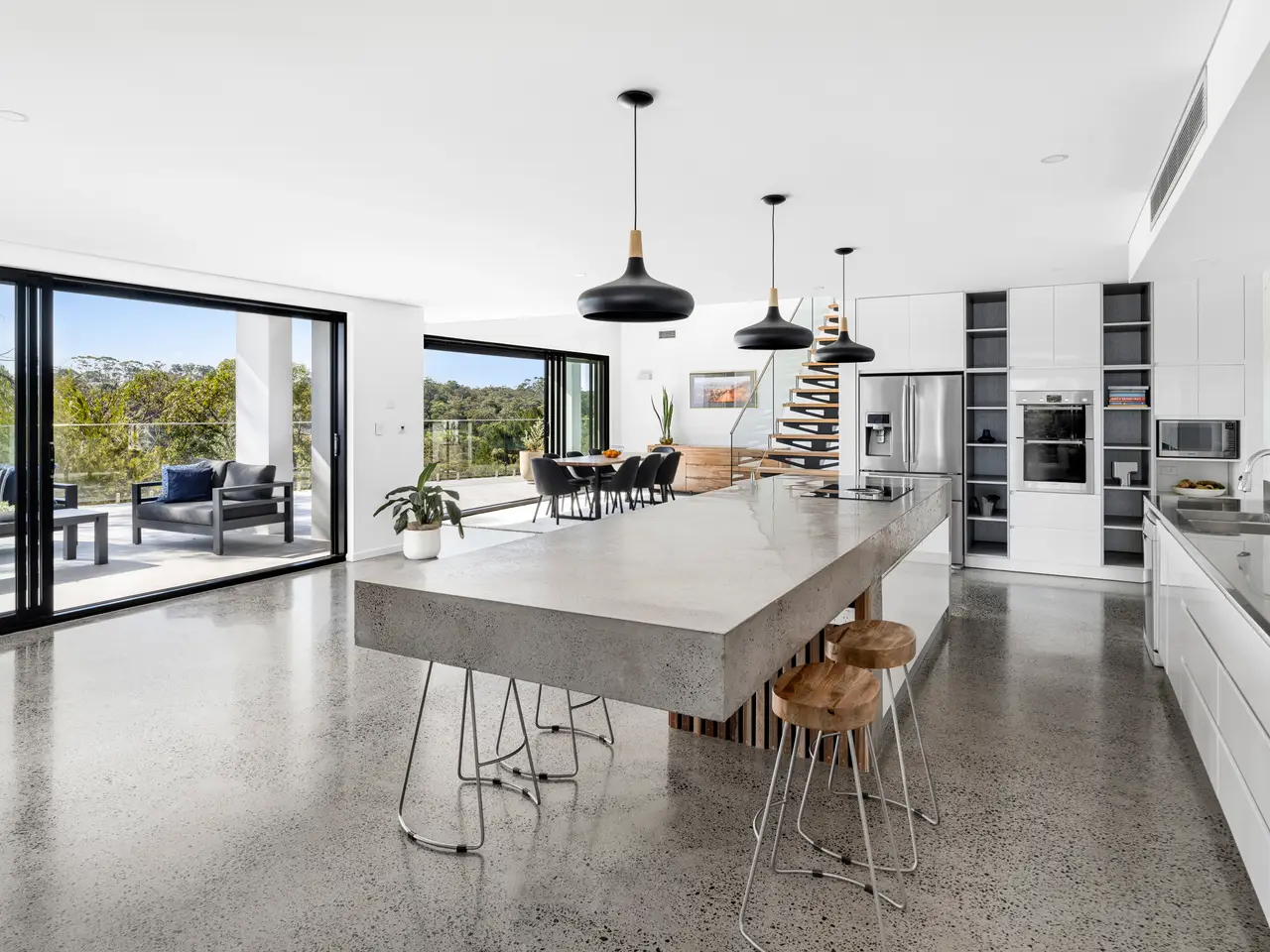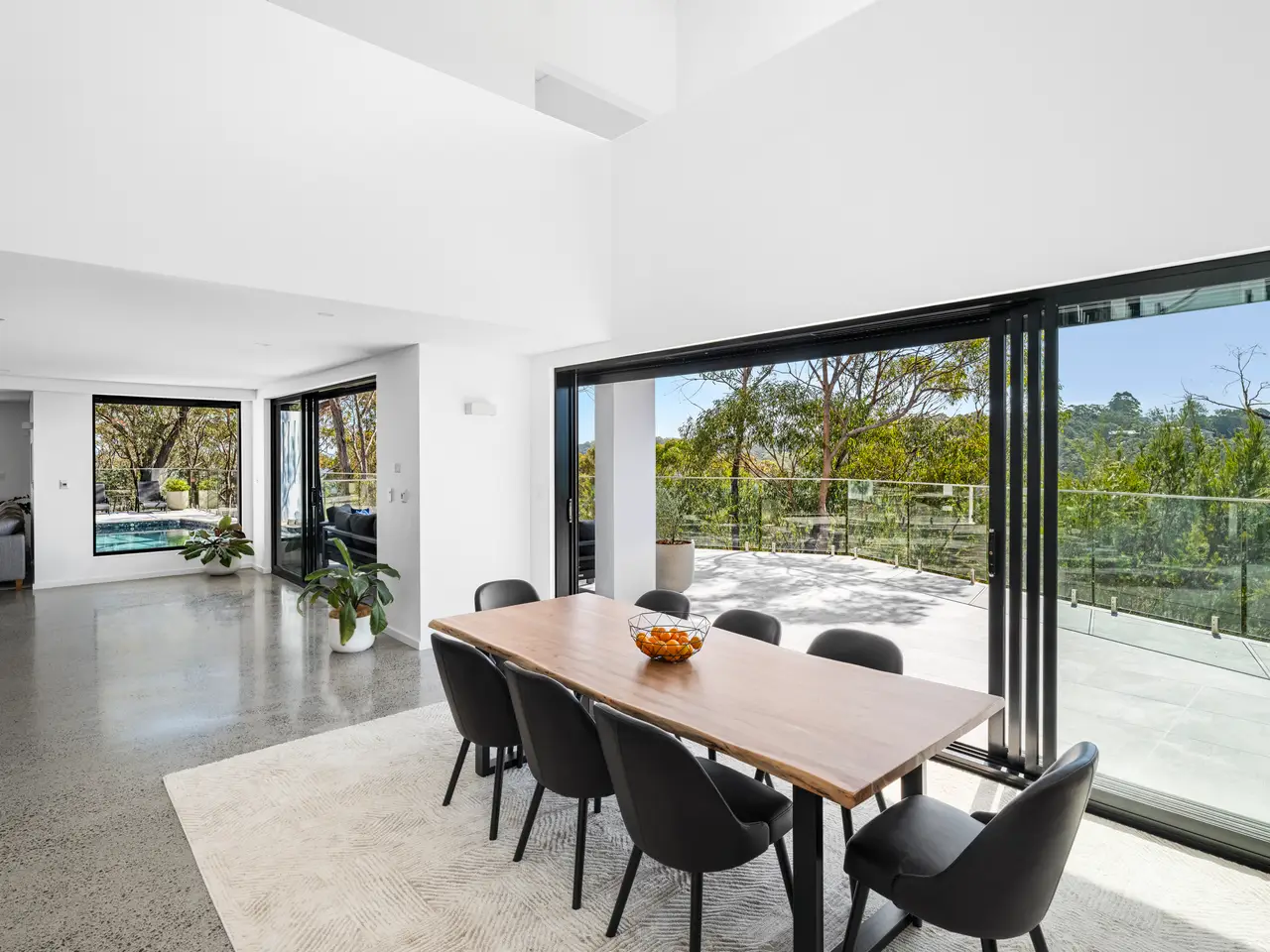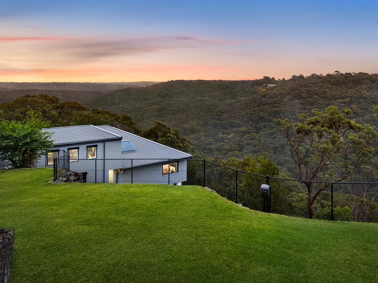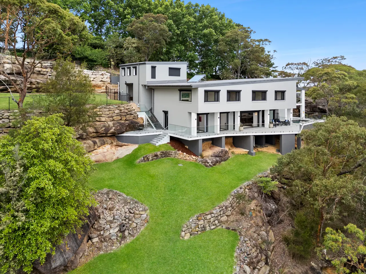 Architecturally designed and furnished with every imaginable luxury, this master built designer home offers a rare, exclusive escape just 30 minutes from the city. Thoughtfully created to blend seamlessly with its natural bushland surroundings, it features earthy stone finishes and expansive retractable glass walls that blur the boundaries between indoor and outdoor living. The home boasts spacious open-plan interiors, expansive sun-drenched terraces-both covered and open-and a sparkling pool. Positioned at the end of a cul-de-sac on five acres of terraced lawns and native bushland, with rugged rock formations, this serene and private setting is just minutes from schools, village shops, beaches, marinas, and Sydney's CBD. Masterfully constructed with the highest quality materials, including solid double-brick walls, toughened glass, and heated polished concrete floors, the residence is accessed through a striking mezzanine-style foyer that overlooks the living areas and frames sweeping views of the surrounding bushland. The lower level is dominated by expansive open-plan living spaces, including a family room that opens onto a covered terrace, a home theatre with a projector and screen, casual living spaces, and a dining room under a soaring double-height ceiling that opens onto a large sunlit poolside terrace with panoramic views of the bushland. At the heart of the home, the kitchen is both sophisticated and earthy, centered around a large polished concrete island. It features stainless steel countertops, premium European appliances, and a walk-in pantry. The generously sized bedrooms include a palatial master suite with a walk-in robe, dressing room, and stunning en suite. There's also a home office with an adjoining sitting room, and each bathroom is tiled floor-to-ceiling, finished with imported stone, and illuminated with mood lighting. Meticulously built to flame zone standards, the home includes two separate remote-controlled double lock-up garages, automatic shutters on all windows, toughened glass, high shadow-line ceilings, and ducted air conditioning. Surrounded by native bushland and abundant wildlife, including kangaroos, wallabies, cockatoos, lorikeets, and kookaburras, this home offers a luxurious, relaxed sanctuary in a secluded yet conveniently located setting.