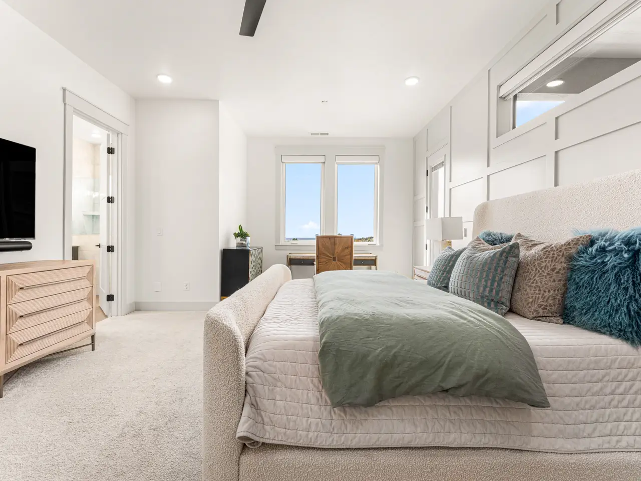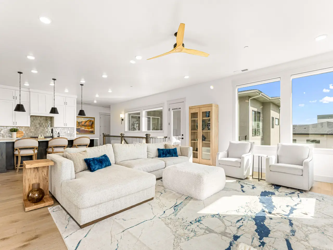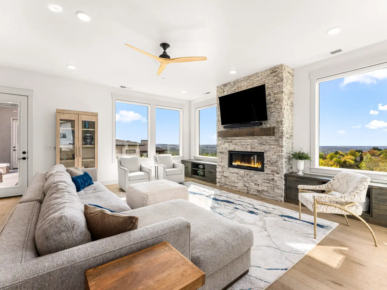 Perched on an exclusive rim-view lot in Boulder Point, this one-owner residence captures sweeping views from Table Rock to Downtown! Designed to live like a single level, the home features a walk-out lower level and a layout that seamlessly blends indoor and outdoor living. The grand foyer opens to an expansive great room with 11’ ceilings, hardwood floors, & walls of windows. The kitchen showcases floor-to-ceiling cabinetry, marbled quartz countertops, and a suite of built-in Wolf & Sub-Zero appliances. The main-level master offers private balcony access & a spa-inspired en suite bath. A fabulous guest suite completes the main level. The walk-out lower level expands the living space with a generous bonus room, additional bedrooms, & direct access to a flat lawn - perfectly suited for a future pool. Additional upgrades include Hunter Douglas automatic blinds, and an invisible pet fence. Residents enjoy access to a clubhouse, swimming pool, neighborhood trails and the best of Boise living!