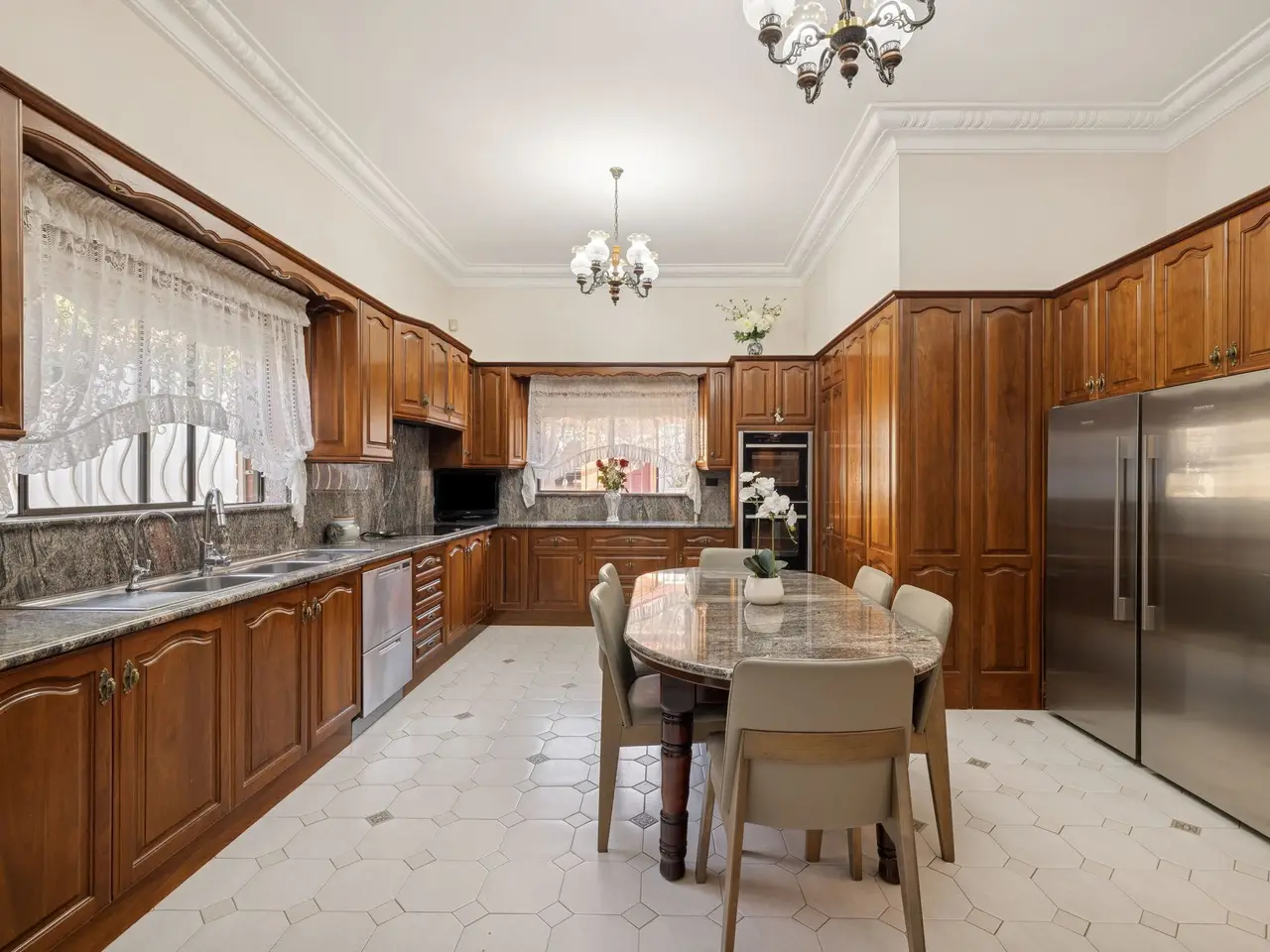 Set on a beautiful landscaped setting with a north-facing aspect, this residence presents an exceptional opportunity within one of Burwood's most tightly held pockets. It reveals a versatile tri-level design with a choice of living and dining zones, a rumpus with loft-style ceilings, and five double bedrooms, including a master retreat. Brimming with original charm, retro accents and timeless detailing, it presents outstanding potential to renovate, enhance or create a long-term family residence. Centrally located just 1km to Burwood Station and 1.2km to Strathfield Plaza, it offers unrivalled access to two of Sydney's most convenient lifestyle hubs. Local schools, parks, transportation and shops is just a short walk away. - Custom built double brick, timeless family home, designed and built to last forever - Expansive formal living room with high ceilings, detailed & custom painted cornices - Classic hallway with domed archways and Tuscan features/detailing - Collection of living areas includes a private lounge and an upstairs family room - Expansive rumpus with loft-style ceilings, windows and air-conditioning for comfort - Three separate living zones - casual, formal and upper level rumpus room - Landscaped gardens with manicured hedges frame the front of the home beautifully - Large family kitchen with Granite countertops and European s/steel appliances - Five sun-washed, double bedrooms, master retreat complete with a private ensuite - Main bathroom reveals floor-to-ceiling tiles and a step-up bath, internal laundry - Air-conditioning, detailed cornices, original carpet, timber accents and gold detailing - Tandem garage on the lower ground floor offers internal access and storage space - Outstanding potential to renovate, enhance or create a future luxury estate (STCA) - Positioned between Burwood and Strathfield Stations with elite schooling nearby - Walk to an array of rapid city transport links, diverse dining, major shops and parks Future fortune: this property has no heritage or conservation restrictions and is also placed with in the LMR development zone - allowing a multitude of residential development possibilities (up to 4-6 levels) STCA.