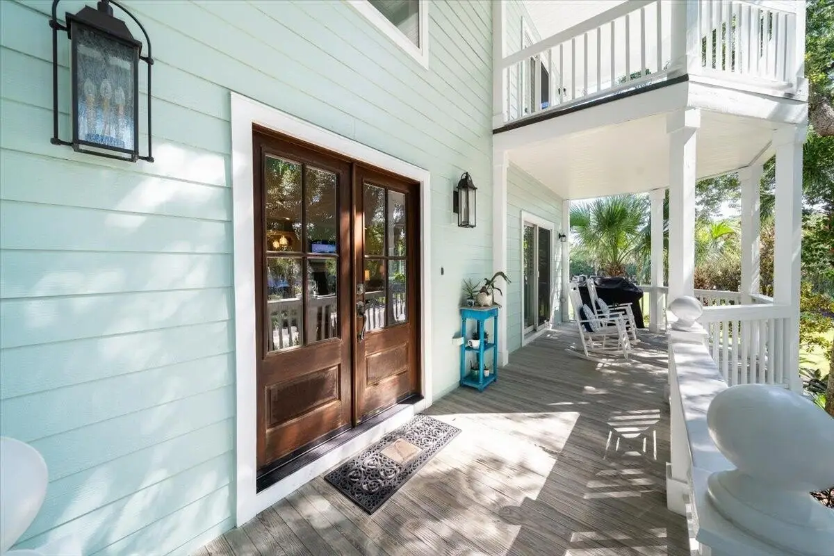 It's the best of both worlds! Island living in a Quintessential two story Charleston style home overlooking the 4th green of the famed ''Wild Dunes Links Course'' and yet only a short walk to the beach at the Isle of Palms. This meticulously maintained 4 bedroom-3 bath home has a bright open floorplan that flows seamlessly onto the porches, outside decks and balconies... Relax on the bed swing or rock the afternoon away listening to your favorite tunes and watch a great putt being made. Enjoy the view of marsh wildlife and Herons perched in the live oaks along the lagoon. The remodeled kitchen has abundant custom cabinetry, granite counters, a center Island with Dacor gas cooktop/stove, the refrigerator (Kitchenaid), dishwasher, microwave, wine cooler are all stainless steel GEMonogram appliances and a central vacuum system. The living room has fireplace with gas logs (2020), built-in book shelves double sliding glass doors to the outside screened porch and deck area. Custom Detailed features throughout this home are: updated baths, hurricane film coated windows & doors, Plantation shutters, oak flooring, tiled baths, 9 ft ceilings, recessed lighting, ceiling fans, chandeliers, crown molding. Recent improvements: New roof (2021) complete exterior painting (2021)...new garage door/motor (2025), new propane tank (2025) both HVAC units (2023 & 2014) First floor has a bedroom that could be a second master with full bath, walk-in closet and a balcony overlooking the lagoon. Upstairs is the primary bedroom and bath with separate shower and soaking tub, his and her vanities and two walk-in closets. Sliding glass doors access the large private porch to enjoy the outdoors and cool breezes. Additionally, there are two guest bedrooms with a Jack & Jill full bath. One bedroom is currently being used as an office the other bedroom also has its own balcony to enjoy the outdoors. Professionally landscaped with Palmetto trees, sago palms, magnolia trees, ornamental shrubs and grasses accenting the Live oaks. Landscape lighting and zone irrigation system. Large two car garage with plenty of storage and room for a golf cart. There is also a cabana style shower to use when returning from the beach. Conveniently located to all the resort amenities: Property owners Beach house, onsite restaurants, two golf courses, tennis courts, fitness center, marina, bike, jogging trails and 2 ½ miles of beachfront shore line. It's a short drive to downtown Historic Charleston and easy access to the airport.