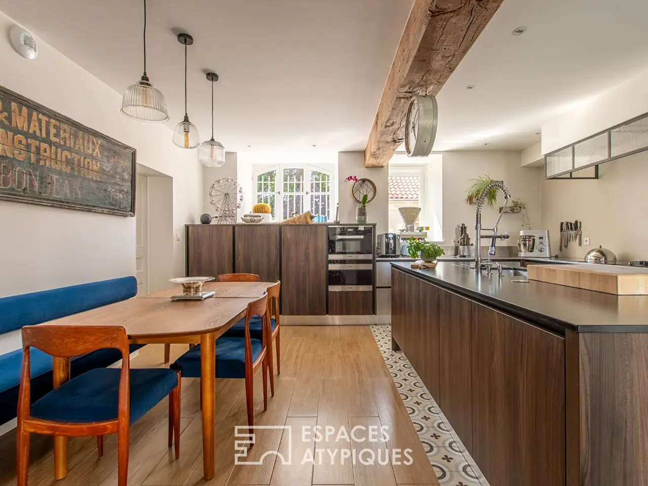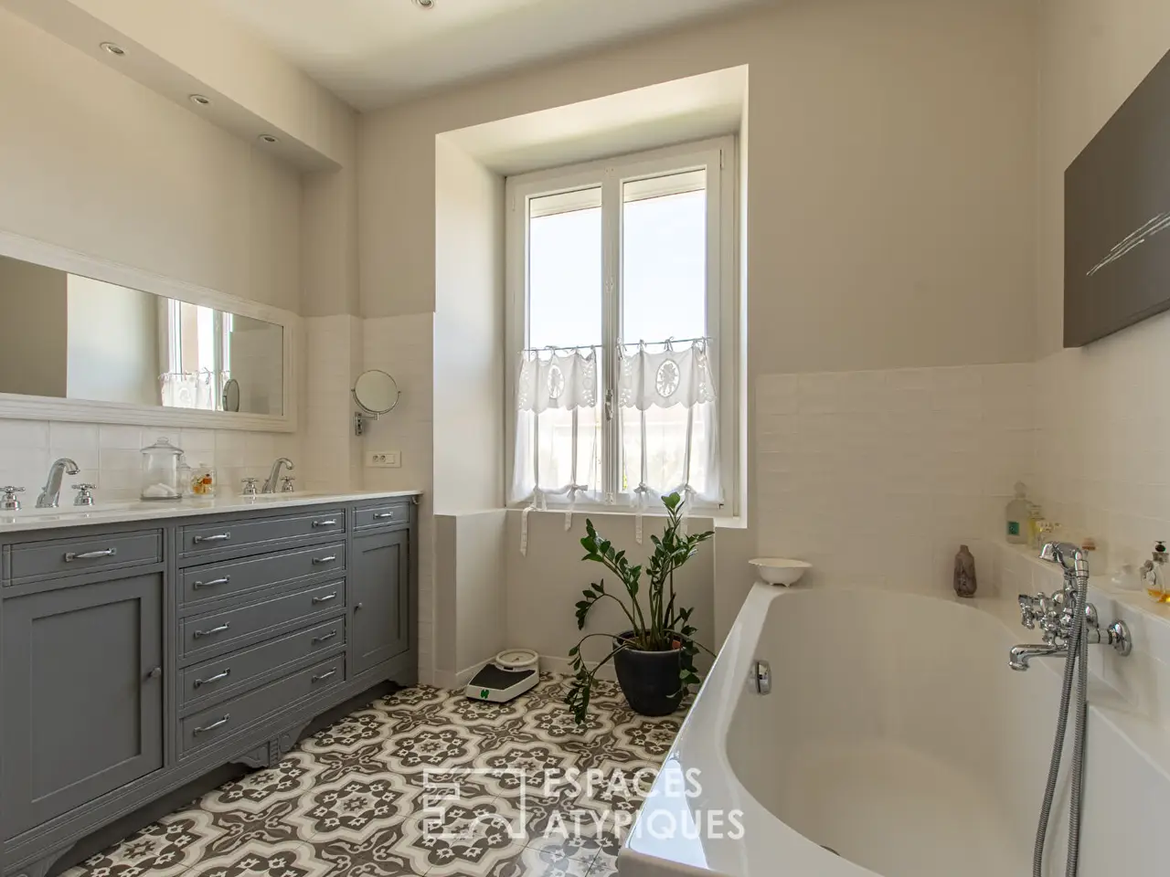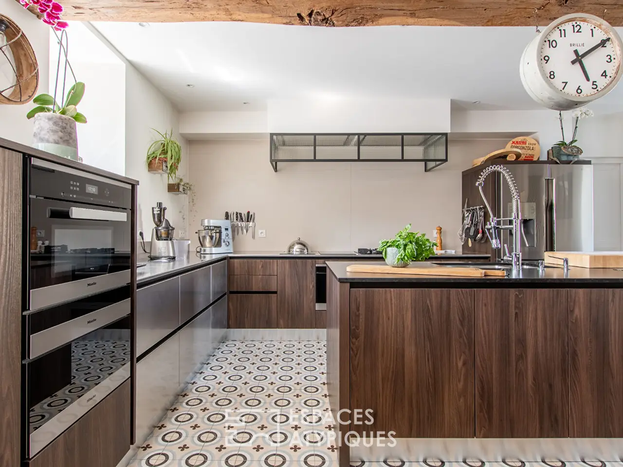 Nestled in a verdant setting, sheltered from view, this sumptuous 18th-century manor house is located in the very heart of Cholet. It unfolds its elegant architecture over 260 m2 of living space, set within a rare landscaped plot of over 1,400 m2. This prestigious residence is a true testament to refinement, combining charm, space, and authenticity to offer a unique living environment. This exceptional property consists of a main building and a stone outbuilding. The entrance hall reveals an interior where solid wood flooring, delicate moldings, sumptuous marble fireplaces, and generous ceiling heights blend harmoniously. On either side, a charming living room with a fireplace invites relaxation, and a refined dining room where every detail has been carefully considered. An independent semi-professional kitchen combines noble materials with contemporary design in a warm atmosphere, opening onto a pleasant terrace under a covered patio. A wooden staircase leads to the upper floor, comprising four spacious bedrooms, including a master suite with a walk-in closet and private bathroom, as well as two additional shower rooms. An 80 m2 outbuilding currently houses a large office with exposed beams, a valuable asset for this estate. The property also includes three covered garages and several outdoor parking spaces. The entire ensemble is enhanced by a landscaped, tree-filled garden, a heated swimming pool, and an orangery?elements that invite wonder and escape. This property captivates with its authenticity, comfort, and generous volumes, all orchestrated with care in a bucolic setting, just steps from the amenities of the town center. Only 5 minutes from the train station, 50 minutes from Angers and Nantes, and 1 hour and 10 minutes from Les Sables-d'Olonne. REF. CH4567 Additional information * 7 rooms * 4 bedrooms * 1 bathroom * 2 shower rooms * 1 floor in the building * Outdoor space : 1439 SQM * Parking : 3 parking spaces * Property tax : 4 504 € Energy Performance Certificate Primary energy consumption d : 163 kWh/m2.year High performance housing