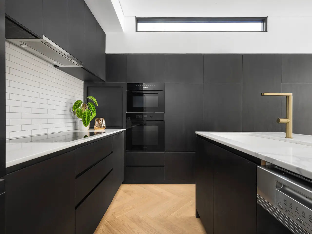 • Calacatta quartz kitchen, full suite of Miele appliances