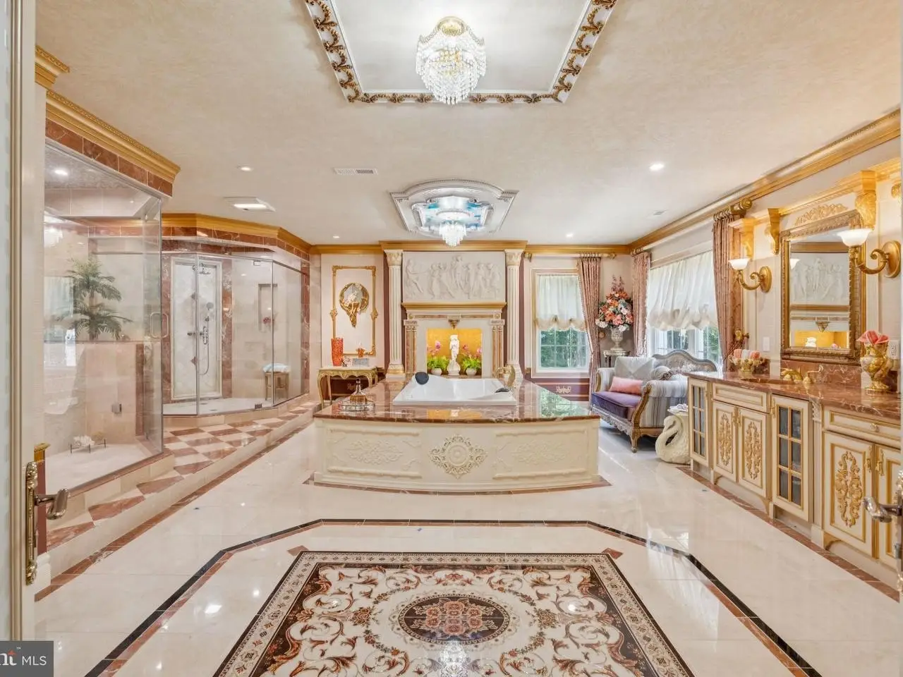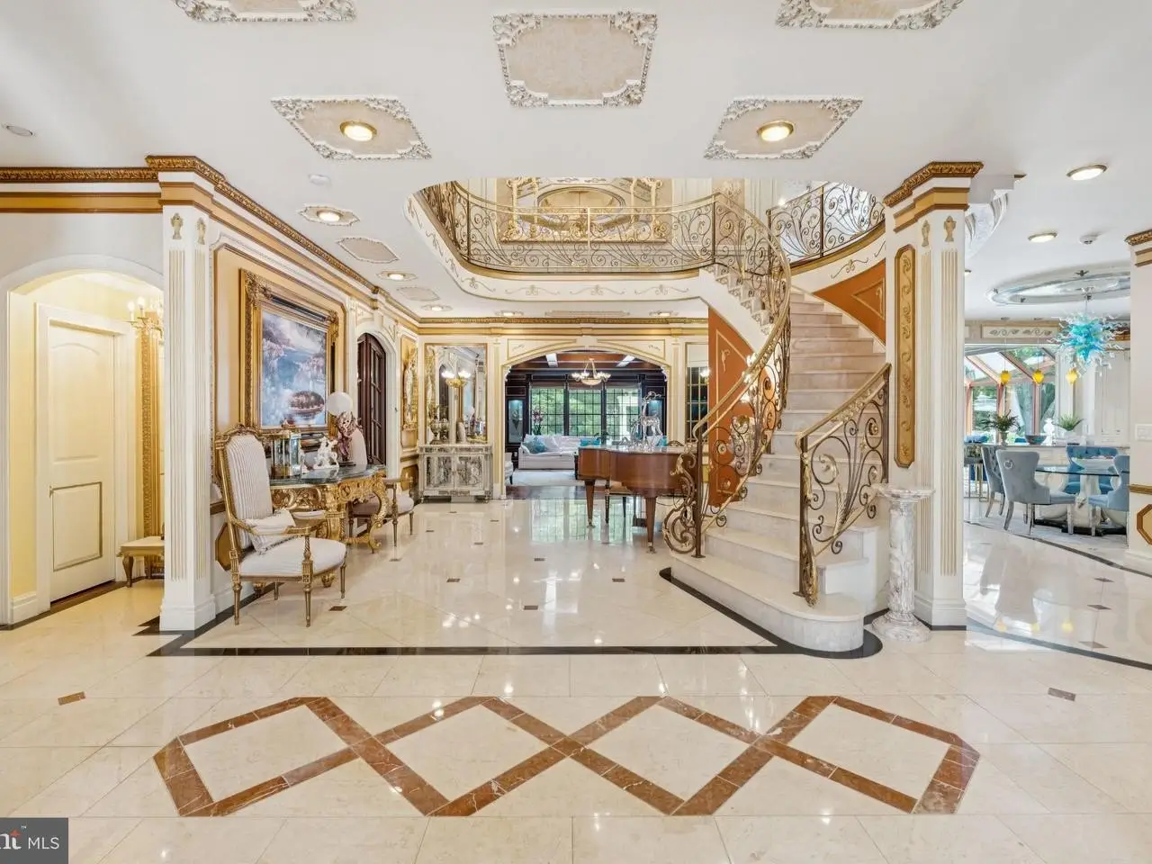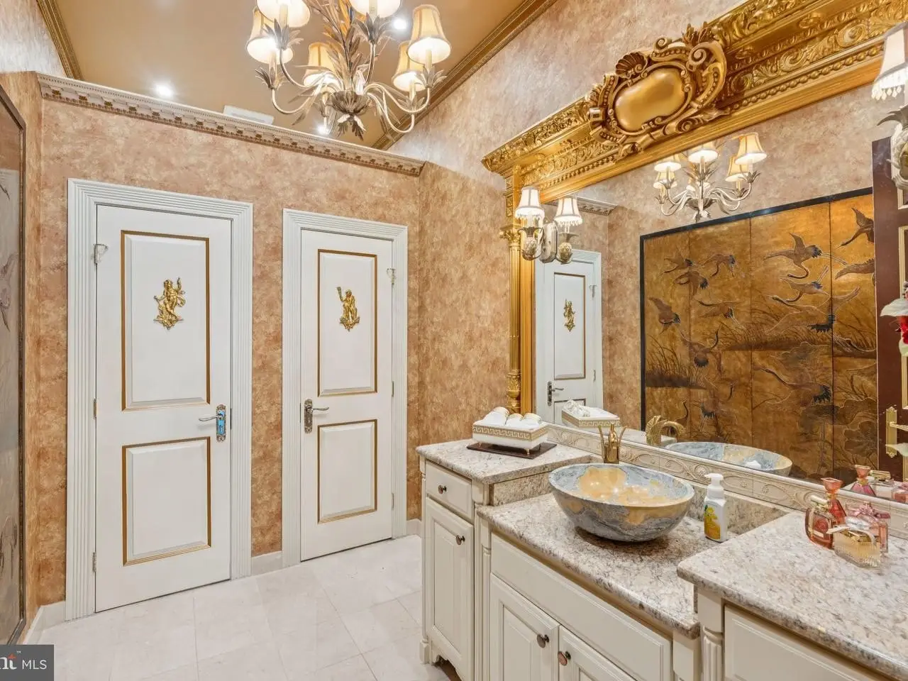 Exquisite artistry, quality craftsmanship and a touch of glamour combine in this spectacularly appointed 11,000+ sq. ft. manor, set on .89 lush acres. Sited near the Potomac River and moments from the quaint shops and fine dining of Great Falls village, this impressive estate showcases luxurious living at every turn. A grand marble foyer sets the tone, with lighted recesses, gold-gilded trim, and sweeping views of the home's richly designed interiors. The formal living and dining rooms feature antique mirrors, crystal chandeliers, intricate ceiling medallions, and decorative hardwood floors with inlaid wool carpeting. At the heart of the main level, a breathtaking reception area rises two stories, offering an ambiance of elegance and exceptional detail. The richly paneled library is clad in hardwood and features a fossil-stone granite wall with built-ins and fireplace. A coffered-ceiling drawing room includes 11 glass showcases-perfect for art or collectibles. Nearby, a bright music room with bamboo flooring and iron chandelier offers quiet refuge. The chef-caliber gourmet kitchen impresses with an 8x5 ft. ""Louise Blue""Â? granite island and premium appliances. A granite breakfast bar and informal dining area complete the kitchen. Adjacent, a vaulted solarium with bamboo ceiling and French doors opens to expansive decks and lawns, ideal for indoor-outdoor entertaining. Additional amenities on this level include a paneled elevator, pantry, butler's pantry with copper sink, mud room, and direct access to the 4-car garage. Upstairs, the opulent owner's suite is a private sanctuary that features a tray ceiling, Brazilian cherry flooring with a 100% wool inlay rug, and a cozy sitting area with silk carpet before a marble fireplace and media screen. A morning kitchen offers private refreshment. The walk-in gallery closet is a boutique experience, with Thomasville cabinetry, center Travertine island, cedar-lined wardrobes, and chandelier-lit tray ceiling. The spa-like primary bath stuns with a central soaking tub before an electric fireplace, dual vanities with 24k gold-gilded sinks, media-screen mirror, and a separate commode room with decorative vanity. Glass-enclosed steam and marble showers, stone seating, and mosaic tilework complete the indulgent space. Three additional bedroom suites each feature designer bathrooms and walk-in closets. A full laundry room with LG washer/dryer and whirlpool sink completes the upper level. The lower level embraces a sleek, club-like vibe. Descend via curved staircase with leopard-print carpet to a modern lounge featuring a golf simulator, lighted mosaic bar, billiards area, and expansive rec room-ideal for lively entertaining. A dramatic home theater, entered through a historic Hotel Washington door flanked by theater masks, includes a custom wool carpet medallion, three-tier leather seating, granite bar, and immersive surround sound. Also on this level: a 5th bedroom with spa bath, sauna and steam shower; a Tuscan-style wine cellar and tasting room with stone and granite walls; and a utility closet with stacked washer/dryer for guests or staff. Outdoor living is equally impressive. Walk out to a tiered granite terrace with a summer kitchen, built-in BBQ, and stone fireplace. A generous deck overlooks landscaped lawns and a newly built pool, plus a hot tub with recessed TV and radio-perfect for private relaxation or elegant entertaining.