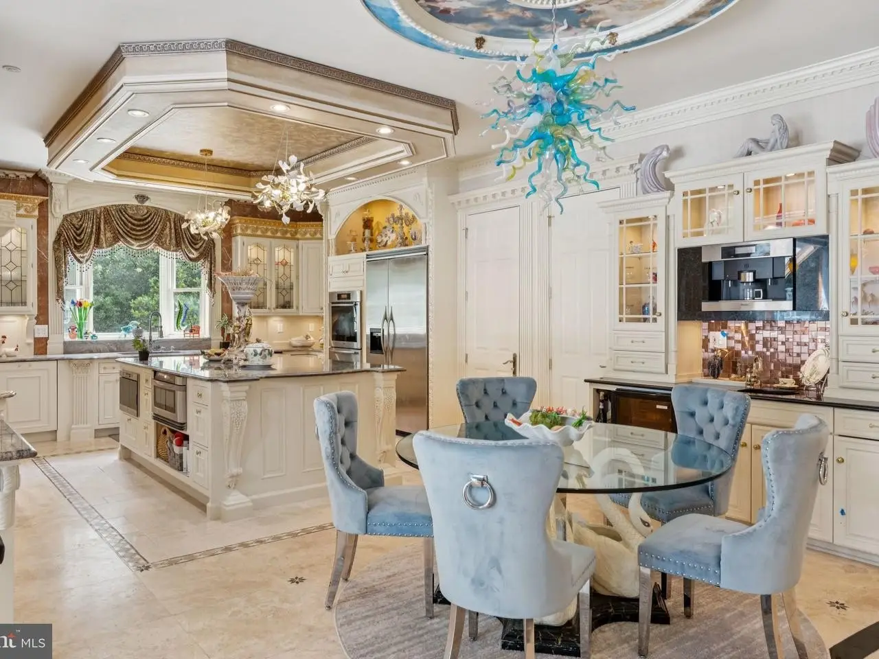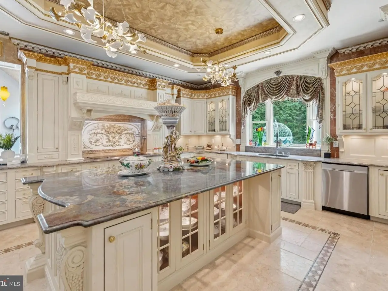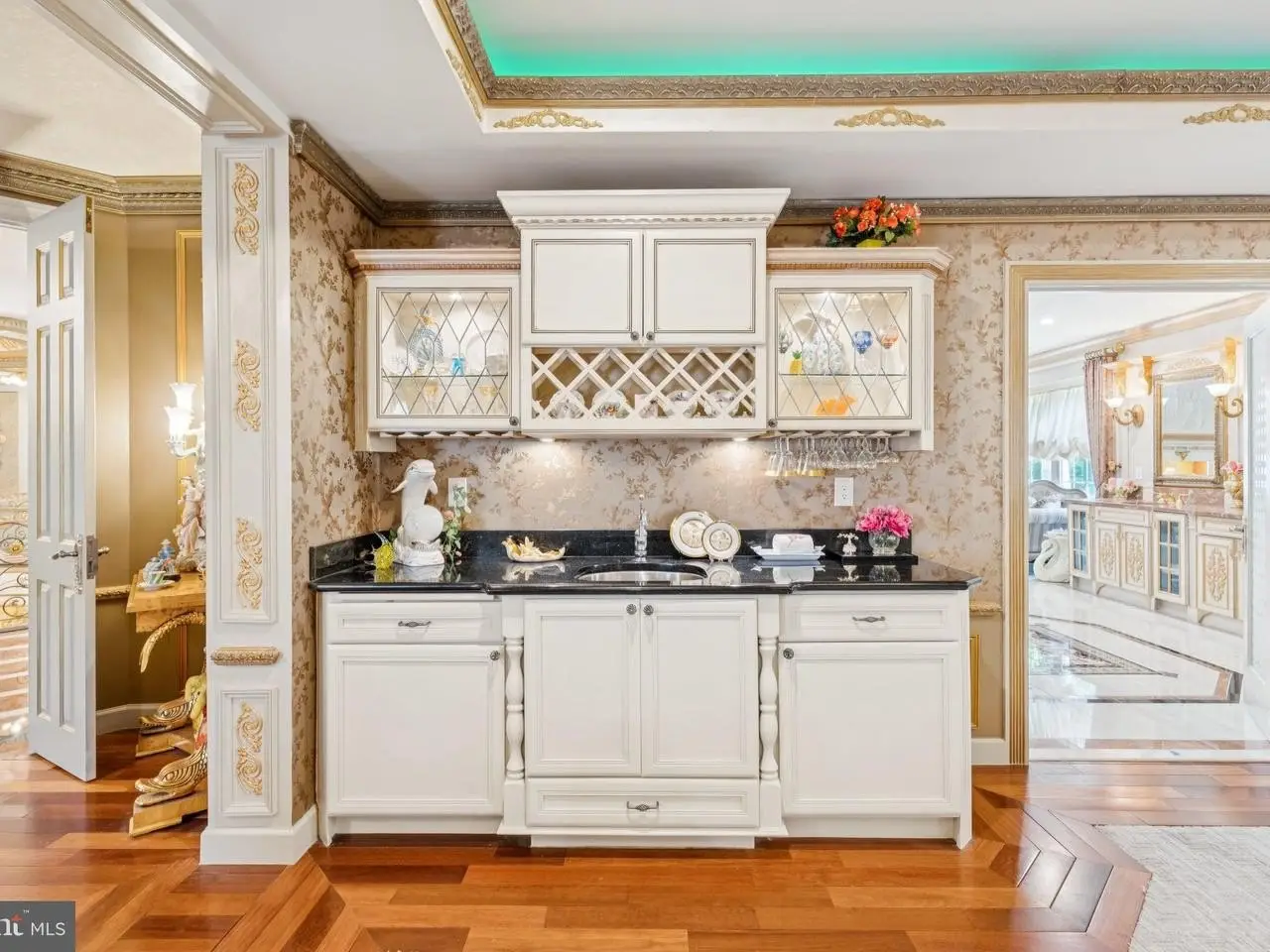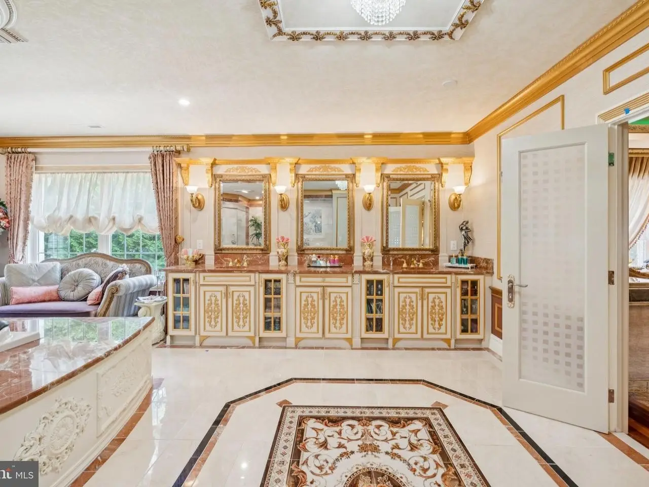 Exquisite artistry, quality craftsmanship and a touch of glamour combine in this spectacularly appointed 11,000+ sq. ft. manor, set on .89 lush acres. Sited near the Potomac River and moments from the quaint shops and fine dining of Great Falls village, this impressive estate showcases luxurious living at every turn. A grand marble foyer sets the tone, with lighted recesses, gold-gilded trim, and sweeping views of the home's richly designed interiors. The formal living and dining rooms feature antique mirrors, crystal chandeliers, intricate ceiling medallions, and decorative hardwood floors with inlaid wool carpeting. At the heart of the main level, a breathtaking reception area rises two stories, offering an ambiance of elegance and exceptional detail. The richly paneled library is clad in hardwood and features a fossil-stone granite wall with built-ins and fireplace. A coffered-ceiling drawing room includes 11 glass showcases-perfect for art or collectibles. Nearby, a bright music room with bamboo flooring and iron chandelier offers quiet refuge. The chef-caliber gourmet kitchen impresses with an 8x5 ft. ""Louise Blue""Â? granite island and premium appliances. A granite breakfast bar and informal dining area complete the kitchen. Adjacent, a vaulted solarium with bamboo ceiling and French doors opens to expansive decks and lawns, ideal for indoor-outdoor entertaining. Additional amenities on this level include a paneled elevator, pantry, butler's pantry with copper sink, mud room, and direct access to the 4-car garage. Upstairs, the opulent owner's suite is a private sanctuary that features a tray ceiling, Brazilian cherry flooring with a 100% wool inlay rug, and a cozy sitting area with silk carpet before a marble fireplace and media screen. A morning kitchen offers private refreshment. The walk-in gallery closet is a boutique experience, with Thomasville cabinetry, center Travertine island, cedar-lined wardrobes, and chandelier-lit tray ceiling. The spa-like primary bath stuns with a central soaking tub before an electric fireplace, dual vanities with 24k gold-gilded sinks, media-screen mirror, and a separate commode room with decorative vanity. Glass-enclosed steam and marble showers, stone seating, and mosaic tilework complete the indulgent space. Three additional bedroom suites each feature designer bathrooms and walk-in closets. A full laundry room with LG washer/dryer and whirlpool sink completes the upper level. The lower level embraces a sleek, club-like vibe. Descend via curved staircase with leopard-print carpet to a modern lounge featuring a golf simulator, lighted mosaic bar, billiards area, and expansive rec room-ideal for lively entertaining. A dramatic home theater, entered through a historic Hotel Washington door flanked by theater masks, includes a custom wool carpet medallion, three-tier leather seating, granite bar, and immersive surround sound. Also on this level: a 5th bedroom with spa bath, sauna and steam shower; a Tuscan-style wine cellar and tasting room with stone and granite walls; and a utility closet with stacked washer/dryer for guests or staff. Outdoor living is equally impressive. Walk out to a tiered granite terrace with a summer kitchen, built-in BBQ, and stone fireplace. A generous deck overlooks landscaped lawns and a newly built pool, plus a hot tub with recessed TV and radio-perfect for private relaxation or elegant entertaining.