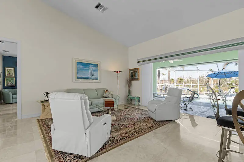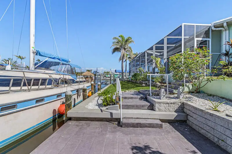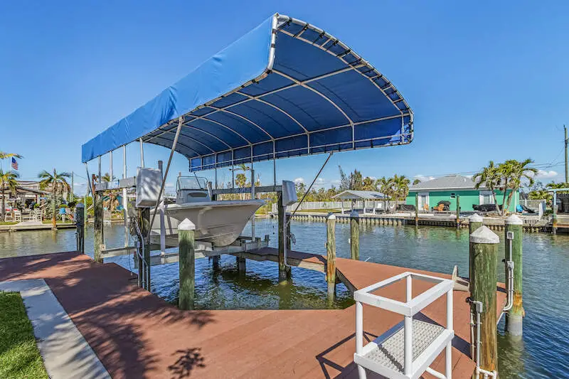 This custom-built waterfront Gulf access home is in the heart of St. James City on tranquil Pine Island. This community boasts some of the best fishing in all of SW Florida. The home is located minutes away from Boca Grande Pass, the "Tarpon Fishing Capital of the World"! This is a nature lover's paradise from the Florida native plants in the yard, to the Eagles and Ospreys flying overheard, the dolphins and manatees swimming in the canal in the backyard, to the Great Calusa Blueway, a 190-mile canoe/kayak trail around the coastal and inland waterways of Lee County, not to mention the many hiking trails on Pine Island. The sunrises and sunsets are a photographer's dream. Boaters will enjoy being mere minutes from the Intracoastal Waterway (ICW) and the Gulf of Mexico, not to mention Ft. Myers Beach, Sanibel, Captiva, and all the secluded islands off of the Lee County coast. The new owners will appreciate the covered 10K # boat lift with wrap-around composite decking, along with the 5K# boat lift, and over 160' of reinforced seawall, which can accommodate all your toys, including in water dockage space for boats up to 50'. The luxurious interior features cathedral ceilings in the main living area, travertine flooring, gourmet chef's kitchen, with solid wood cabinets, stainless appliances, and more. The owners will certainly enjoy the oversized master bedroom with sliders leading to the screened lanai/pool, and then relaxing and unwinding in the jetted soaking tub. There are his/hers walk-in closets. The guest quarters are on the opposite side of the home and include a separate entry. Whether you need a "Mother-in-law suite" or have guests who need privacy, this home has it all. The in-ground heated oversized saltwater pool/spa includes a newer heater, for your lounging pleasure. Some of the upgrades include: whole-house water filtration and generator (10K KW), Kevlar electric storm shutters, and solar panels connected to Lee County Electric for lower power bills, and more. St. James City is a golf cart friendly community, and great for walking the dogs, biking, and more. There are several restaurants with live music and a community center with a park for adults and children! Pine Island offers many houses of worship, two grocery stores, and a top rated elementary school. Make your appointment now!