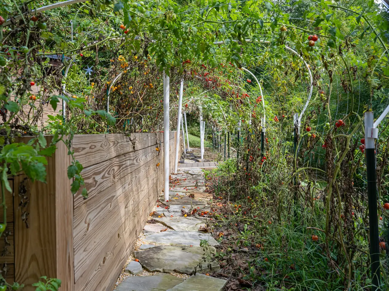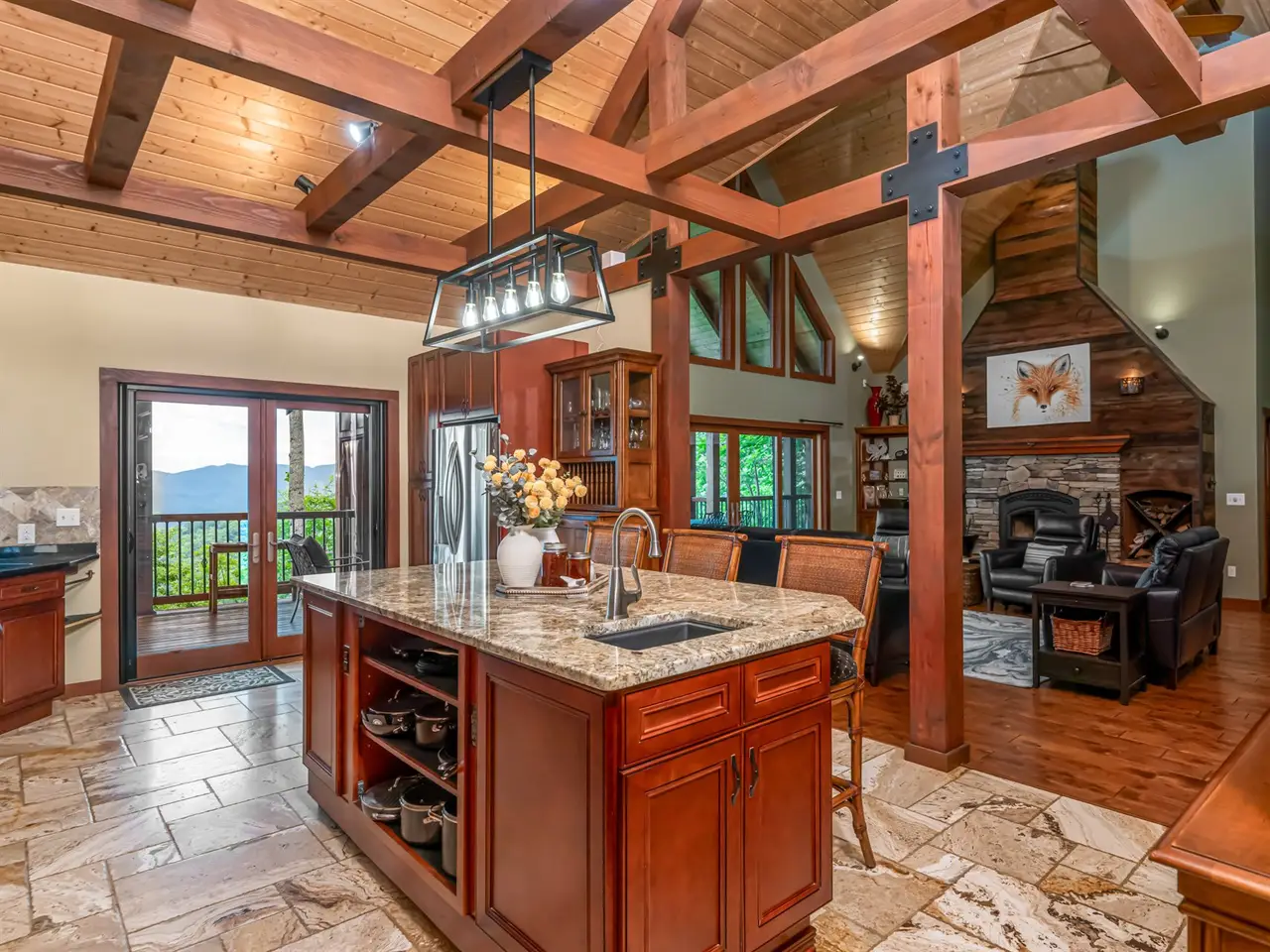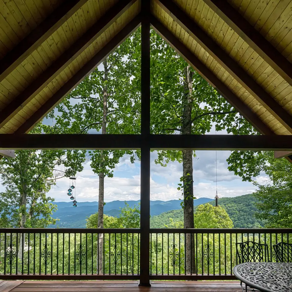 Year round views are stunning from this elevation of over 3500 feet. Main house has upper and lower primary en suites, a lower level entertainment room, additional bedroom/office with views and over 1500 feet of covered decks. The detached garage apartment and additional 2.24 buildable lot with views, makes this property impressive for large family or 3 rental income potentials. The outdoor enthusiast will enjoy the tiered garden area, small orchard, bees, fruit trees, and cutting your own wood for the stone fireplace in great room. Located inside the small, gated community of: The Bluffs at Curtis Creek and within a few miles to dining, shopping, new State Park, Blue Ridge Parkway and Asheville you can enjoy privacy with convenience.