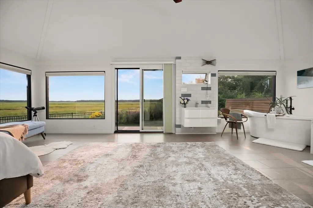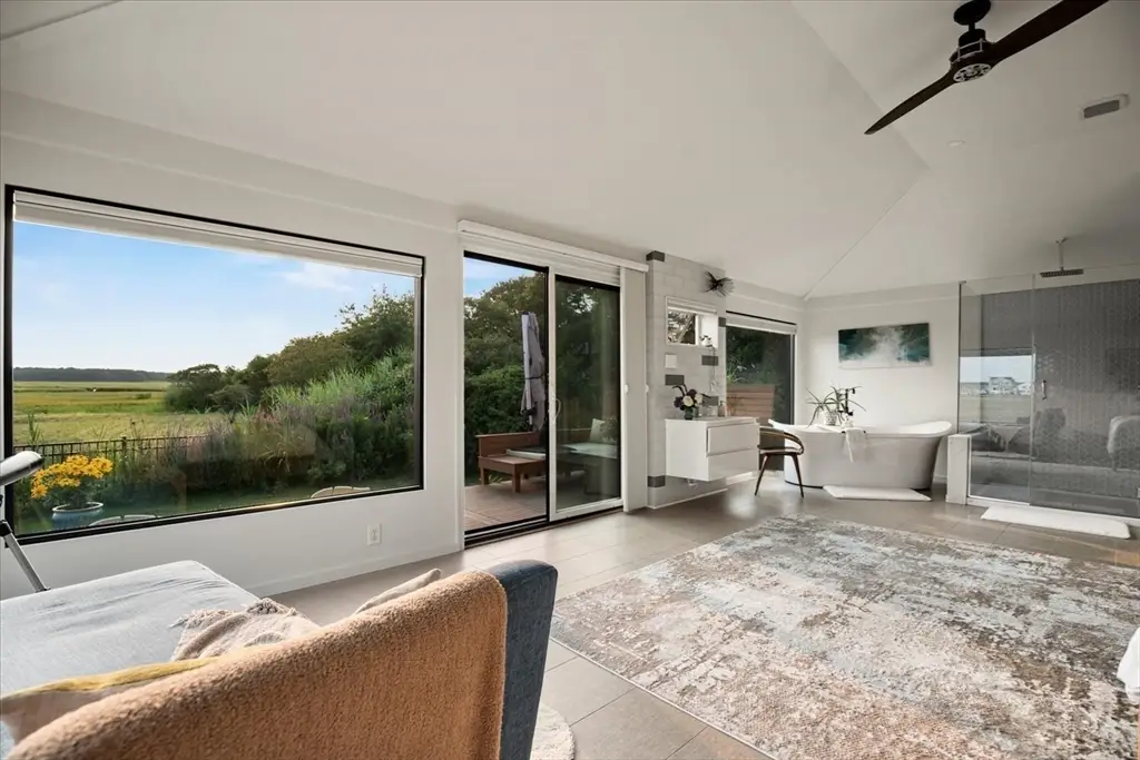 Discover this stunning mid-century gem set back from the road, offering rare privacy, dramatic marsh views, and direct river frontage on 2.89 acres. Located across from the coveted Beach Access #8 on SalisburyÆs North Beach, this home offers potential for a second-story addition with ocean views. Enjoy a chef-inspired kitchen with custom cabinetry and high-end appliances, a luxurious master suite, expansive mahogany deck, and artisan stone patioùperfect for sunsets and wildlife watching. Floor-to-ceiling windows and two gas fireplaces make the 4-season living rooms cozy year-round. Property includes a private nature trail, riverfront deck, mahogany outdoor shower, gazebo, heated 2-car garage, guest house/art studio with sleeping loft, and a utility shed. Launch your kayak, fish, or enjoy yoga from your backyard. A rare coastal retreat blending nature, privacy, and beachside living. BELOW MARKET SELLER FINANCING AVAILABLE.