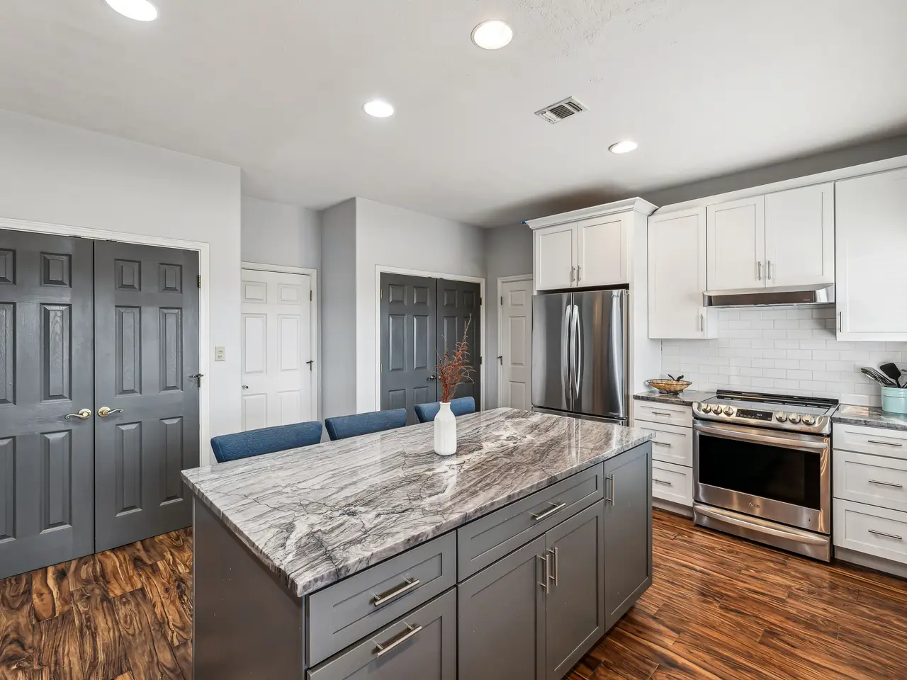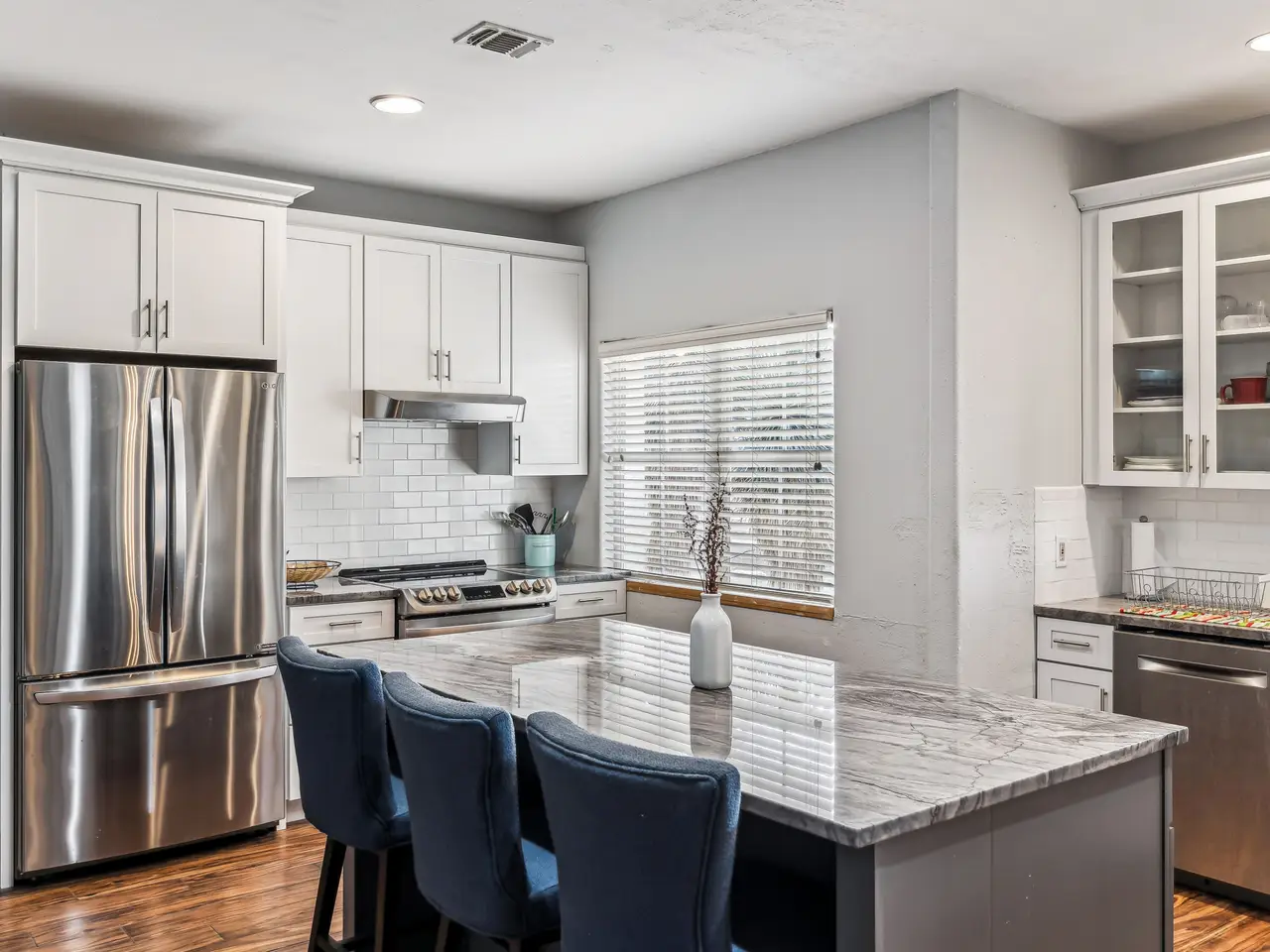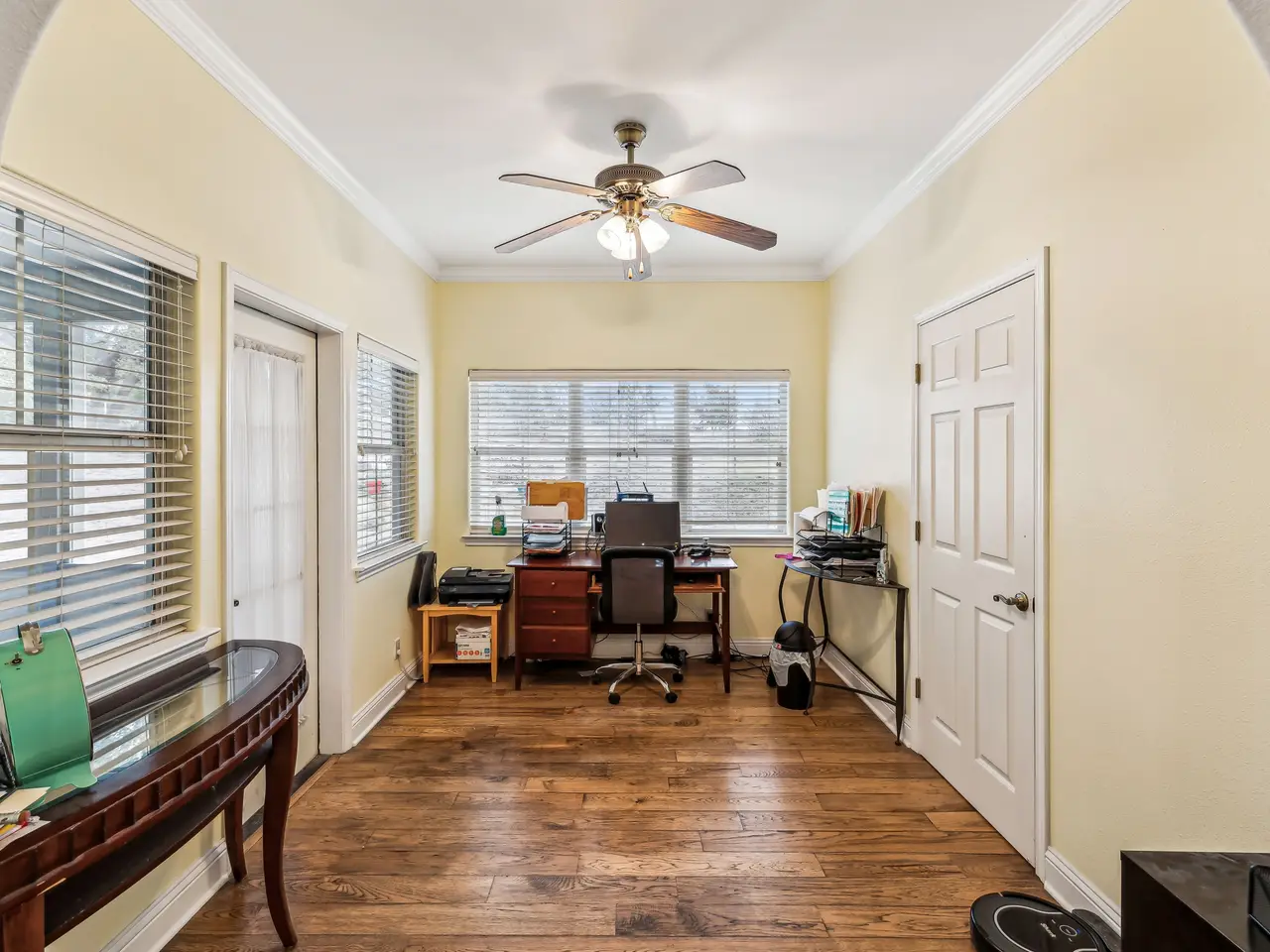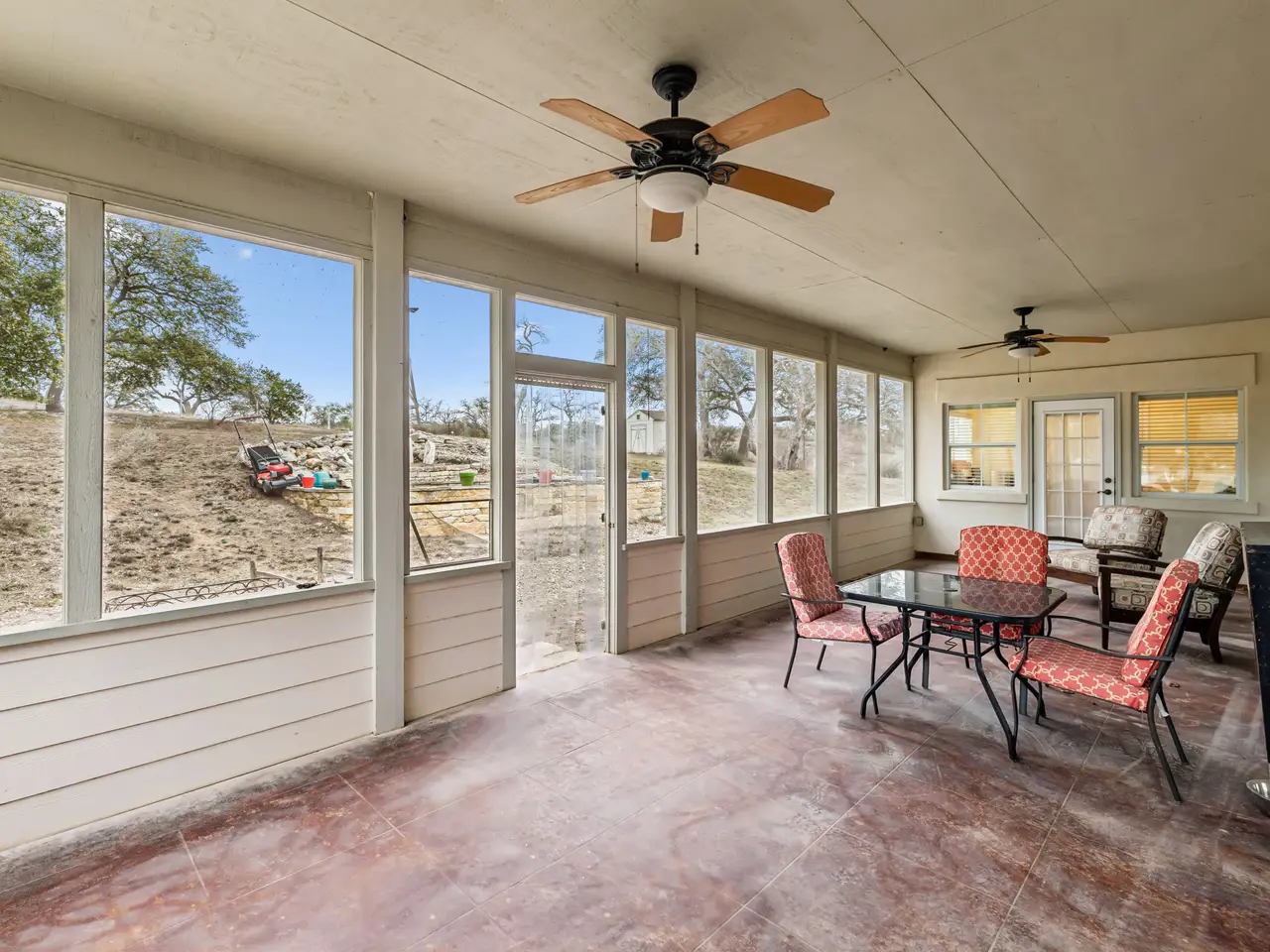 Nestled on 39 acres of gently rolling Hill Country terrain, this exceptional 4-bedroom, 2-bathroom home offers both comfort and functionality. The thoughtfully designed split floor plan includes a dedicated office, formal dining room, and a spacious living area with soaring ceilings and a cozy fireplace. The heart of the home is a chef's dream kitchen featuring stunning quartzite countertops, a large island, and two oversized pantries for ample storage. A mudroom off the two-car garage adds convenience. Retreat to the primary suite, where two oversized walk-in closets provide plenty of space. Step outside to enjoy the expansive screened-in porch - perfect for soaking in the peaceful surroundings. The property is fully fenced and cross-fenced, complete with a barn, two wells, and a spring-fed pond with a beautiful water feature. Ideal for those seeking privacy, space, and the beauty of the Hill Country, this property is a rare find!