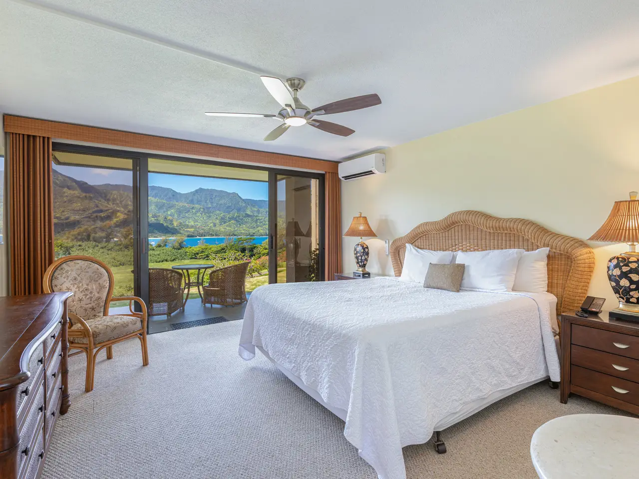 Hanalei Bay Resort #4104/5/6 is located off of the beaten path in one of the best locations on the north shore featuring the island’s most breathtaking views of Hanalei Bay surrounded by awe-inspiring Hanalei mountains and waterfalls. Morning and afternoon rainbows are a common treat! This coveted 3 bedroom ground floor unit has no stairs and no railings to interrupt the amazing views. Walk right out to the manicured lawn and enjoy the surrounding lush tropical landscaping. #4104/5/6 offers maximum flexibility in use. Utilize all three bedrooms or lock off into three private spaces, each with its own entrance and separate ocean view lanai! This piece of paradise offers beautiful low maintenance tile flooring in main living areas, carpeted bedrooms, slab granite counter tops throughout, upgraded baths with custom walk-in showers and 4 unit split system air-conditioning. All of these features plus the great location contribute to its success as a highly rated vacation rental, #4104/5/6 is offered mostly furnished. Maintenance fees include ALL utilities! This sprawling resort offers 2 on-site restaurants, 2 swimming pools, tropical spa, and 6 tennis/pickleball courts with a pro shop and fitness center. In addition, there is a 24-hour front desk for guest check in. The onsite concierge and golf cart service transport you and your belongings to and from your room or to anywhere on the property. Hanalei Bay Resort has over 22 acres of tropical landscaped grounds/gardens with cascading waterfall and Koi pond features. A paved path to an idyllic beach by the 5 Star 1Hotel is an added bonus. You will never want to leave once you arrive at this amazing resort!