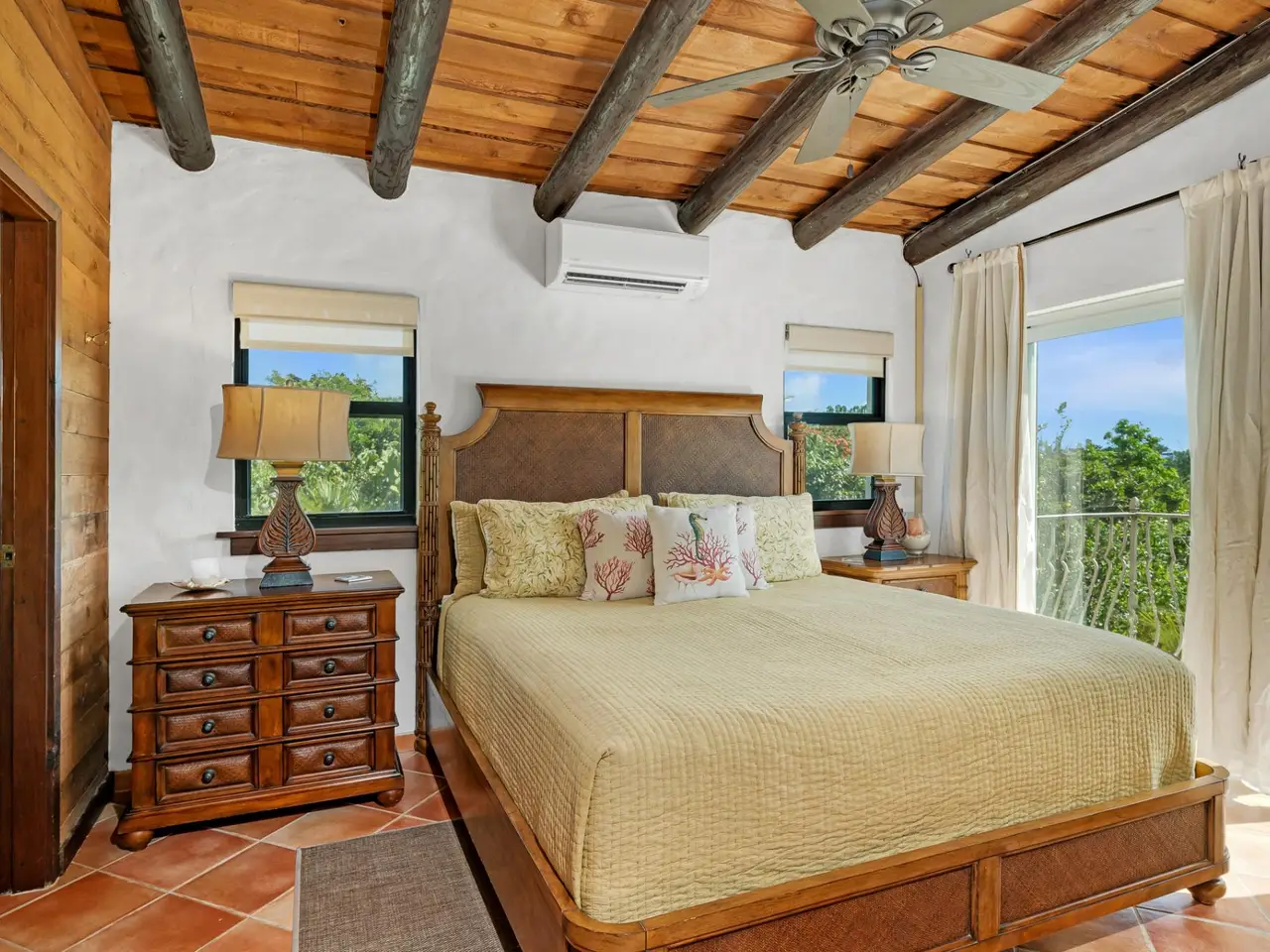 Villa Jasmine is an enchanting 4-bedroom home nestled on an elevated hillside in Taylor Bay, just steps from Taylor Bay Beach and the community's private-access tennis courts. Situated on 0.86 acres, this villa is perfectly positioned to enjoy cool trade winds year-round. The spacious pool deck and private rooftop terrace provide breathtaking views, making it the ideal spot to savor TCI sunsets. The main floor is designed around the villa's large pool and expansive decks, which feature ample seating and an outdoor dining area. Upon entering from the pool deck, you are welcomed into a spacious dining area that comfortably seats eight adults. Adjacent to the dining space is a fully equipped kitchen, complete with a propane range and stainless-steel appliances. The Master Suite occupies the entire left wing of the villa, offering a king bed, two large closets, a water closet, dual sinks, and a luxurious walk-in shower. On the right side of the kitchen and common area, you’ll find Guest Bedrooms 1 and 2. Each guest room features an en-suite bathroom, a king bed, and large sliding doors that fill the space with natural light. The 4th bedroom is a self-contained suite located on the villa's lower level. This private retreat includes a king bed, an en-suite bathroom, and its own entrance for ultimate privacy. Contact Claudius@GraceBayRealty.com to schedule a tour of Villa Jasmine.