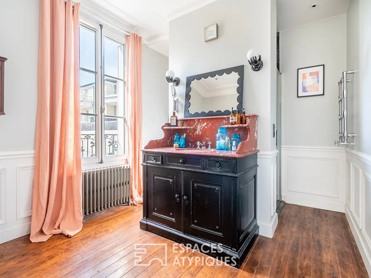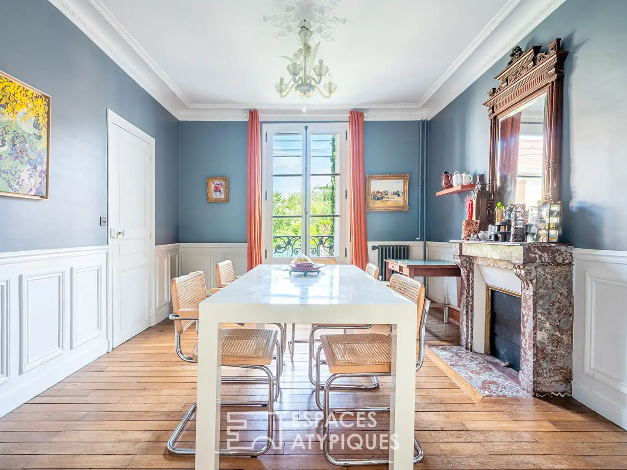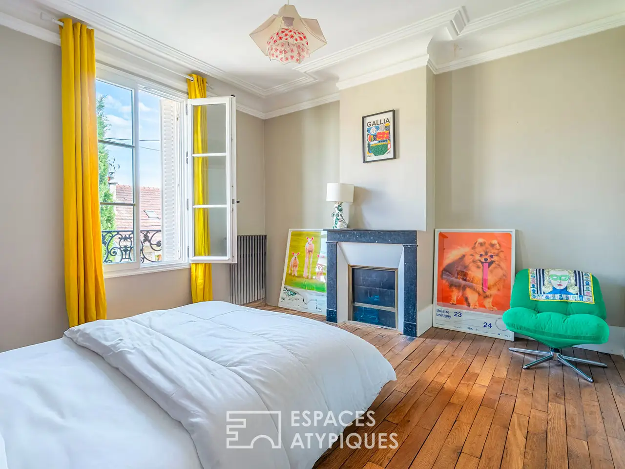In the heart of the Église district of Neuilly-Plaisance, Villa Bon Accueil, a listed mansion dating from 1884, spans 152 m2 over four levels, combining period elegance with contemporary features.From the entrance, the charm of the period cement tiles sets the tone and harmonizes with the light and warm spaces of the ground floor. A cozy living room, a light-filled office, and a dining room adjoining a fitted kitchen make up this living space. A separate toilet completes the ensemble.Upstairs, two large bedrooms offer generous volumes, one of which has an adjoining office, ideal for working from home. A bathroom with a toilet and a separate dressing room ensure everyday comfort and functionality.The top floor houses a private master suite with a separate shower room and toilet. Under the eaves, this bright refuge retains a soft and pleasant atmosphere.The fully renovated basement houses a spacious workshop with direct access to the garden. This independent space, equipped with a laundry room, can easily be converted into a self-contained studio as needed.The garden, sheltered from view, pleasantly extends the living spaces and enhances the peaceful atmosphere of the house.The entire property has benefited from a careful renovation: insulation using bio-sourced materials, custom-made window frames, high-end faucets?every detail has been carefully considered with respect for the location and its history.A listed character house, combining authenticity, high-quality features, and quality of life, close to shops and public transport via the Voie Lamarque.RER A: Neuilly Plaisance, 750 meters awayCity center: 450 meters awayREF. 11207Additional information* 6 rooms* 4 bedrooms* 2 bathrooms* 2 floors in the building* Outdoor space : 352 SQM* Property tax : 3 500 €Energy Performance CertificatePrimary energy consumptione : 291 kWh/m2.yearHigh performance housing*A*B*C*D*291kWh/m2.year64*kg CO2/m2.yearE*F*GExtremely poor housing performance* Of which greenhouse gas emissionse : 64 kg CO2/m2.yearLow CO2 emissions*A*B*C*D*64kg CO2/m2.yearE*F*GVery high CO2 emissionsEstimated average annual energy costs for standard use, indexed to specific years 2021, 2022, 2023 : between 3800 € and 5180 € Subscription IncludedAgency feesThe fees include VAT and are payable by the vendorMediatorMediation Franchise-Consommateurswww.mediation-franchise.com29 Boulevard de Courcelles 75008 ParisInformation on the risks to which this property is exposed is available on the Geohazards website : www.georisques.gouv.fr