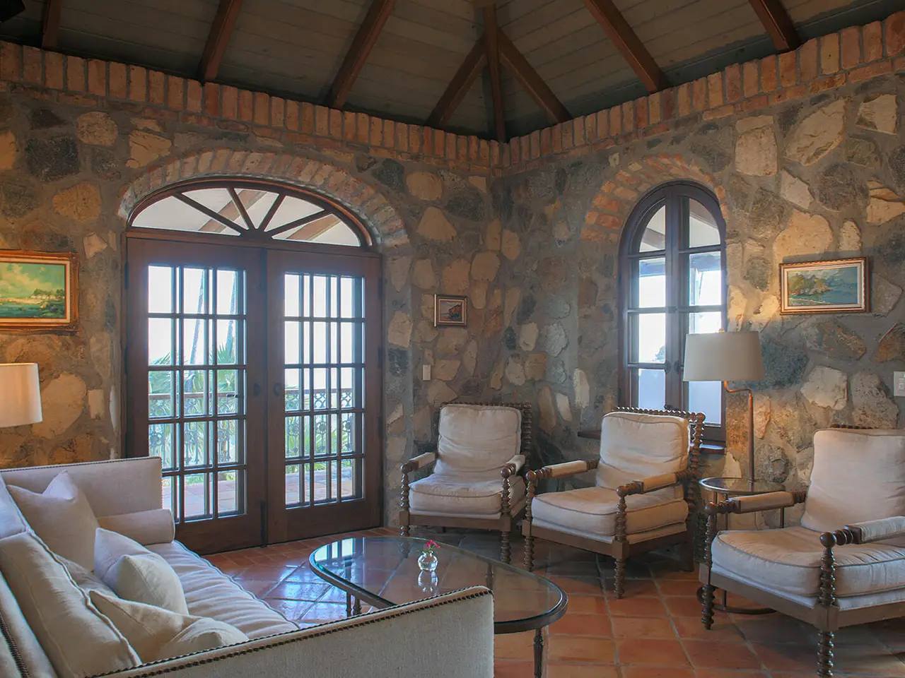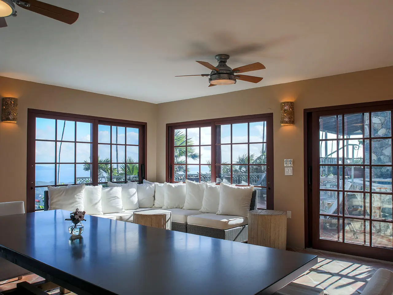 This spectacular home overlooks the BVI and beyond from it's perch on Bordeaux Mountain. The cool trade winds offer a welcome escape from the warm Caribbean days. Ensconced by lush foliage and wrap around decks, this home features a chefs kitchen, 6 bedrooms, 5 bathrooms, a beautiful pool and large spa as well as gorgeous native stone work and exceptional mahogany details. Fully renovated and updated this compound features two separate structures, ample parking and is only 7 minutes from Maho Bay and the North Shore Beaches. With an impressive rental history, this home is perfect for as an investment property or alternatively as a functional and warm family home.