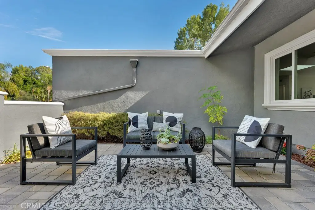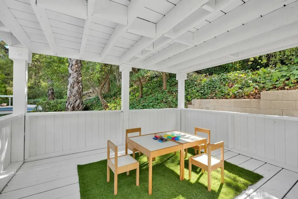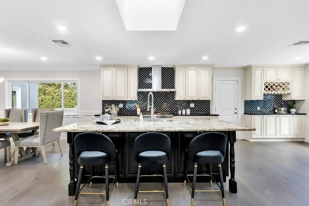 Welcome to your private sanctuary tucked away on a peaceful cul-de-sac in the highly sought-after hills of Tarzana. This luxuriously renovated single-story home offers 5 bedrooms, 4 bathrooms, and 3,386 sq ft of refined living space on a sprawling 21,529 sq ft lot designed for both relaxation and entertaining. Step inside to experience the seamless flow of this modern open-concept layout, filled with natural light and sophisticated finishes. The heart of the home is the designer kitchen, featuring custom cabinetry, a striking black arabesque tile backsplash, professional-grade stainless steel appliances, and an oversized granite island perfect for gatherings. The kitchen opens to expansive living and dining areas anchored by a floor-to-ceiling double-sided stone fireplace, creating an inviting ambiance for both casual and formal entertaining. Retreat to the spacious primary suite, complete with a walk-in closet, spa-inspired ensuite, and a private bonus room ideal for a home office, gym, or nursery. Each bedroom is thoughtfully positioned for privacy and comfort, including a guest suite with its own bath. Outside, experience your very own resort-style paradise. The sparkling pool with a Baja shelf invites you to unwind under the California sun, while the covered patio and string-lit pergola offer the perfect setting for al fresco dinners and weekend gatherings. A large grassy lawn provides space for kids or pets to play, complete with a charming 2-story treehouse and slide, while a hillside viewing deck delivers breathtaking sunset views over Tarzana’s rolling landscape. Blending luxury, comfort, and tranquility, this home perfectly captures the essence of Southern California living — a rare find in one of Tarzana’s most desirable neighborhoods. Close to premier shopping, dining, and top-rated schools, this property truly has it all.